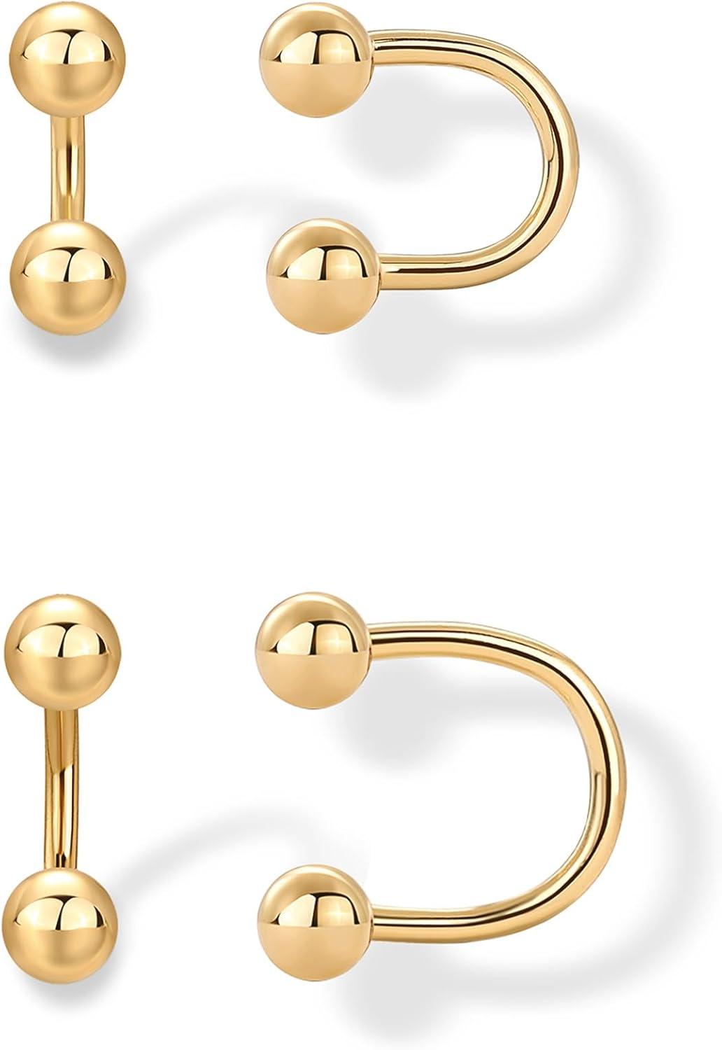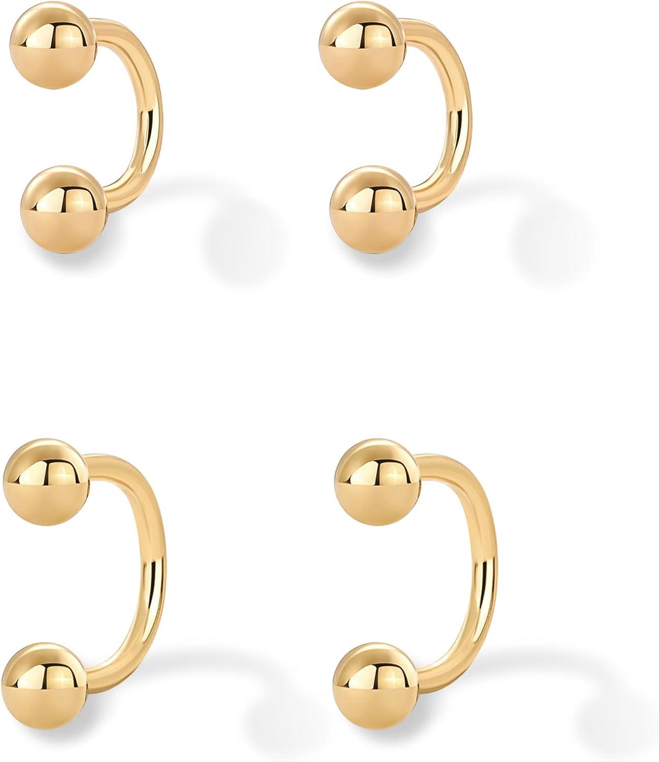PAVOI 14K Gold Plated 925 Sterling Silver Posts Double Half Huggie Earring Jacket Pack for Women – Gold Statement Loop Hoop Earring Set – Heart Ball Cubic Zirconia Screwback Studs(Ball)