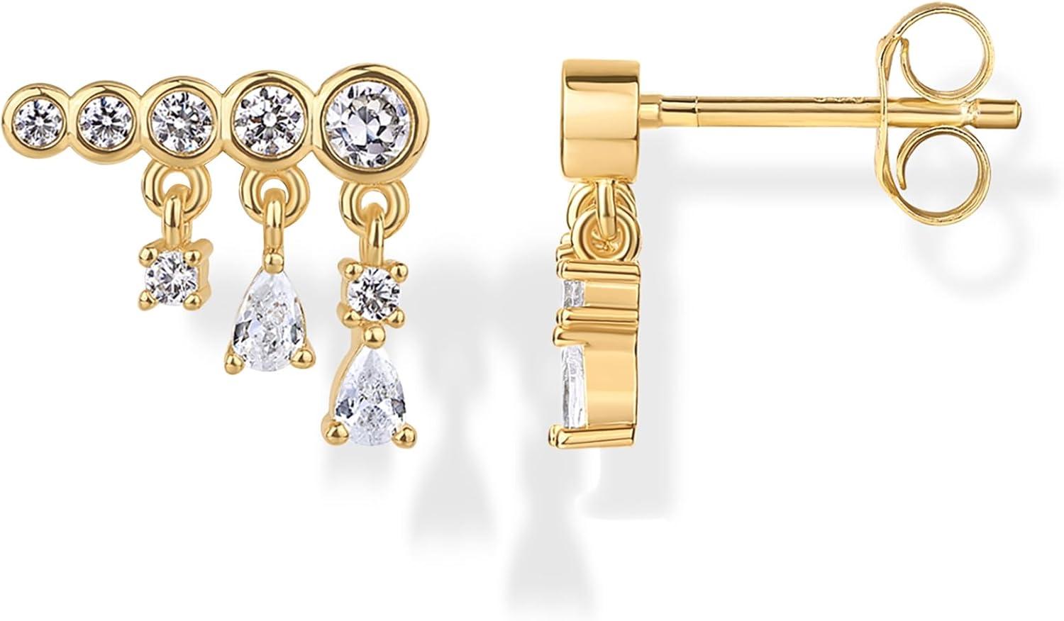 PAVOI 14K Gold Plated 925 Sterling Silver Posts Drop Dangle Cubic Zirconia Stud Earrings for Women | Gold Statement Gradient Crawler Studs Earring(Bezel)