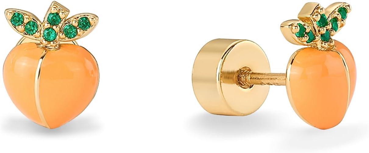 PAVOI 14K Gold Plated 925 Sterling Silver Posts Enamel Flatback Stud Earrings for Women – Colored Chili Pepper Strawberry Peach Cherry Emoji Screwback Earrings – Dainty Helix Cartilage Piercing Jewelry(Peach)