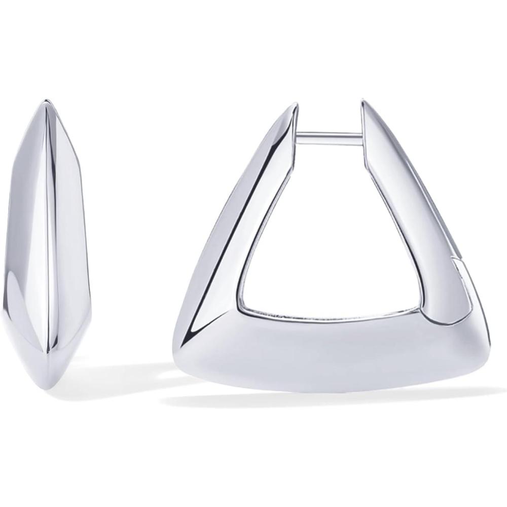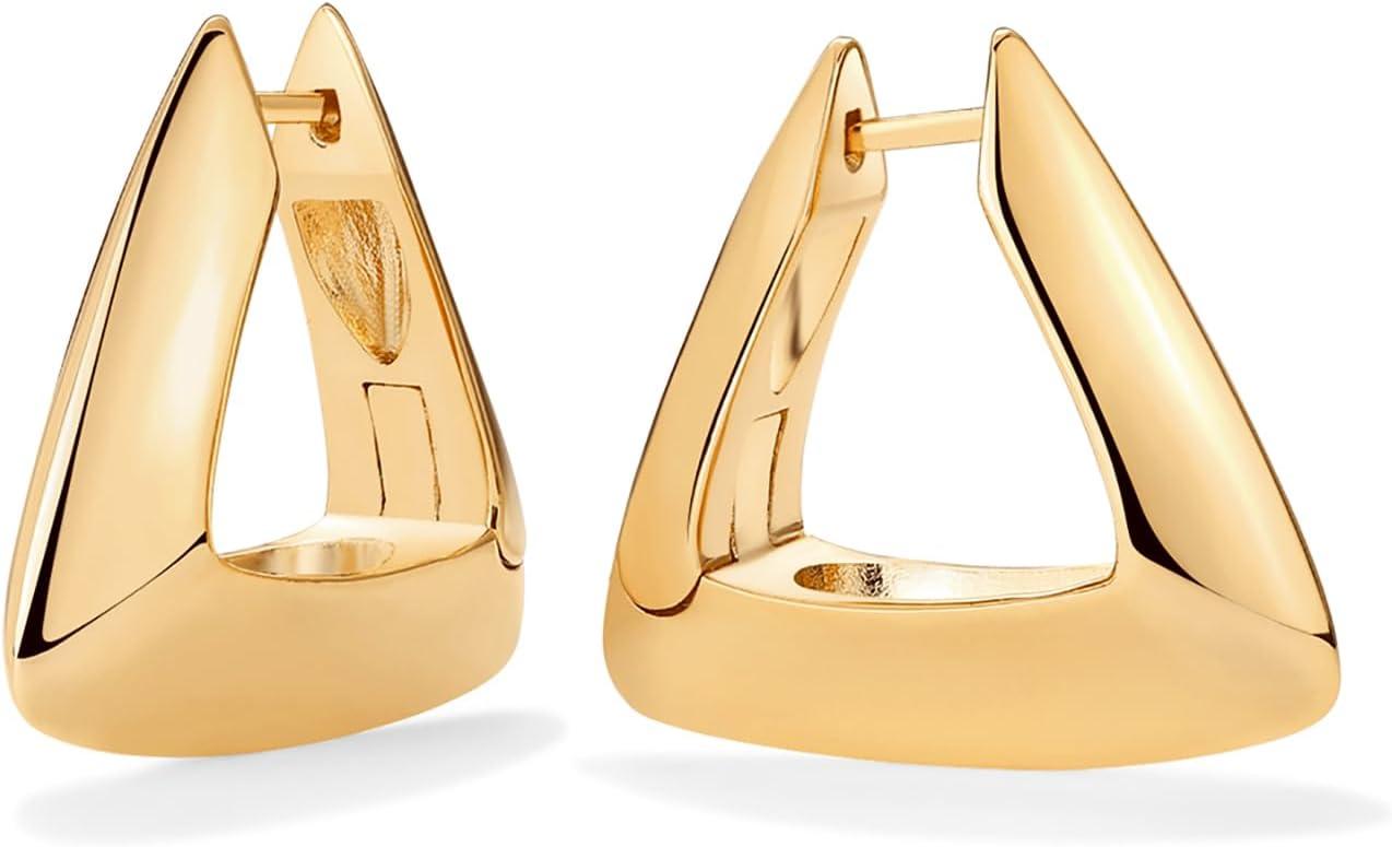 PAVOI 14K Gold Plated 925 Sterling Silver Posts Geometric Hoop Earrings for Women | Trendy Geo Long Oval U-Shaped Link Triangle Huggie Hoops Earring(Triangle)
