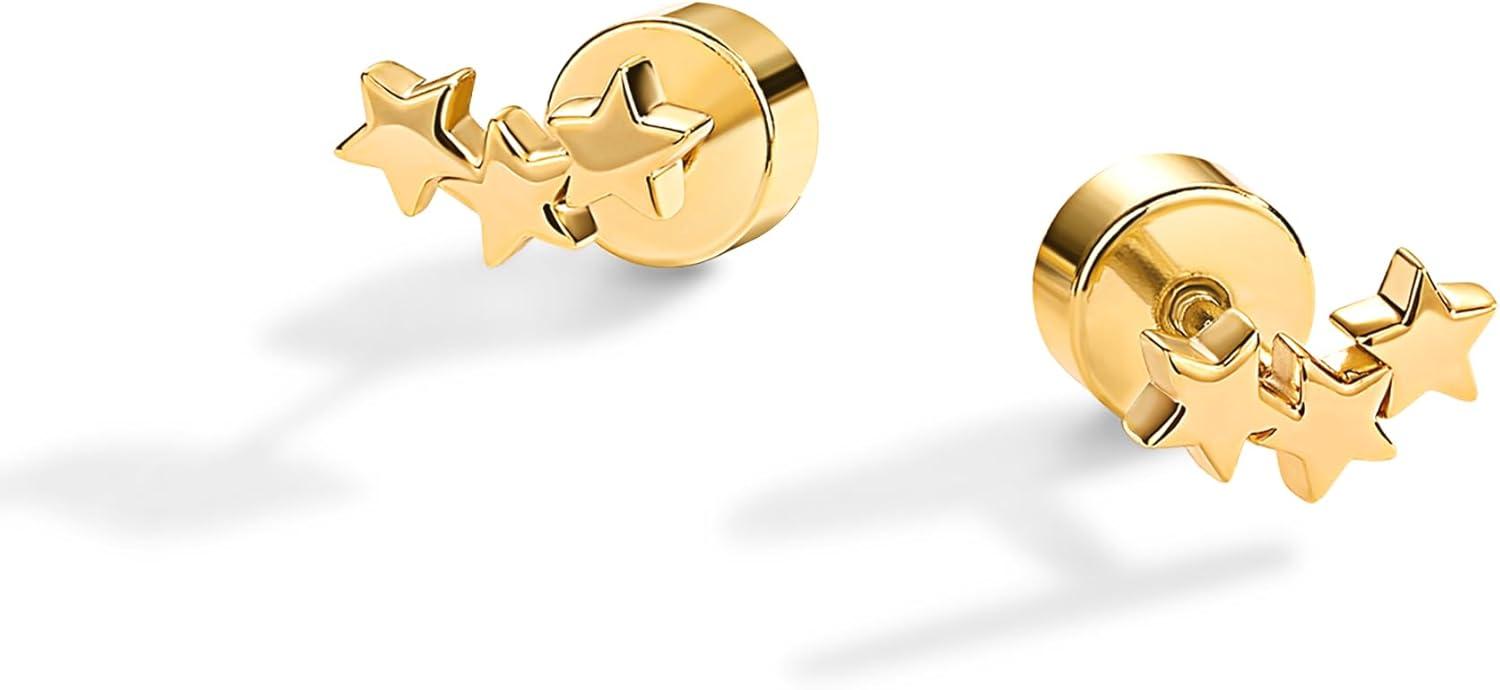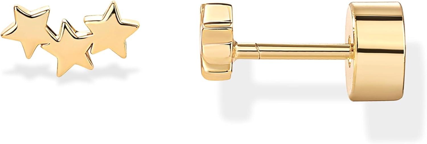 PAVOI 14K Gold Plated 925 Sterling Silver Posts Mini Stud Flat Back Earrings for Women | Helix Cartilage Piercing Jewelry | Dainty Pearl Star Cluster Cubic Zirconia Lotus Climber Screw Backs(Star Cluster)