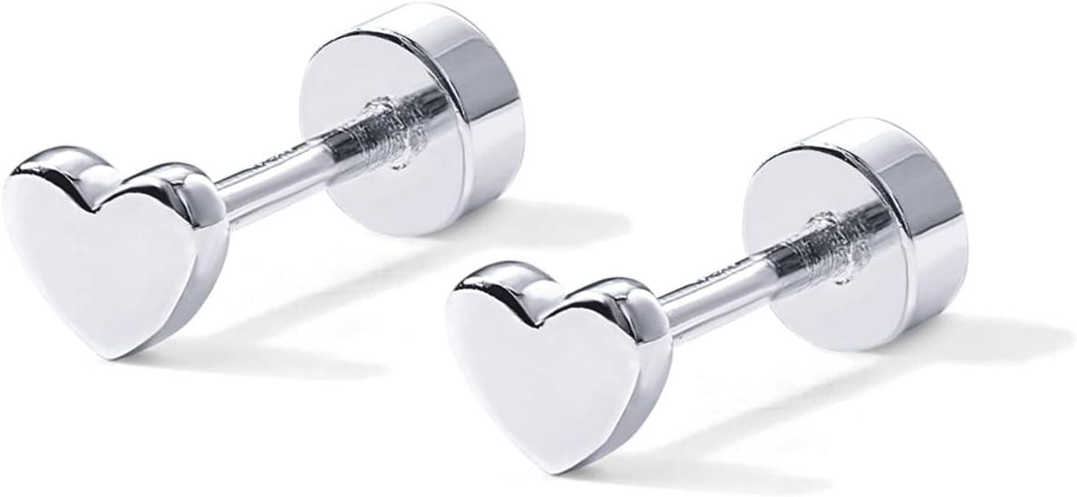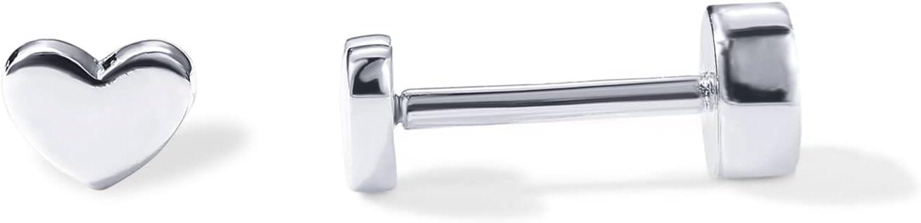 PAVOI 14K Gold Plated 925 Sterling Silver Posts Pair of Flat Back Stud Earrings for Women | Cartilage Helix Piercing | Heart Moon Snake Smiley Butterfly Yin and Yang North Star Earring(Heart)