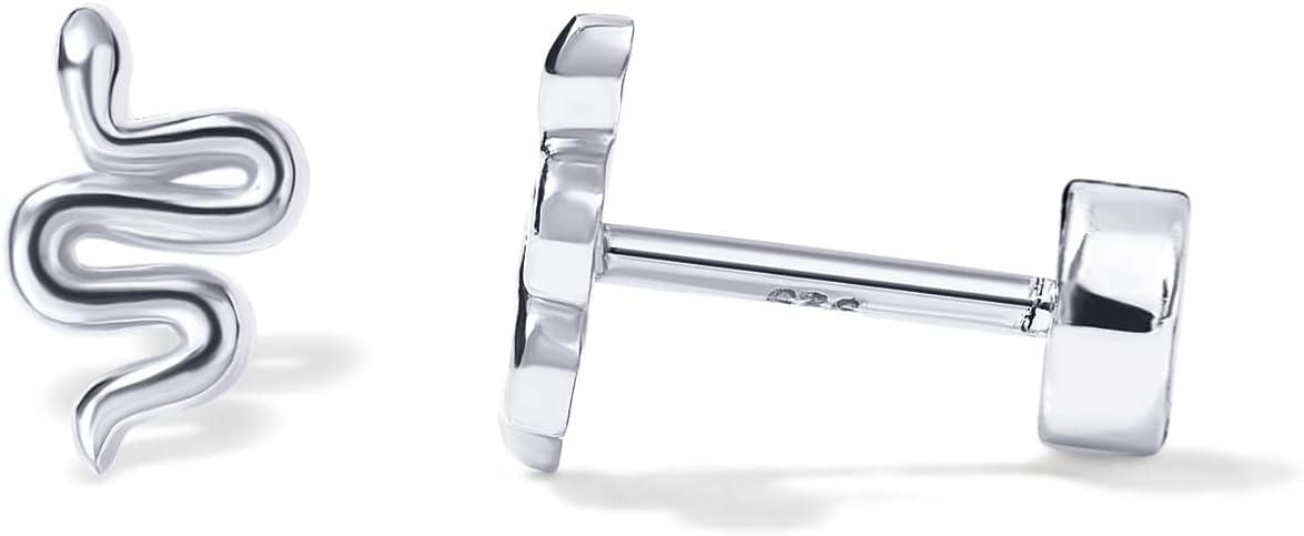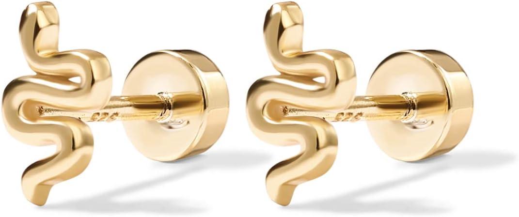 PAVOI 14K Gold Plated 925 Sterling Silver Posts Pair of Flat Back Stud Earrings for Women | Cartilage Helix Piercing | Heart Moon Snake Smiley Butterfly Yin and Yang North Star Earring(Snake)