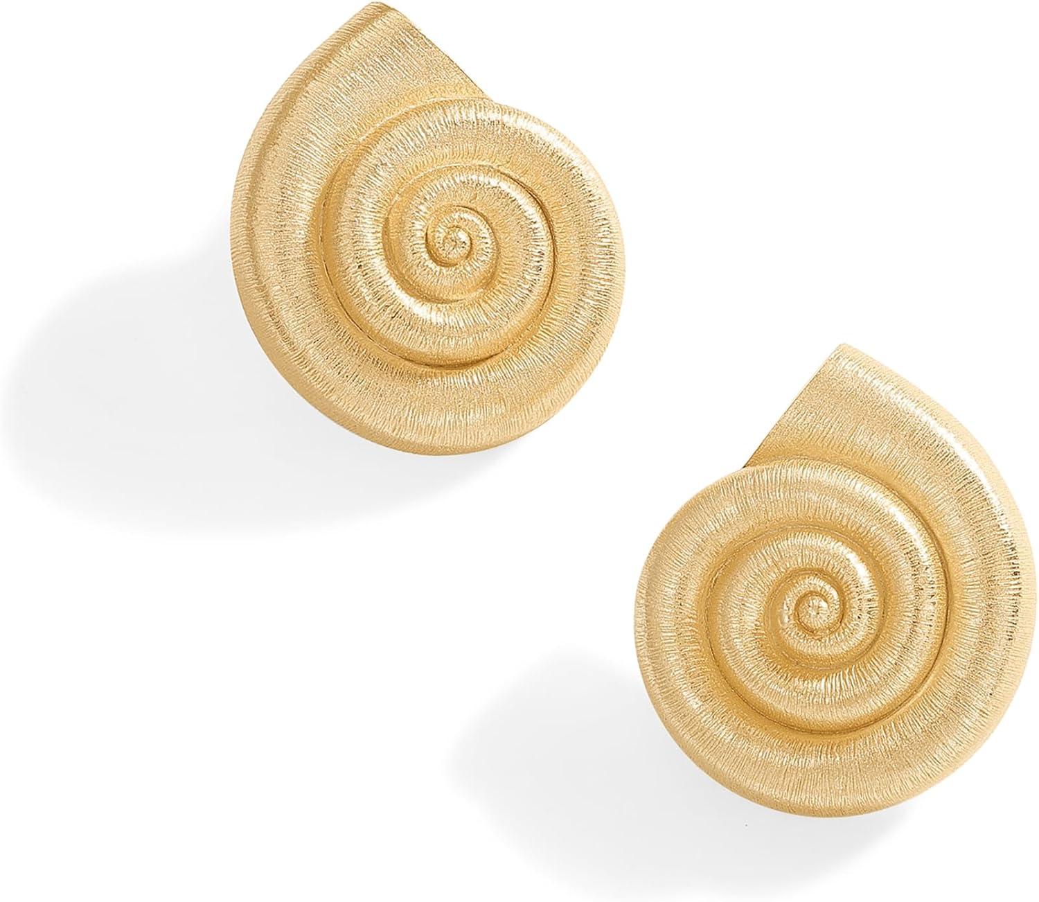 PAVOI 14K Gold Plated 925 Sterling Silver Posts Seashell Statement Earrings for Women | Cubic Zirconia Reconstructed Baroque Freshwater Pearl Stud Earring | Brushed Textured Conch Chunky Earrings(Chunky Seashell)