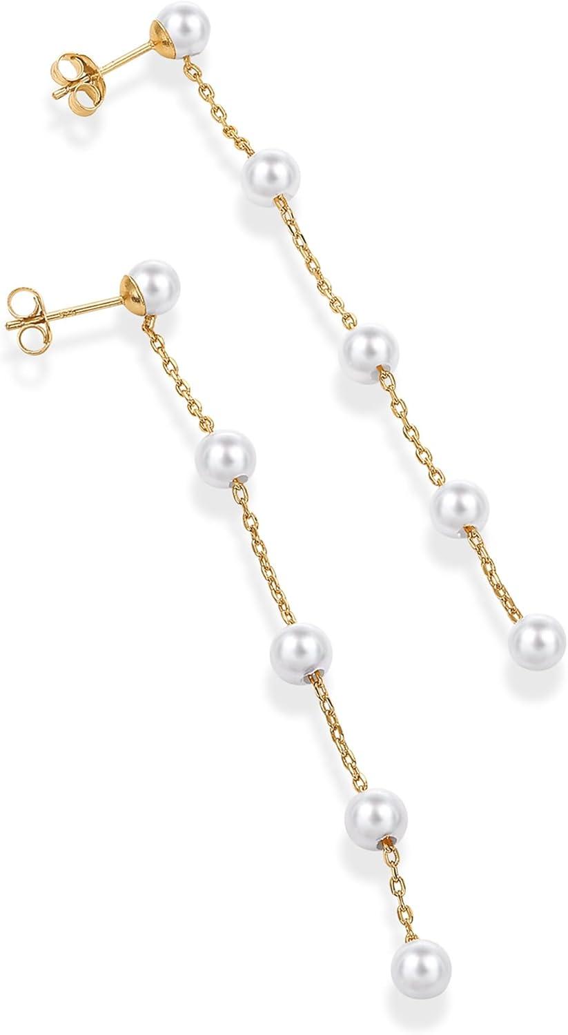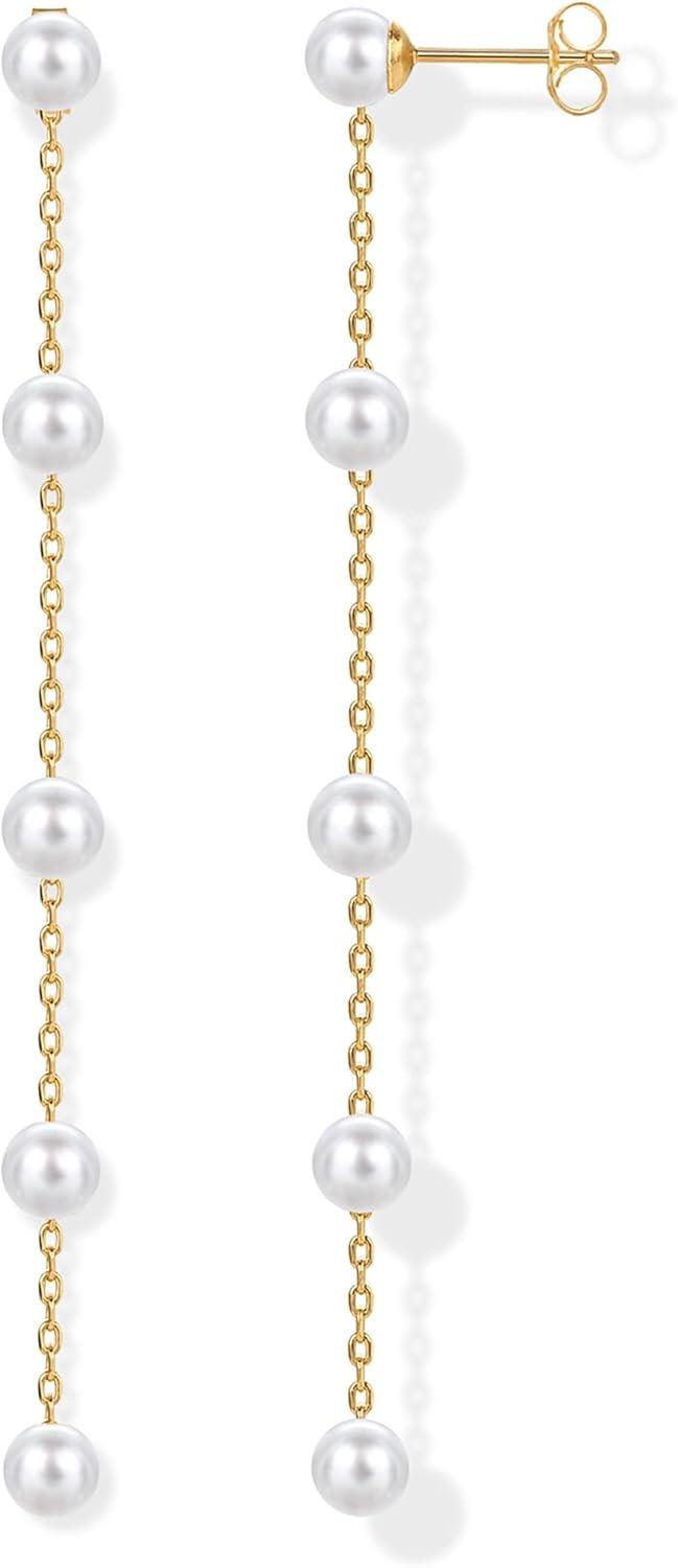 PAVOI 14K Gold Plated 925 Sterling Silver Posts Shell Pearl Dangle Drop Earrings | Bridal Pearl Earrings for Women(Station Pearls)