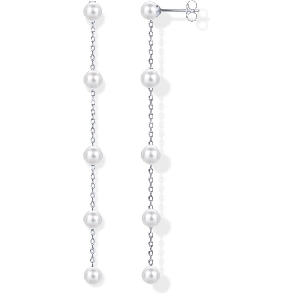 Pearls never go out of style, so we added 5 to this dangling drop earring pair for the ultimate symbol of modern sophistication. Hypoallergenic, durable, and versatile to elevate any special-occasion look. Earring length: 3″ Mother of Pearl size: 5mm