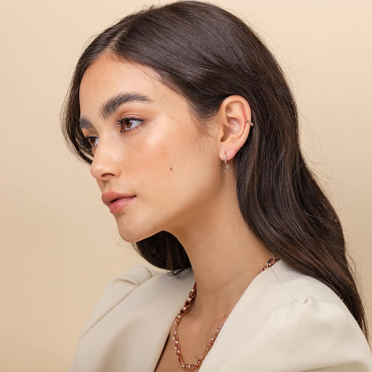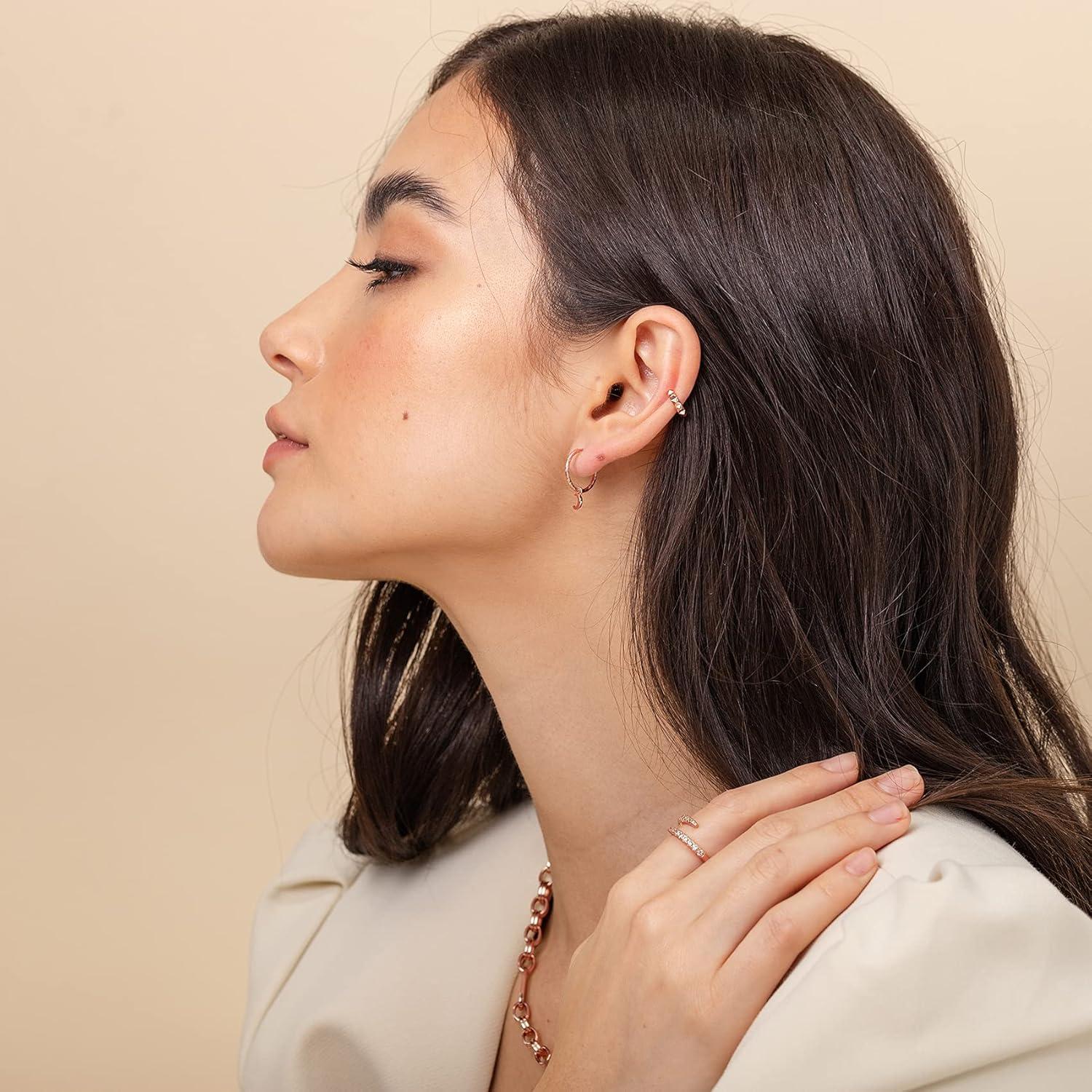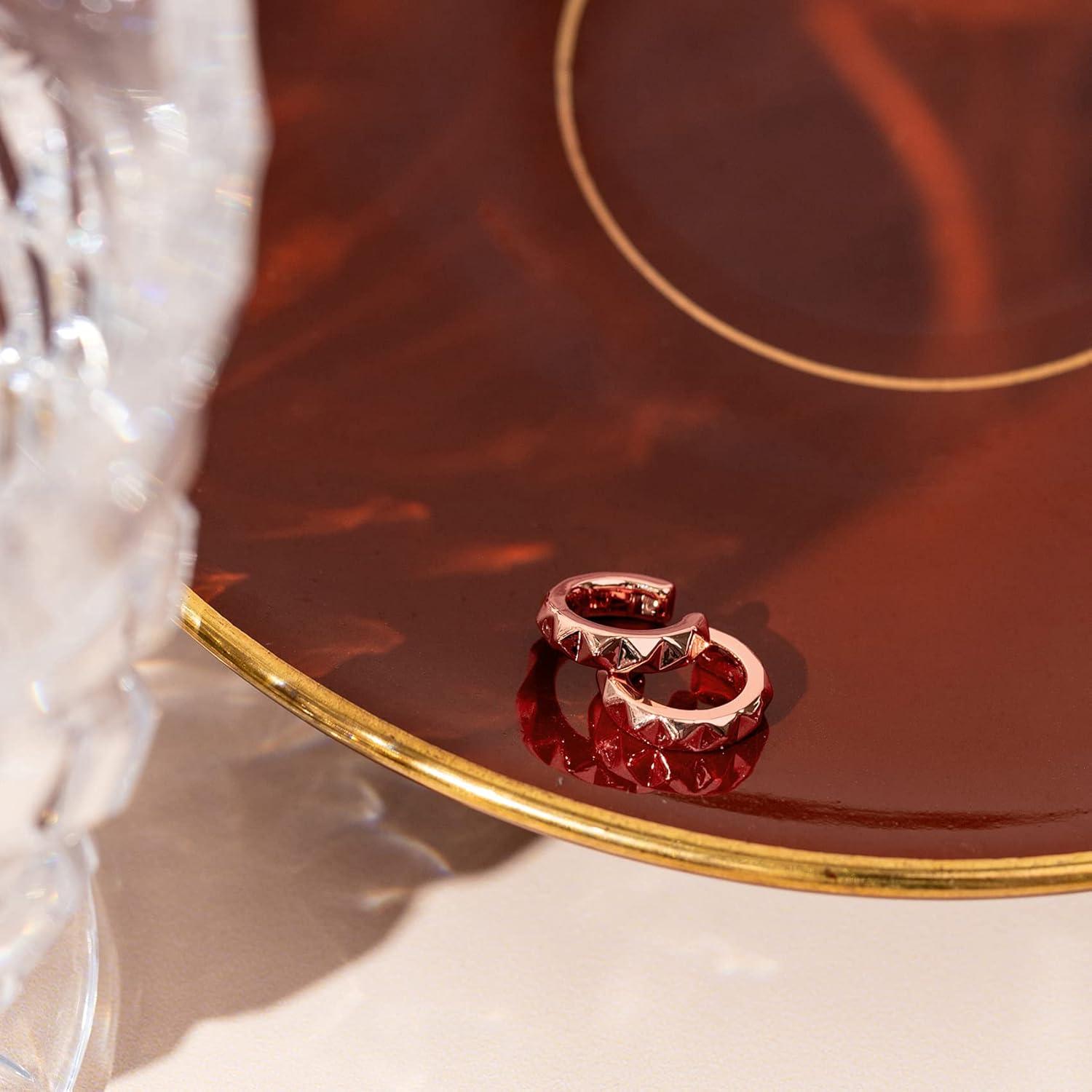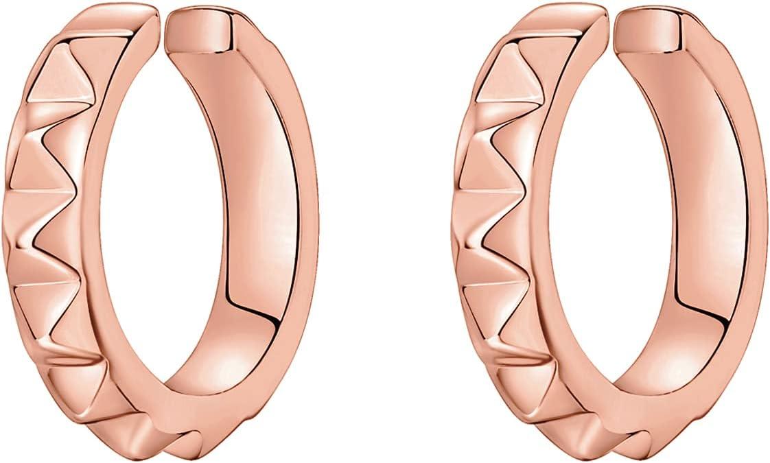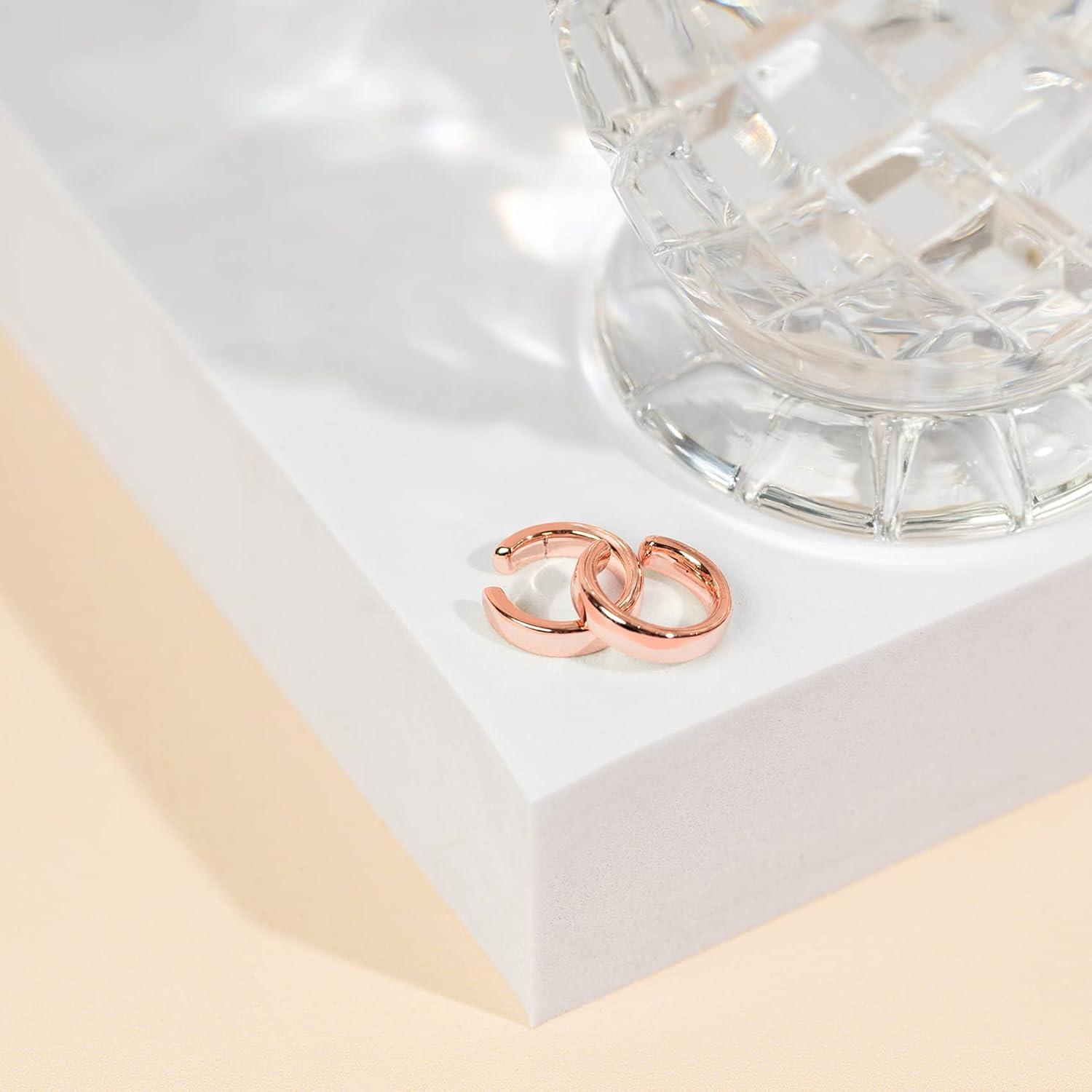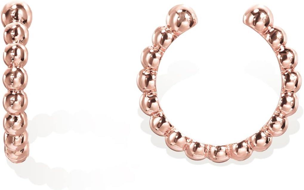 PAVOI 14K Gold Plated 925 Sterling Silver Round Huggie Ear Cuff Gold Earrings for Women | Clip On Cartilage Cuff Earrings(Rose Gold)