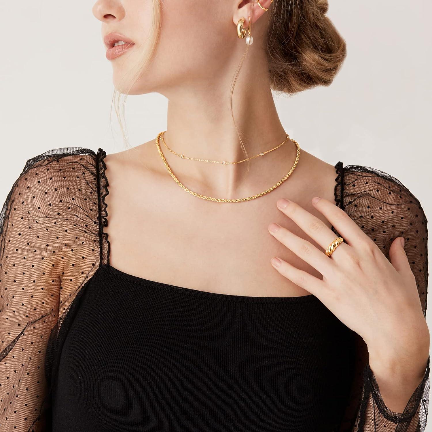 PAVOI 14K Gold Plated Adjustable Link Chain Necklace for Women | Box Rope Sphere Bead Serpentine Anchor Mariner Gold Chain Necklaces(18K Yellow Gold Vermeil)