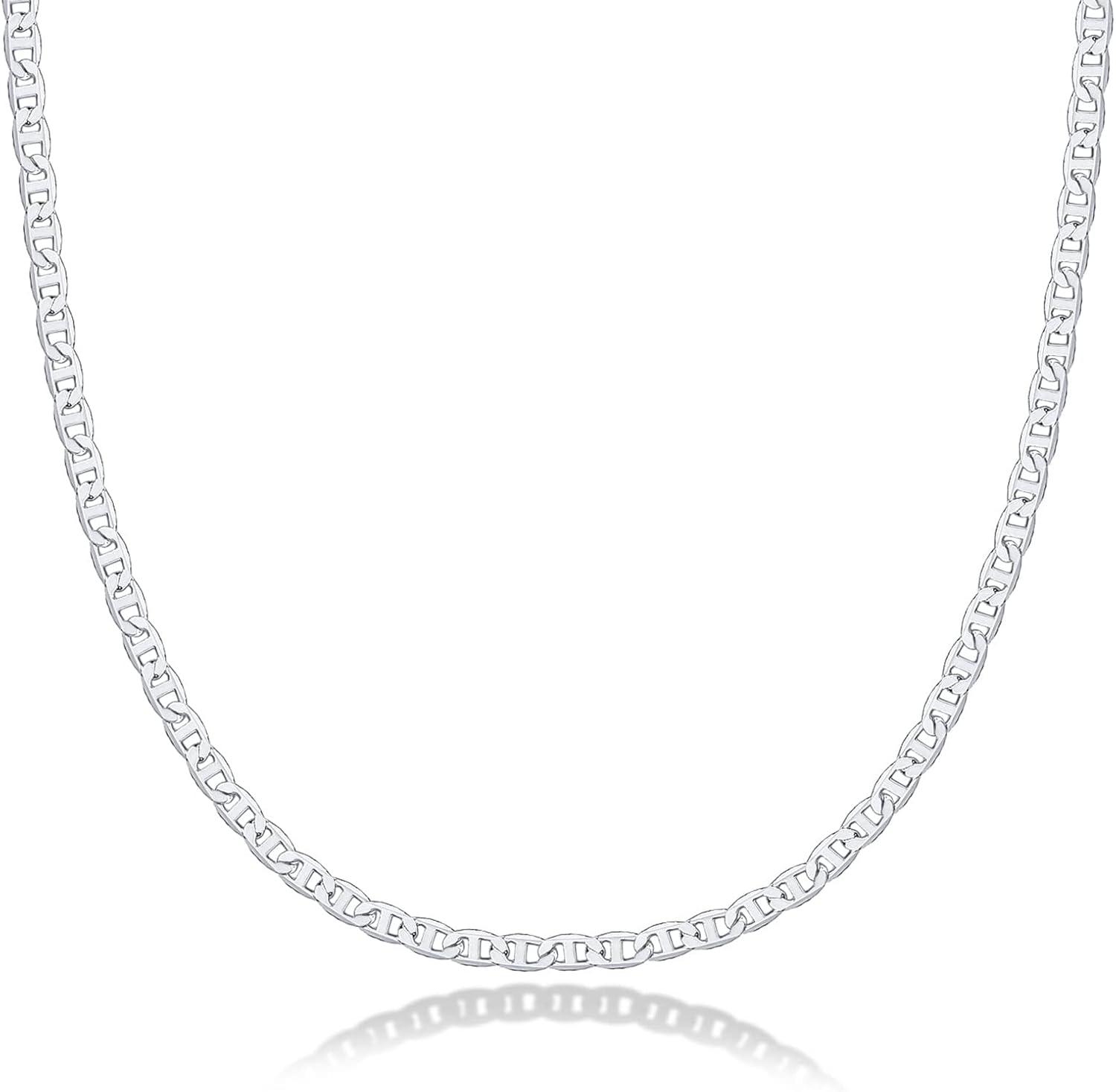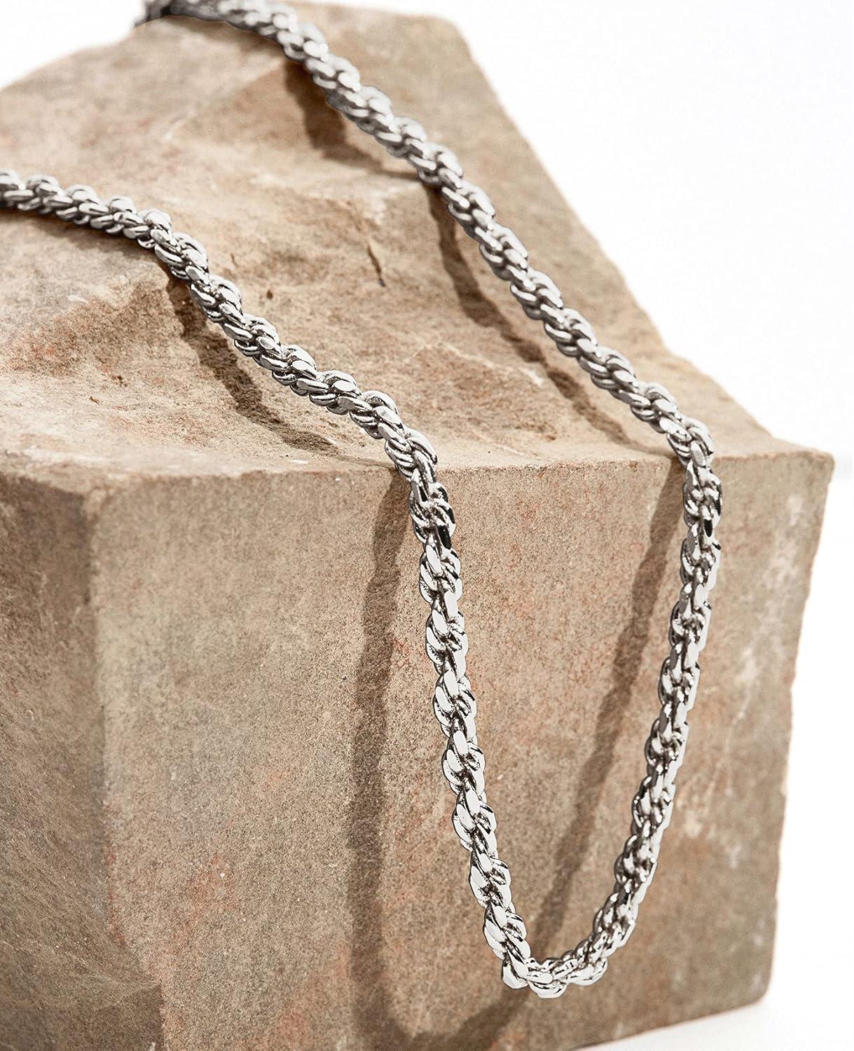 PAVOI 14K Gold Plated Adjustable Link Chain Necklace for Women | Box Rope Sphere Bead Serpentine Anchor Mariner Gold Chain Necklaces(White Gold)