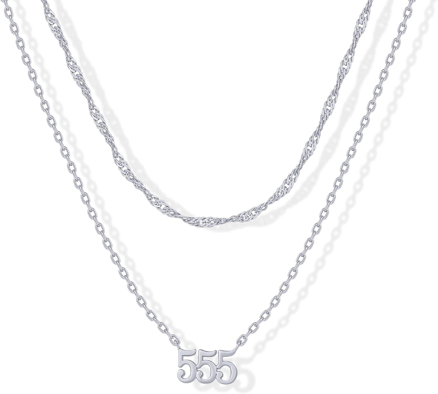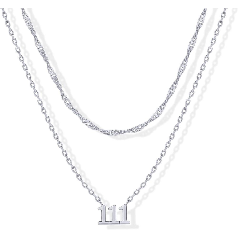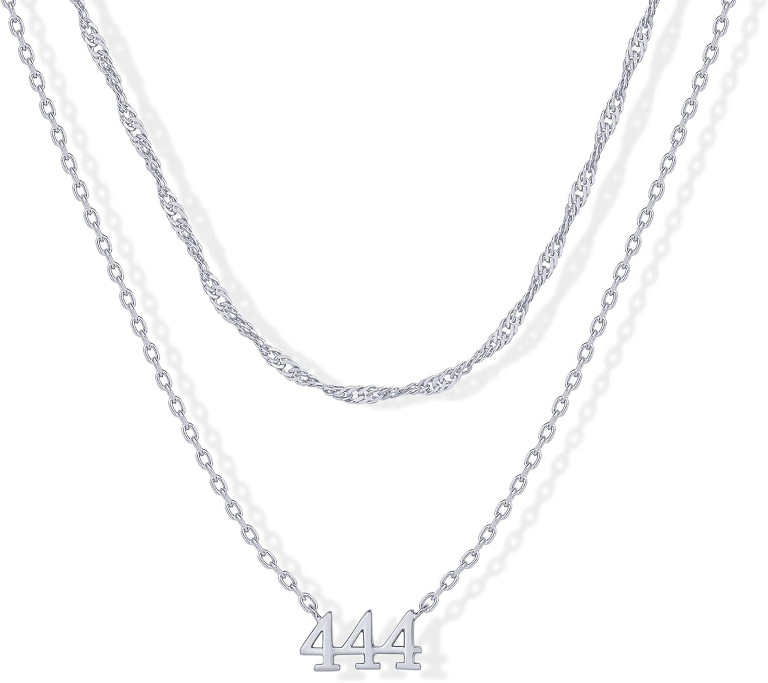PAVOI 14K Gold Plated Angel Number Pendant Layering Necklace for Women | 999 Lucky Numerology Singapore Chain Necklace(White Gold)