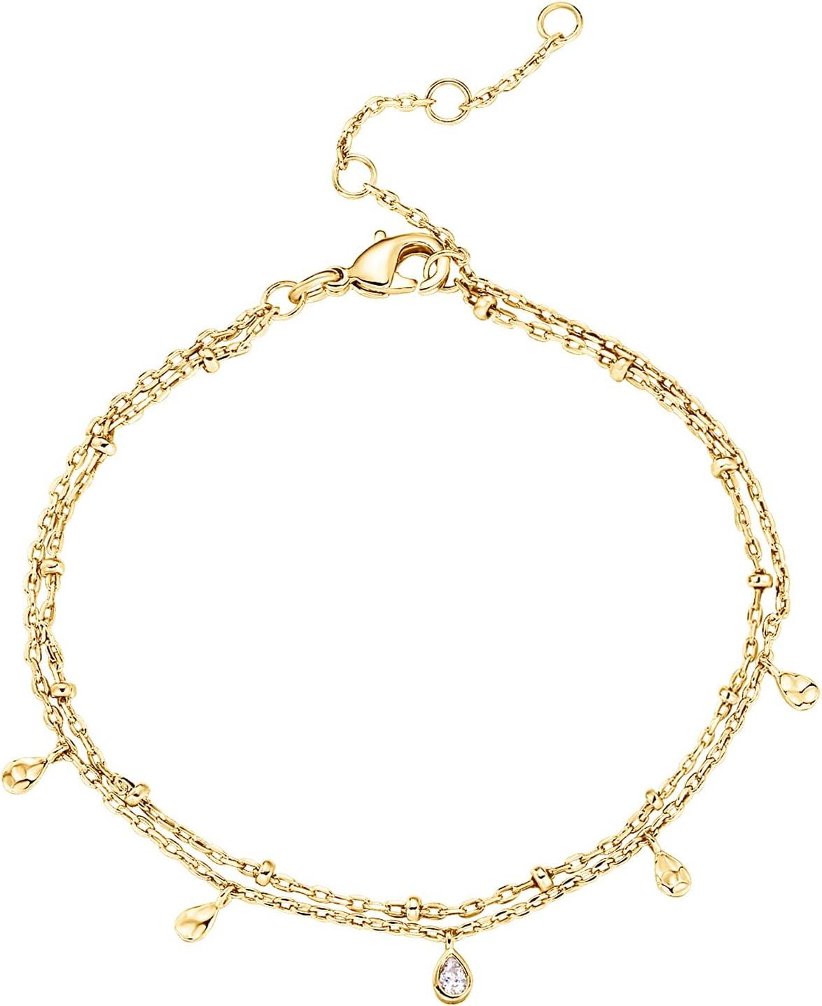 PAVOI 14K Gold Plated Beaded Bracelet for Women | Stackable Gold Bead Bracelet | Adjustable Dainty Gold Jewelry(Yellow Gold)