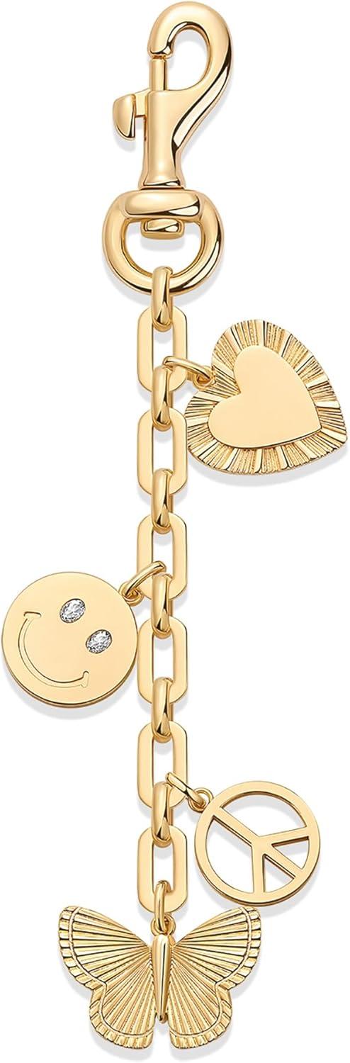 PAVOI 14K Gold Plated Chain Bag Charm for Handbags – Trendy Removable Motif Charms Keychain for Women – Purse Accessory Gift(Peace & Love)