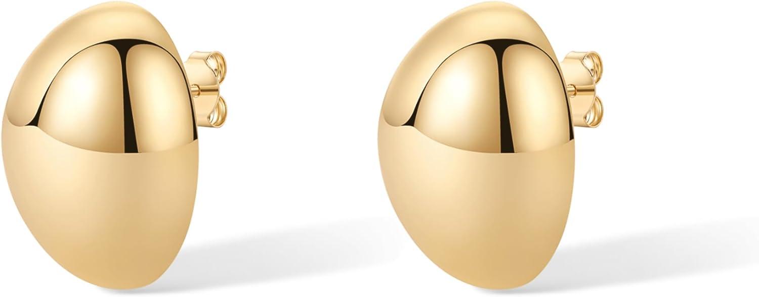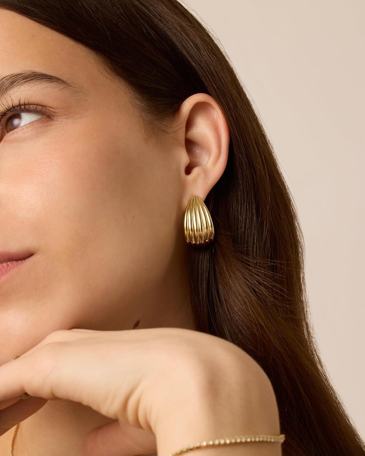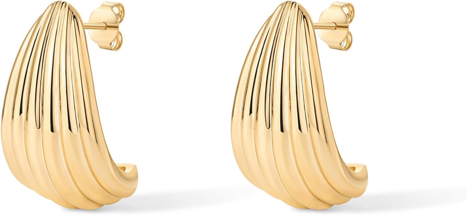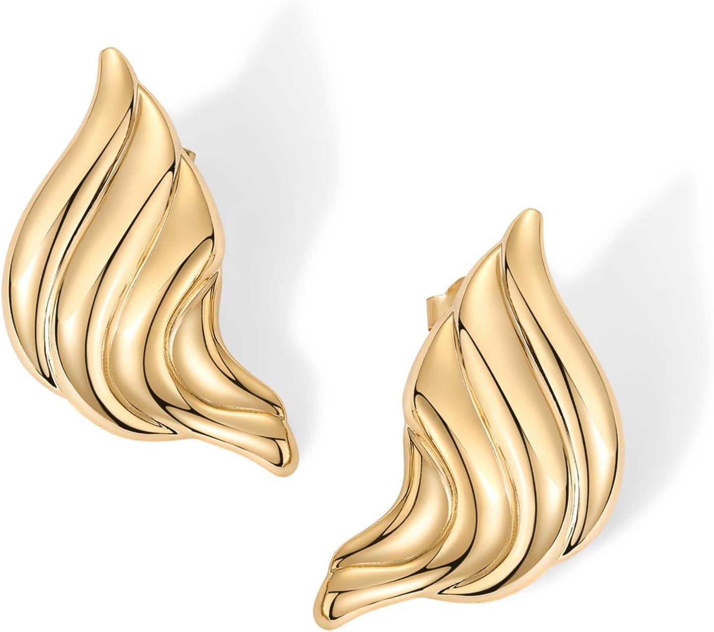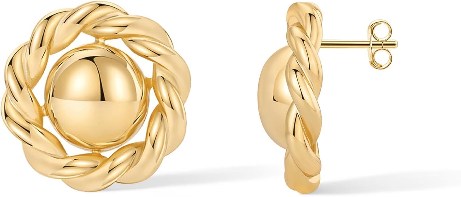 PAVOI 14K Gold Plated Chunky Vintage Earrings for Women – Trendy Textured Ribbed Knot Geometric Triangle Rope Button Seashell Wing Dangle Drop Stud Earrings Dupes(Yellow Gold)
