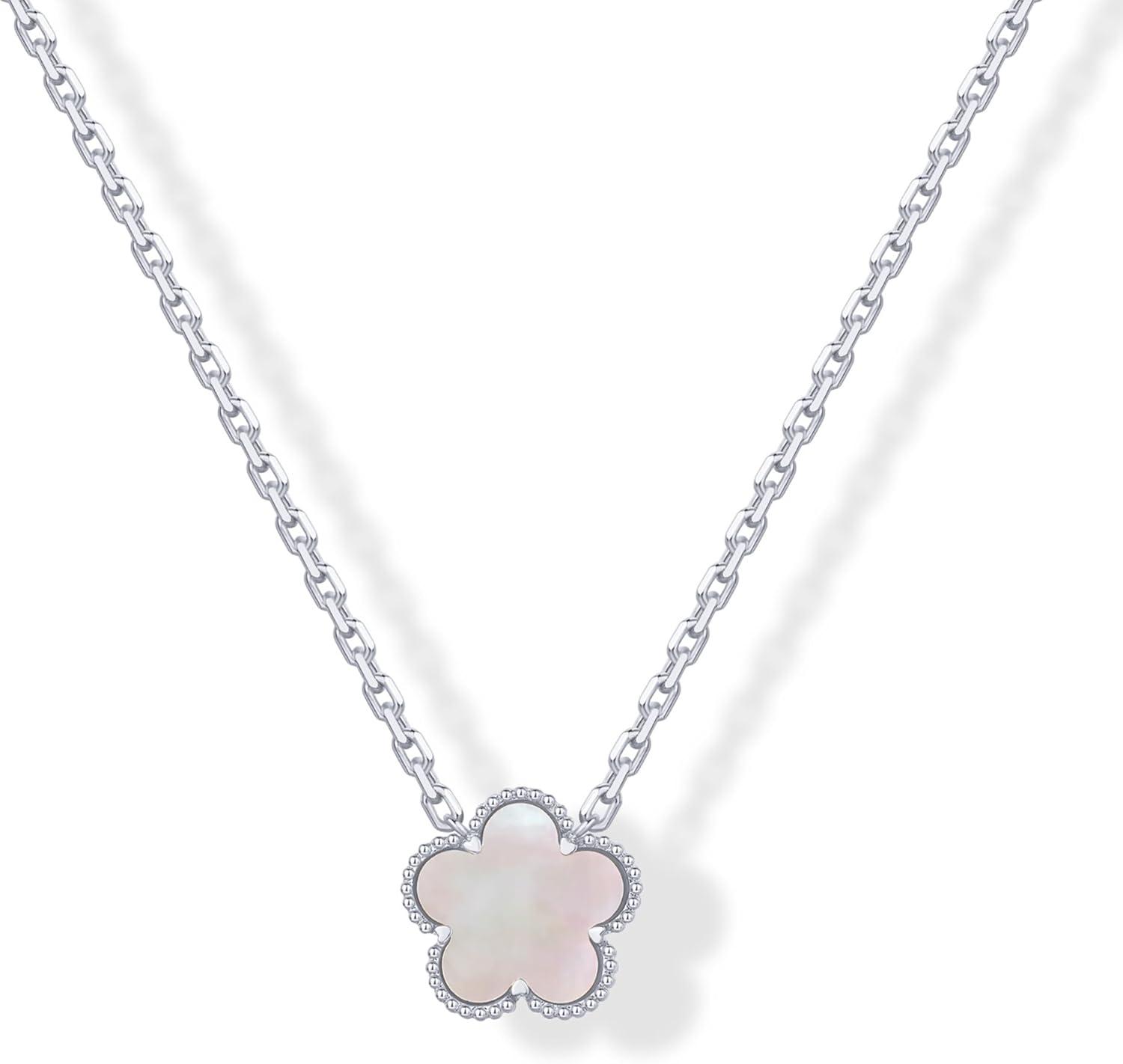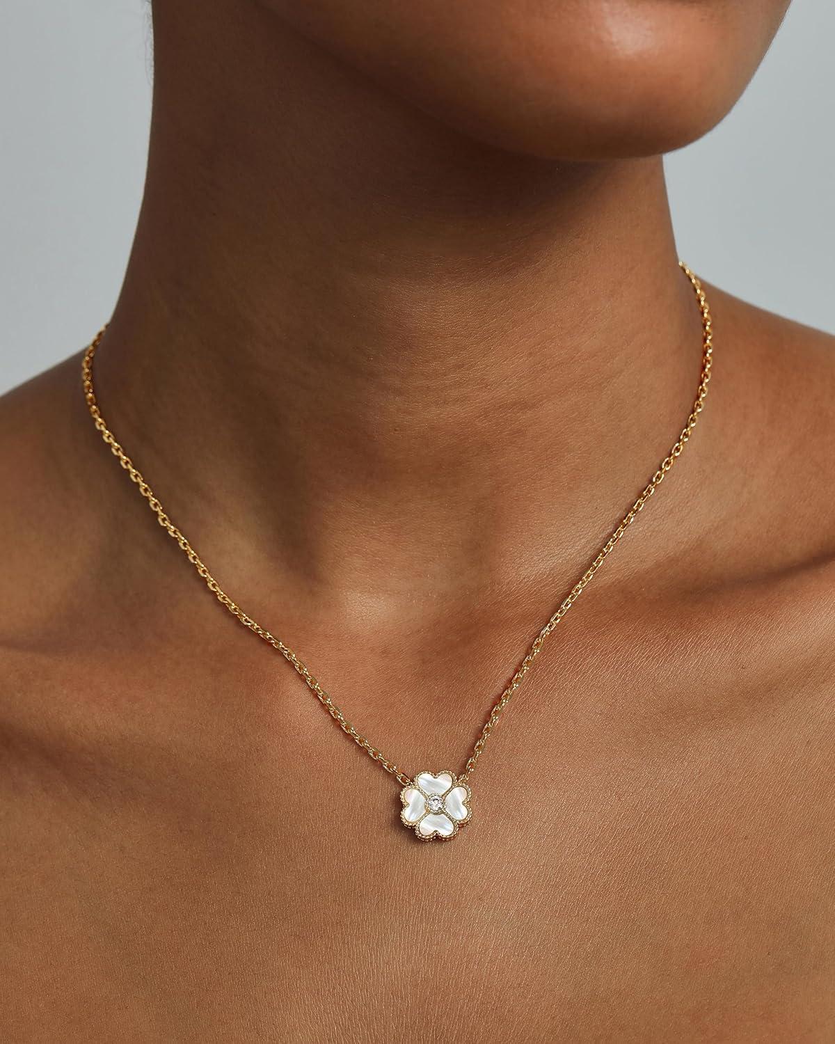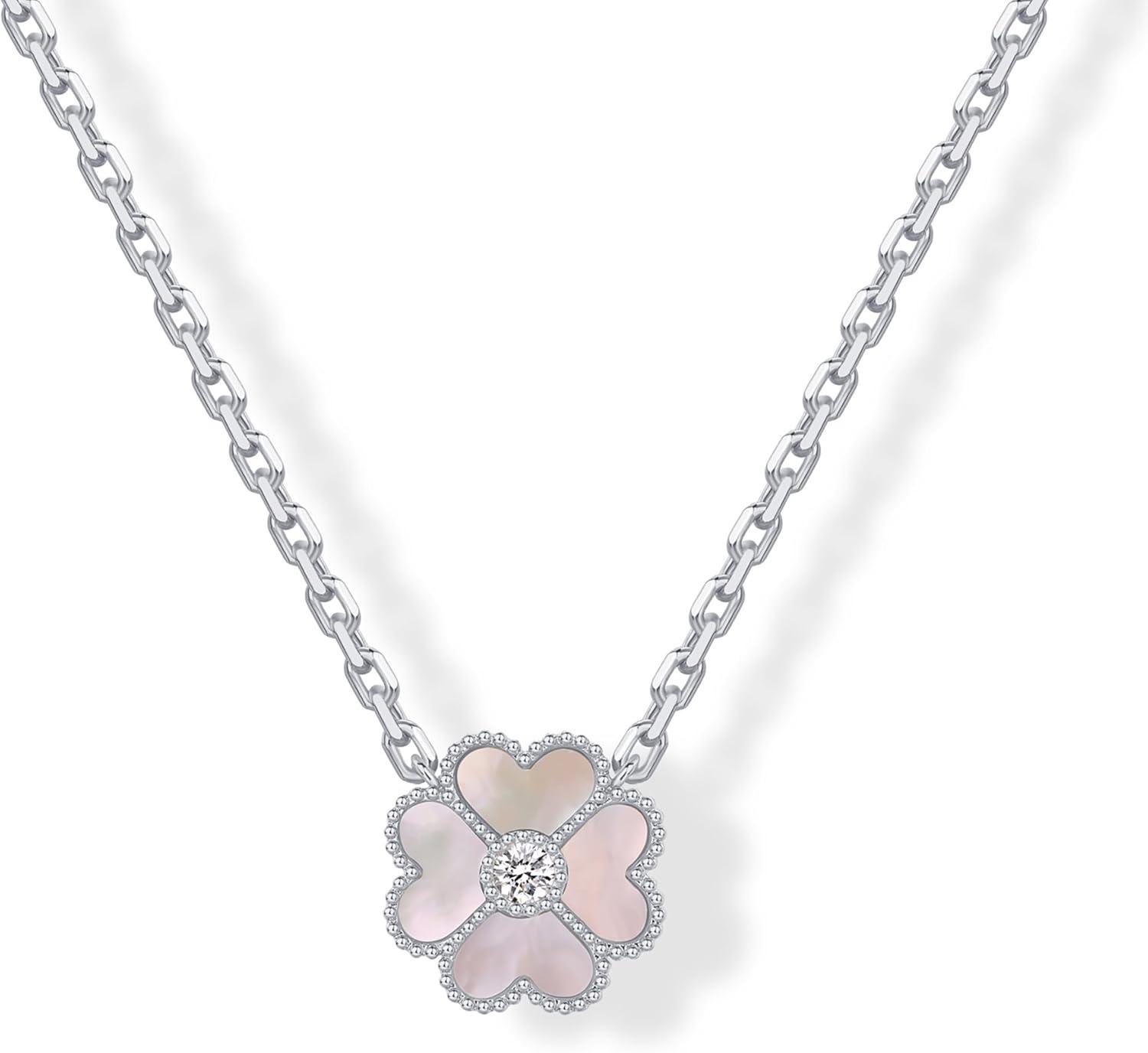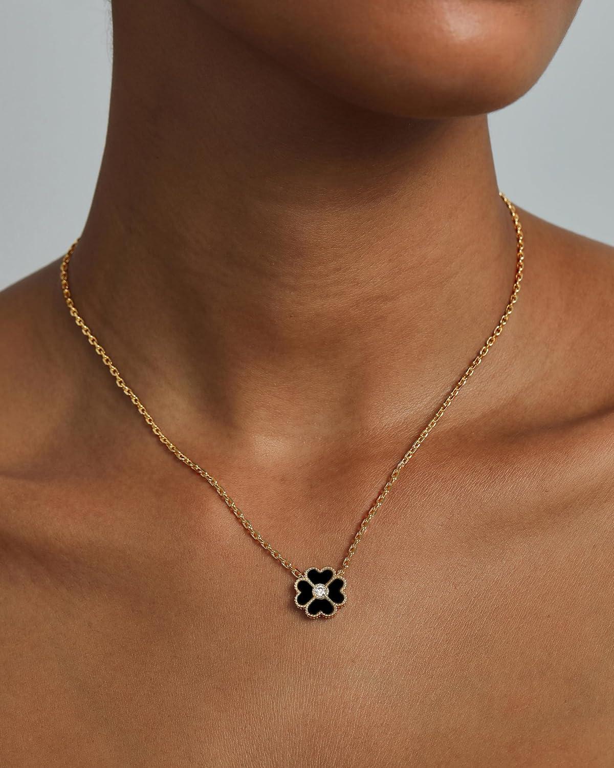 PAVOI 14K Gold Plated Clover Necklaces for Women – Lucky Four Leaf Clover Necklace Pendant – Trendy Flower Black Onyx Gemstone Mother of Pearl Jewelry Gifts(White Gold)