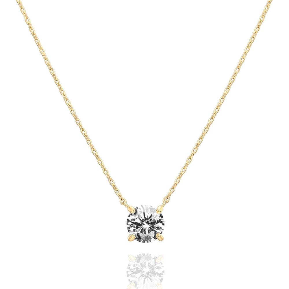 PAVOI 14K Gold Plated Crystal Solitaire 1.5 Carat (7.3mm) Cubic Zirconia Dainty Choker Necklace | Gold Necklaces for Women(Yellow Gold)