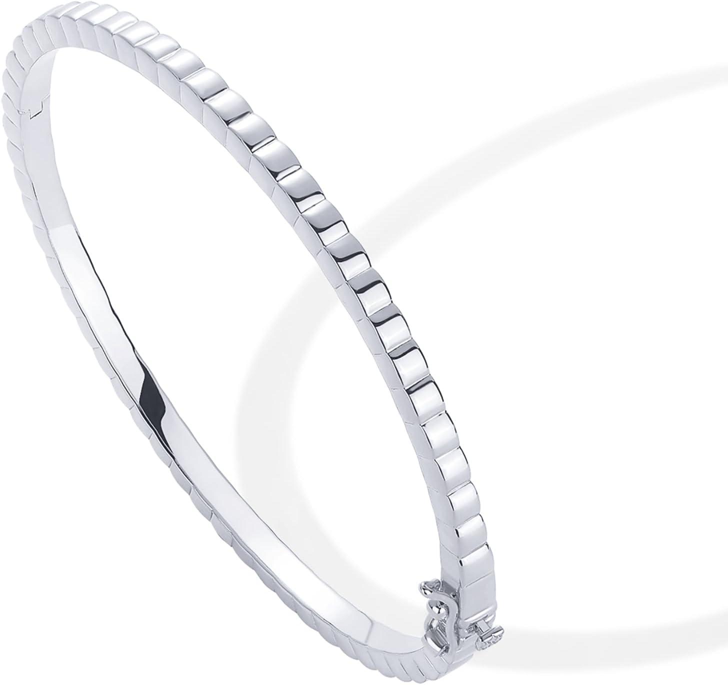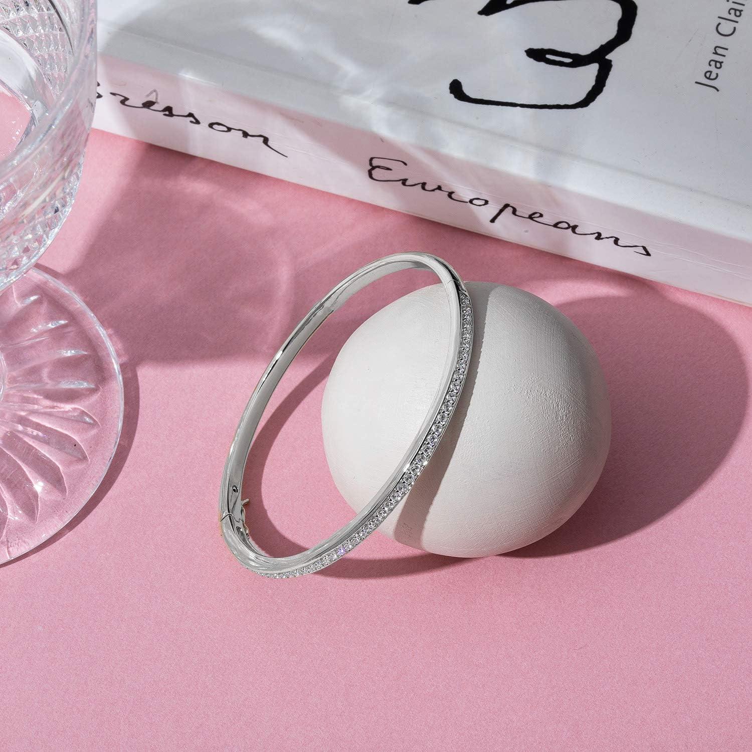 PAVOI 14K Gold Plated Cubic Zirconia Bangle Tennis Bracelets for Women | Classic Love Cuff Bangle Bracelets(White Gold)
