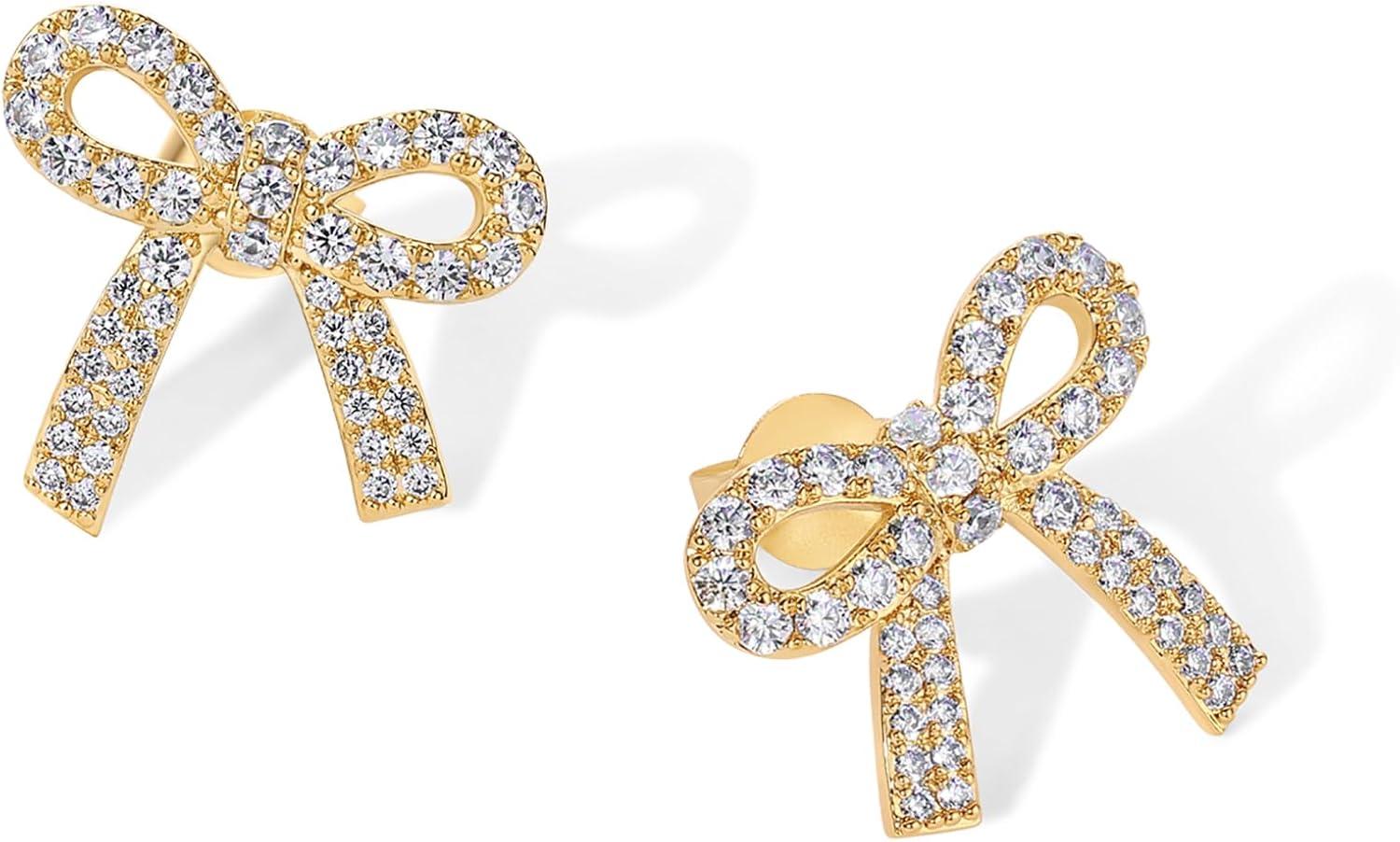 PAVOI 14K Gold Plated Cubic Zirconia Bow Stud Earrings for Women | Coquette Earring Pair(Cubic Zirconia)