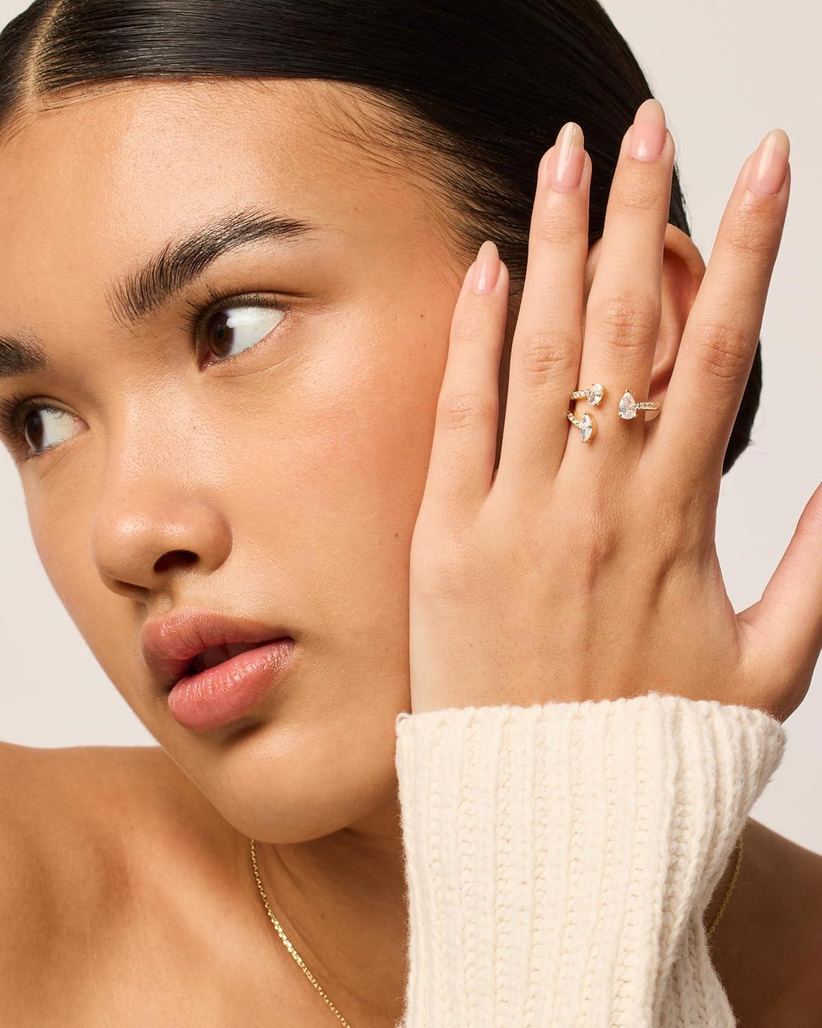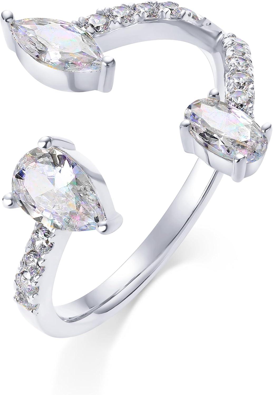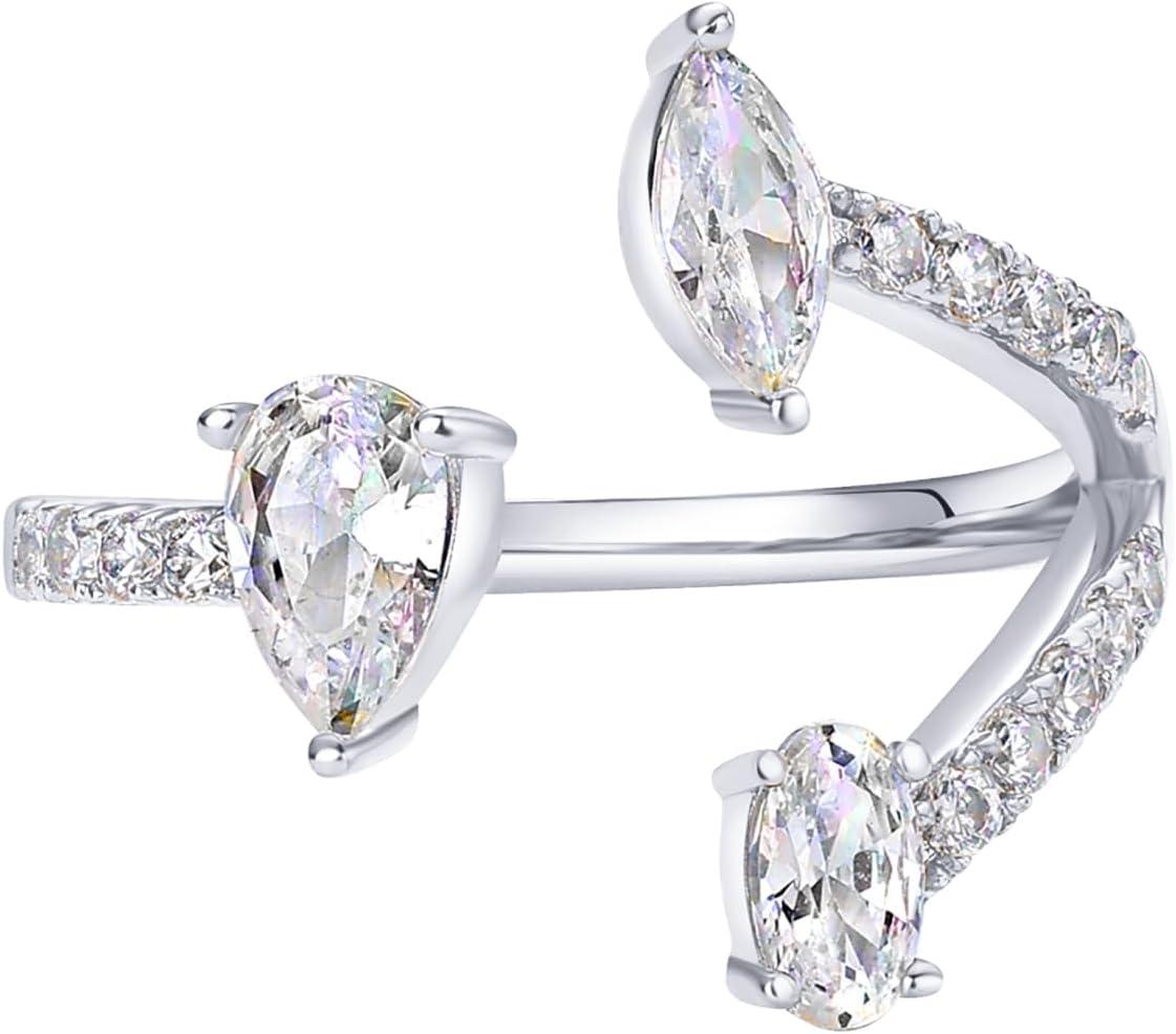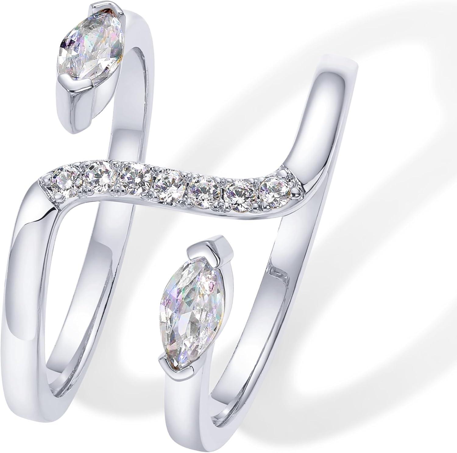 PAVOI 14K Gold Plated Cubic Zirconia Bypass Open Band Stackable Ring for Women | CZ Statement Eternity Rings(White Gold)