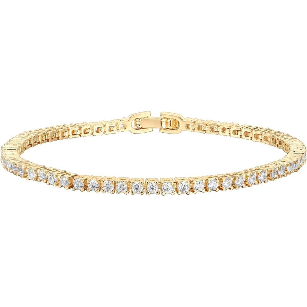 PAVOI 14K Gold Plated Cubic Zirconia Classic Tennis Bracelet | Gold Bracelets for Women | 2mm CZ, Size 6.5-7.5 Inch(Yellow Gold)