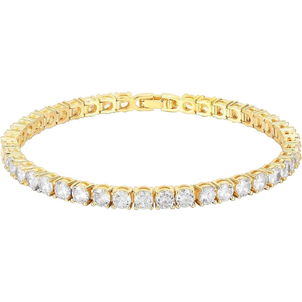 PAVOI 14K Gold Plated Cubic Zirconia Classic Tennis Bracelet | Gold Bracelets for Women | 4mm CZ, Size 6.5-7.5 Inch(Yellow Gold)
