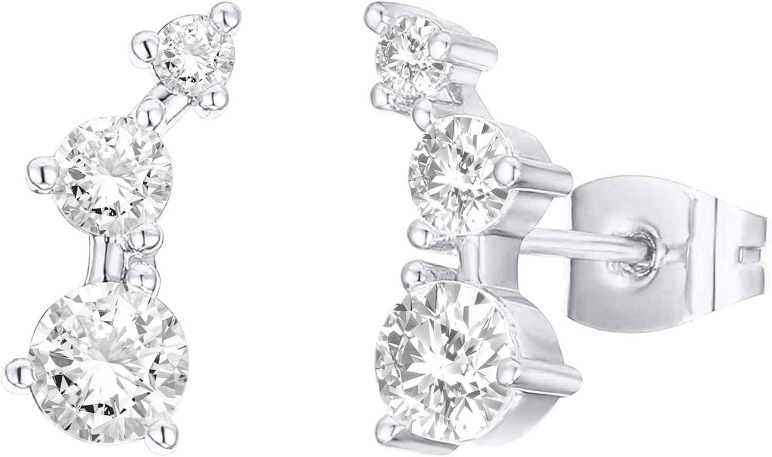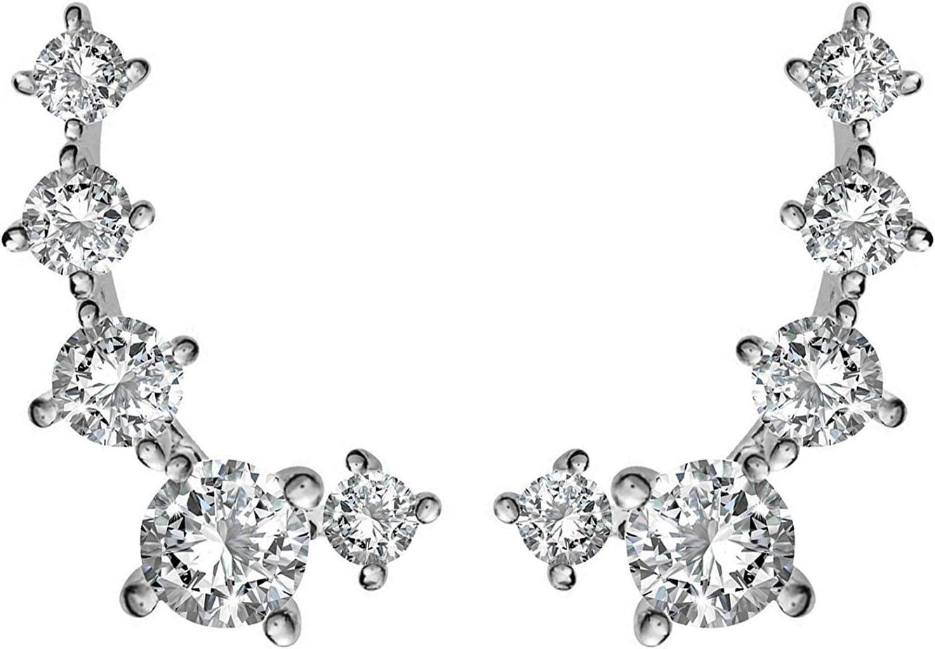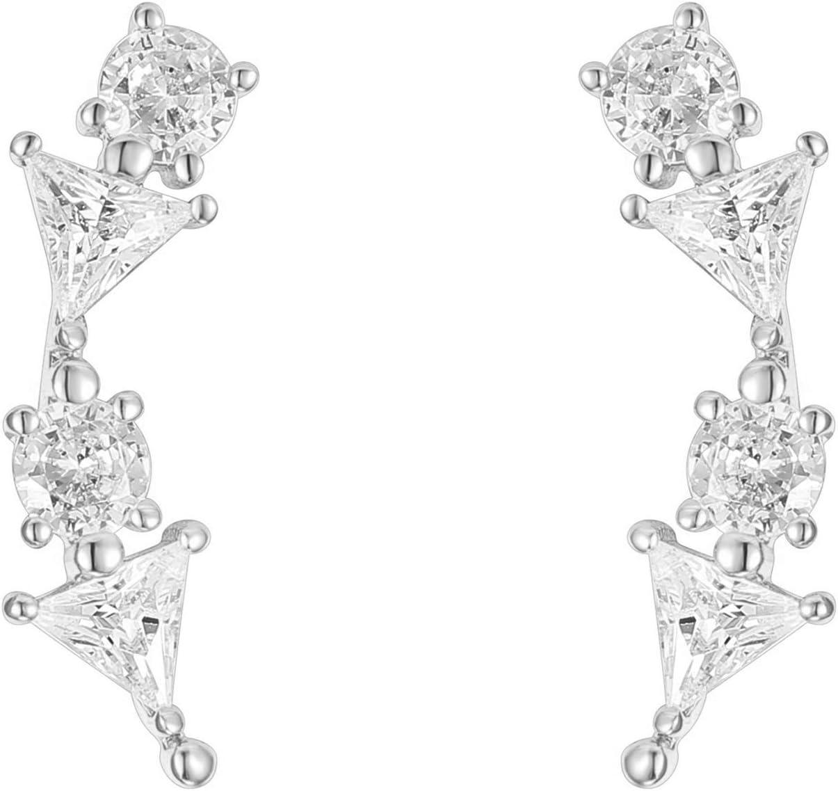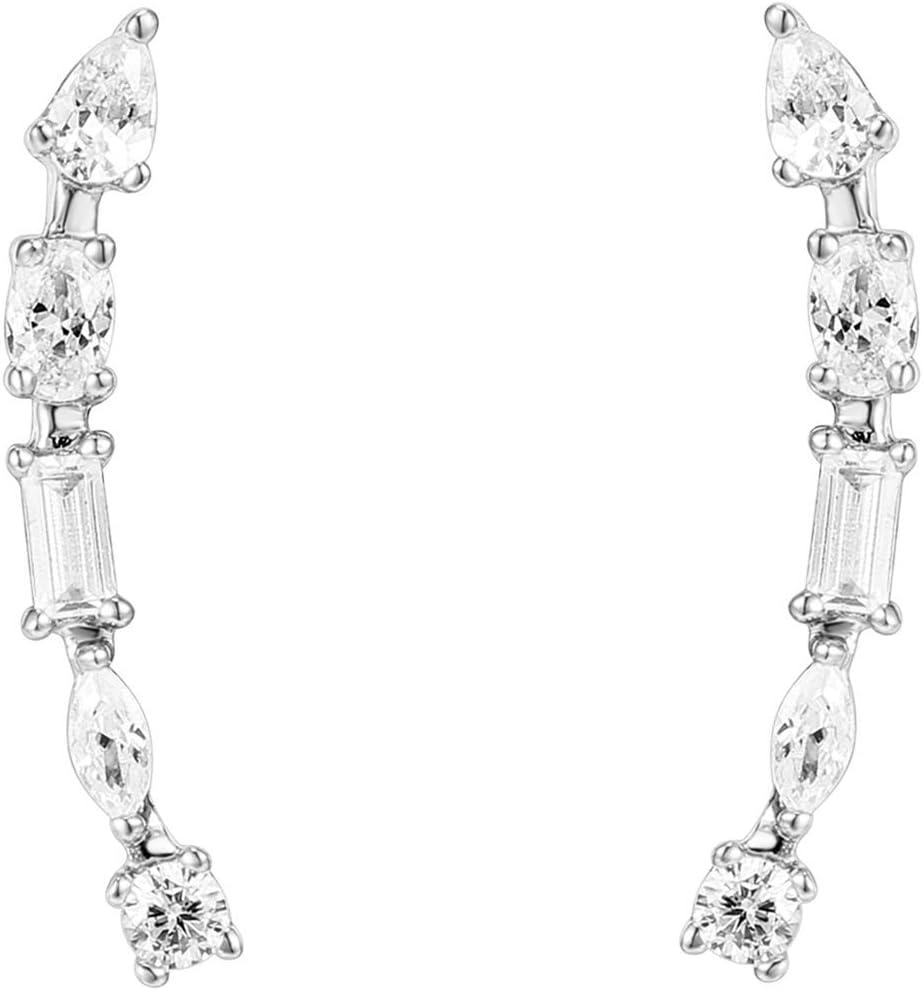 PAVOI 14K Gold Plated Cubic Zirconia Ear Crawler Earrings – Faux Diamond Arrow Ear Climber Fashion Earrings for Women(White Gold)