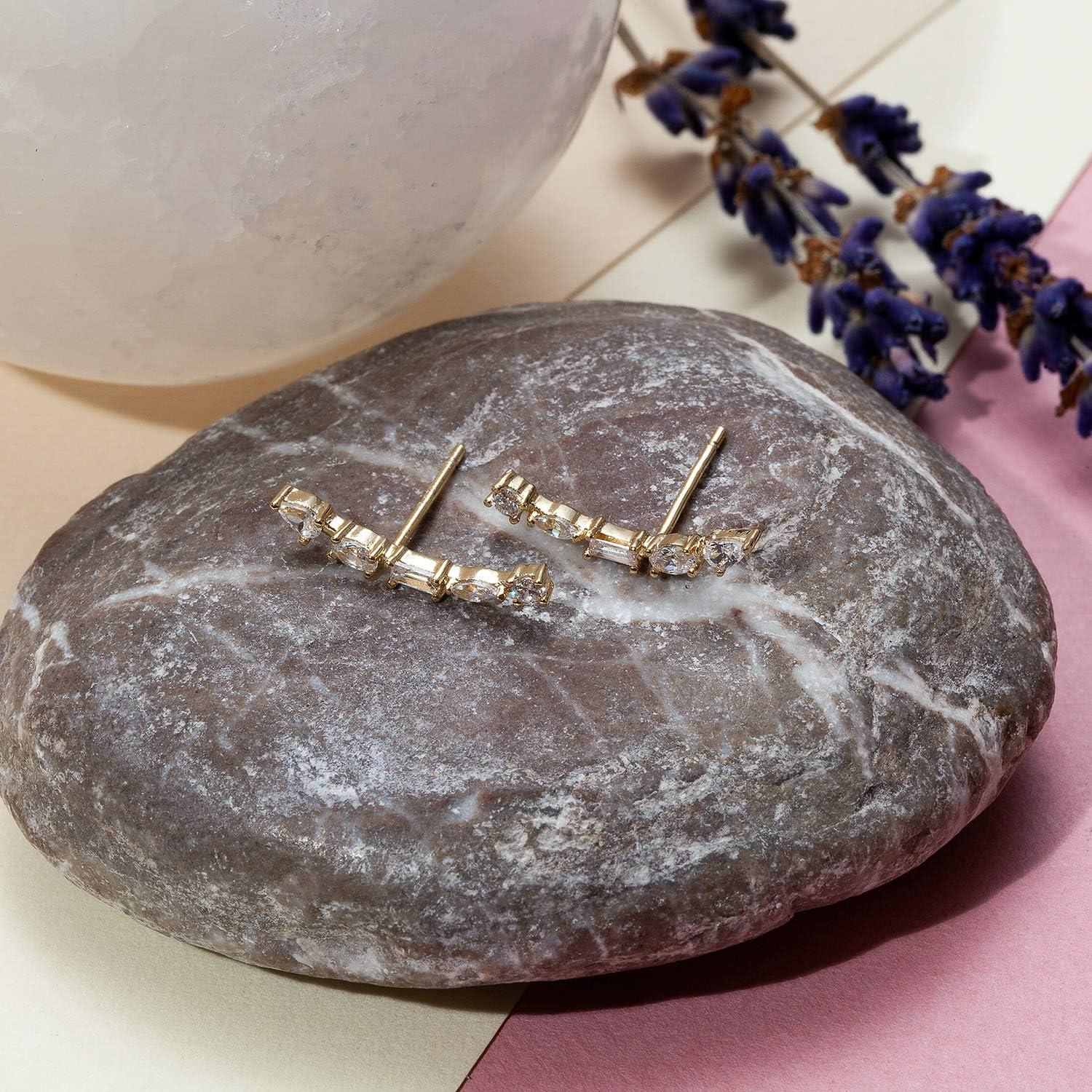 PAVOI 14K Gold Plated Cubic Zirconia Ear Crawler Earrings – Faux Diamond Arrow Ear Climber Fashion Earrings for Women