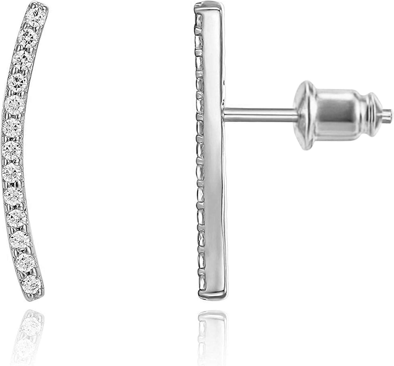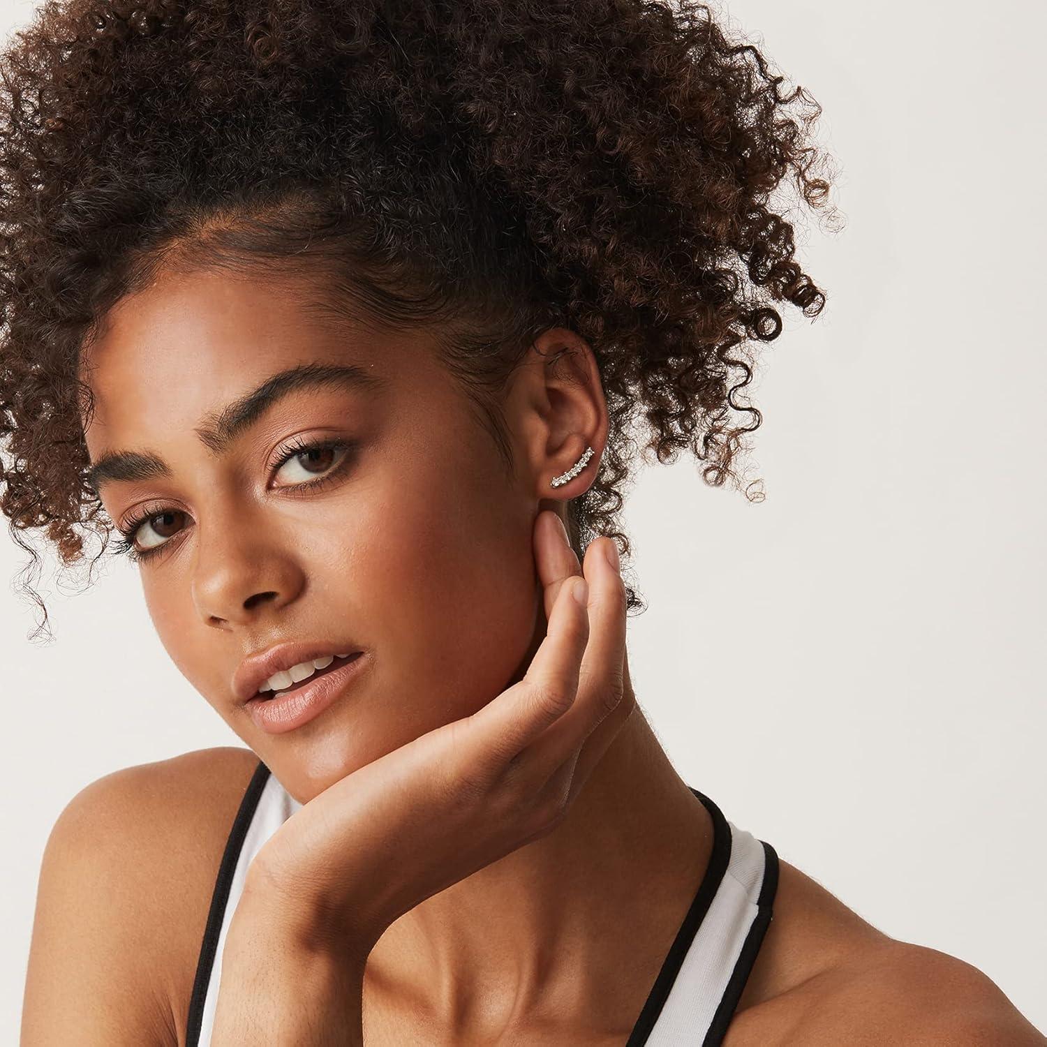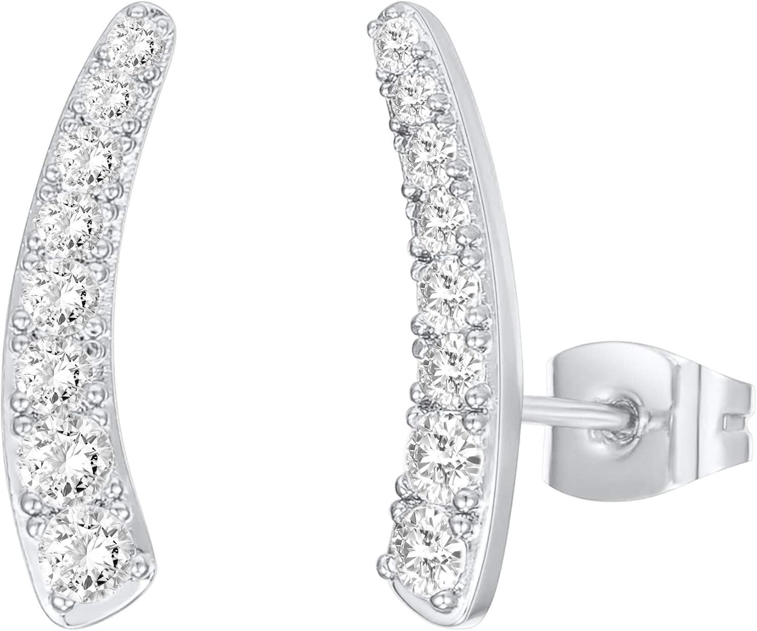 PAVOI 14K Gold Plated Cubic Zirconia Ear Crawler Stud Earrings for Women – Faux Diamond Arrow Climber Fashion Earrings – Trendy Earscape Statement Jewelry(White Gold)