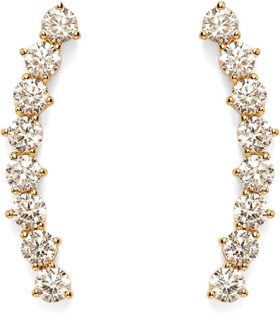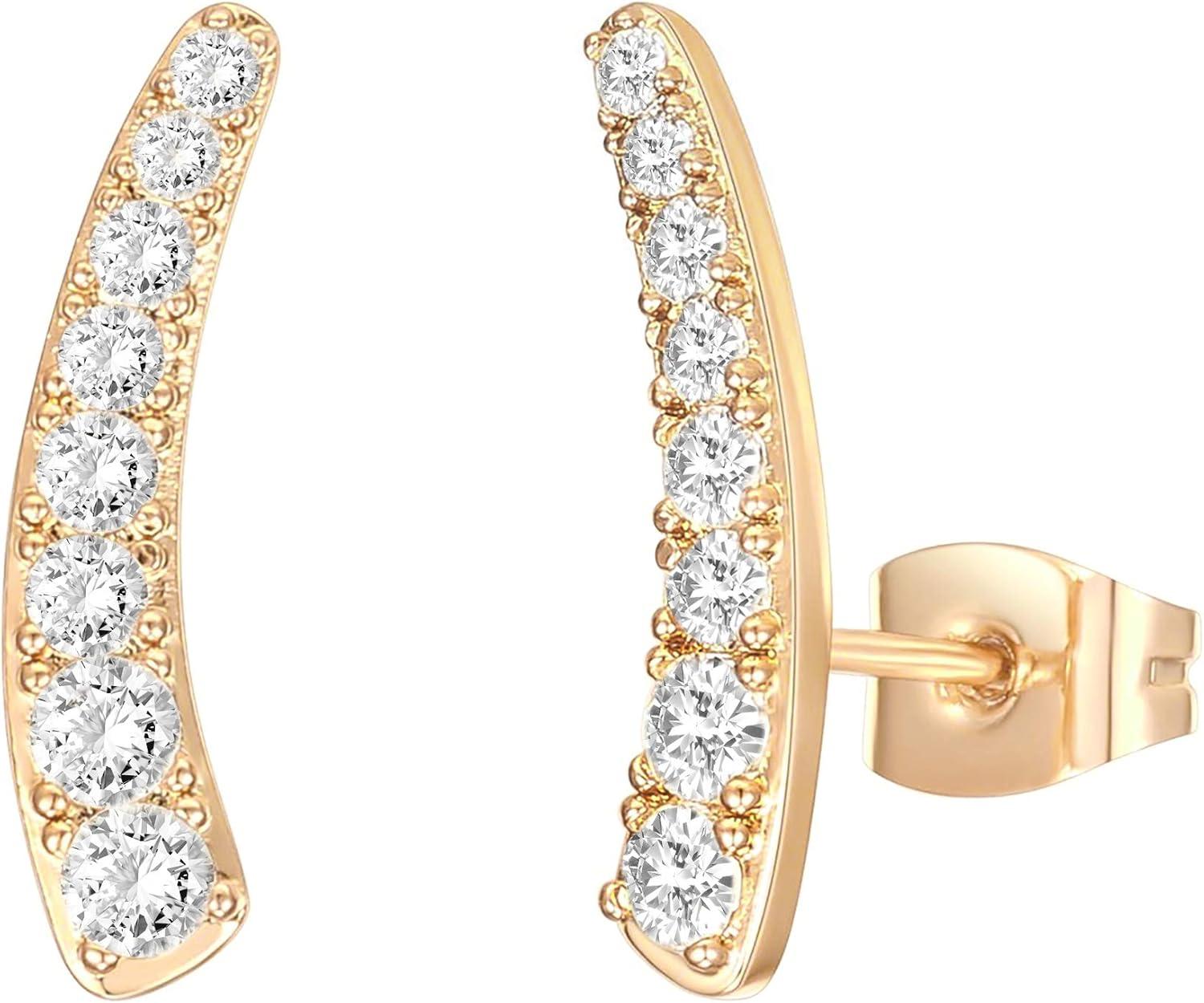 PAVOI 14K Gold Plated Cubic Zirconia Ear Crawler Stud Earrings for Women – Faux Diamond Arrow Climber Fashion Earrings – Trendy Earscape Statement Jewelry