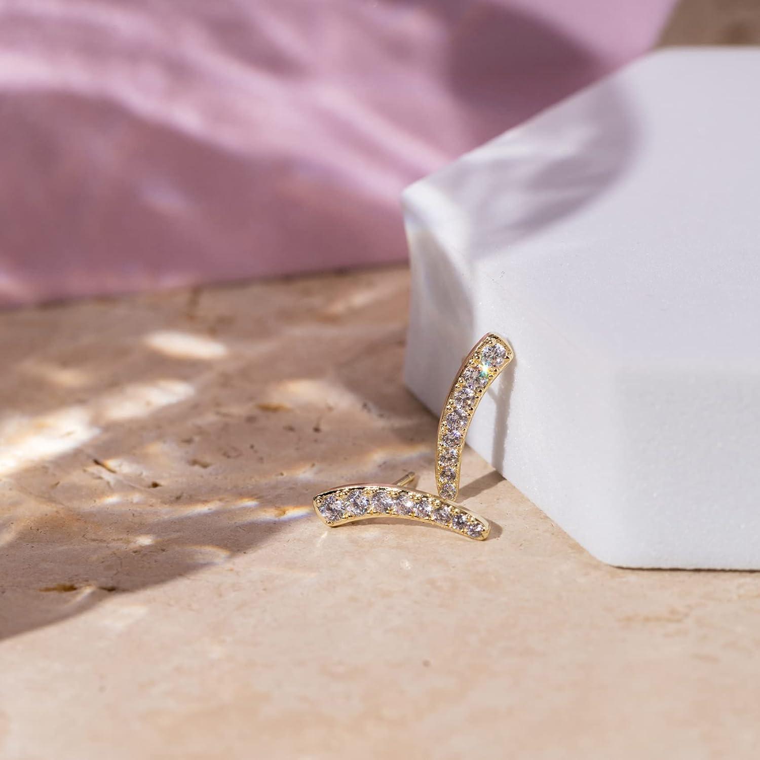 PAVOI 14K Gold Plated Cubic Zirconia Ear Crawler Stud Earrings for Women – Faux Diamond Arrow Climber Fashion Earrings – Trendy Earscape Statement Jewelry(Yellow Gold)