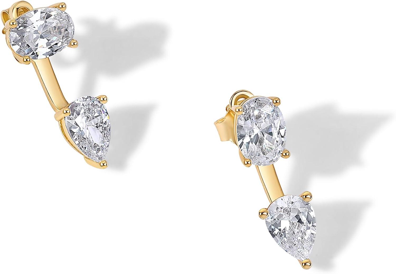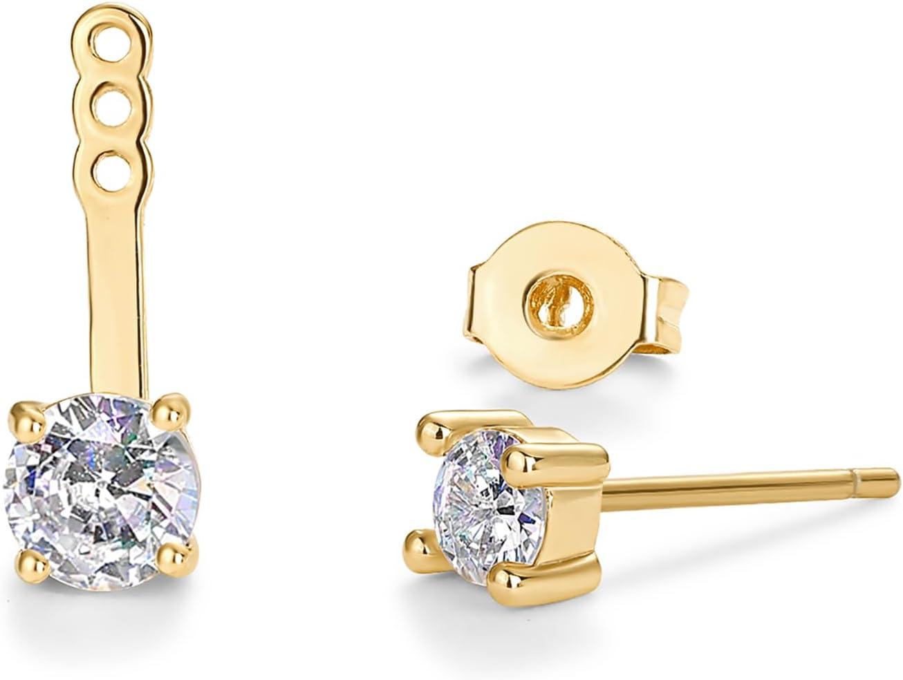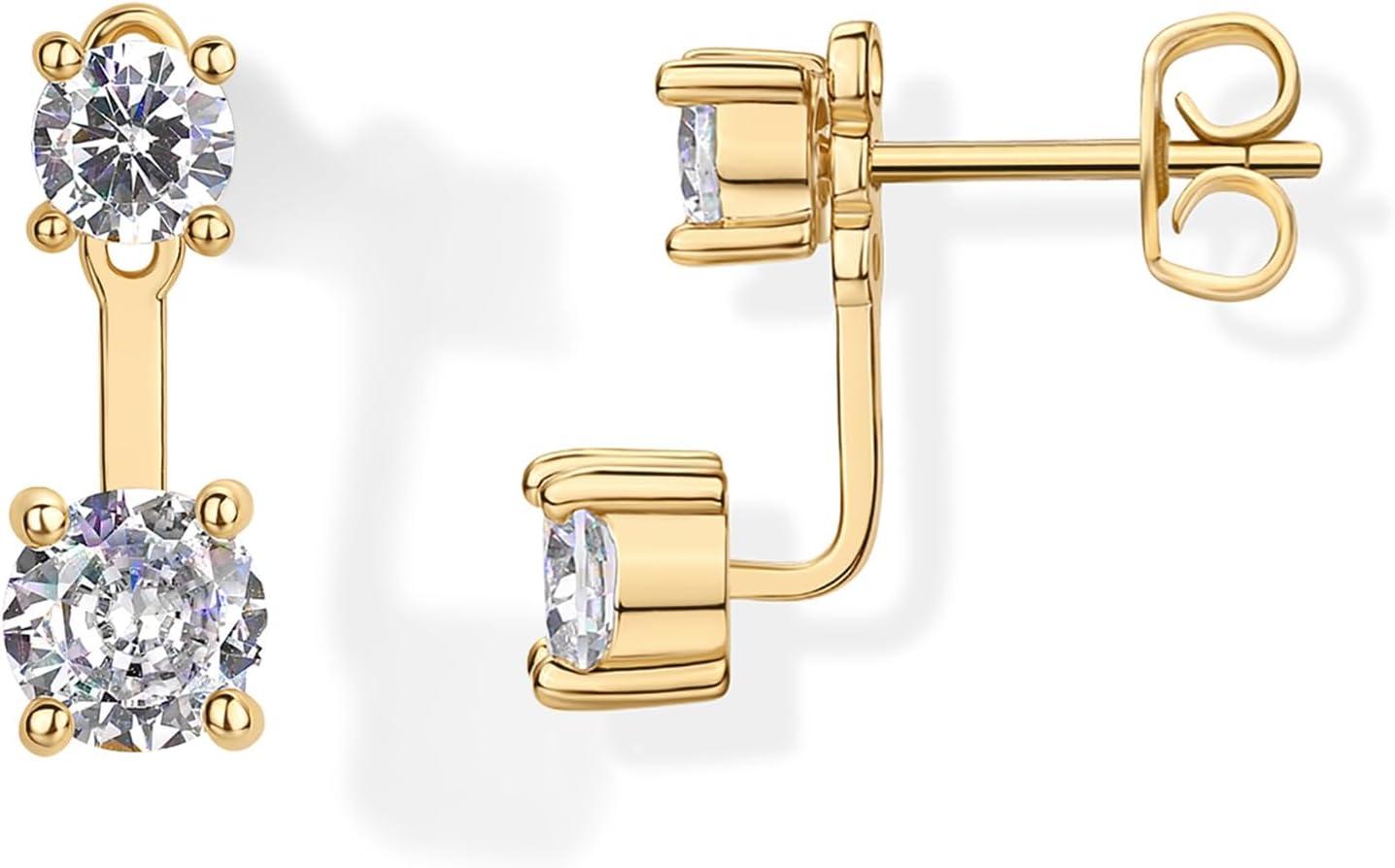 PAVOI 14K Gold Plated Cubic Zirconia Earrings Jacket for Women – 925 sterling silver Posts Dainty CZ Front and Back Double Studs – Statement Ear Jacket Earrings for Women
