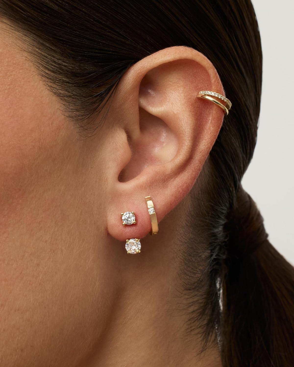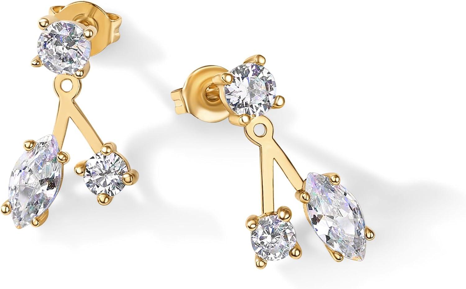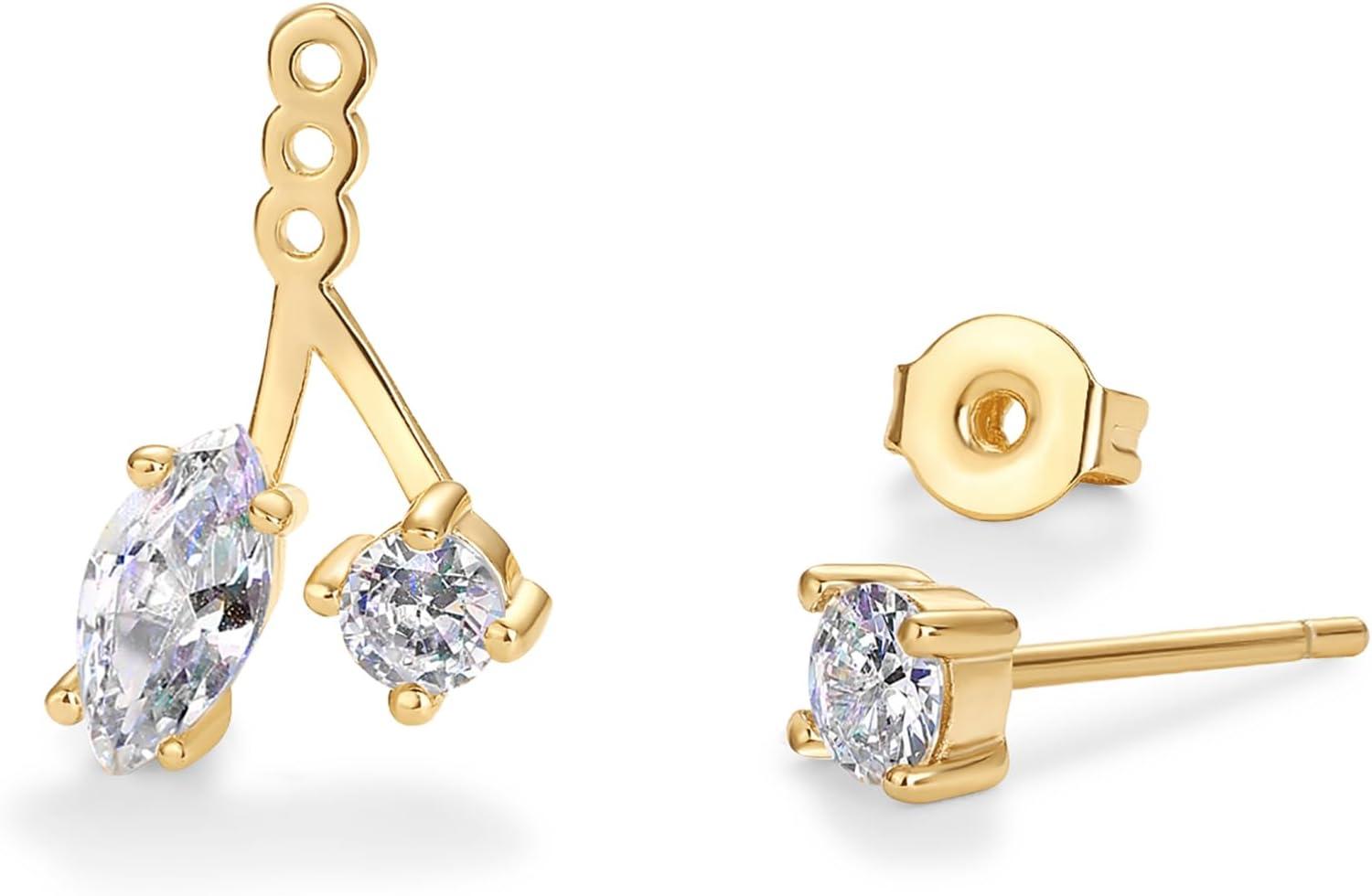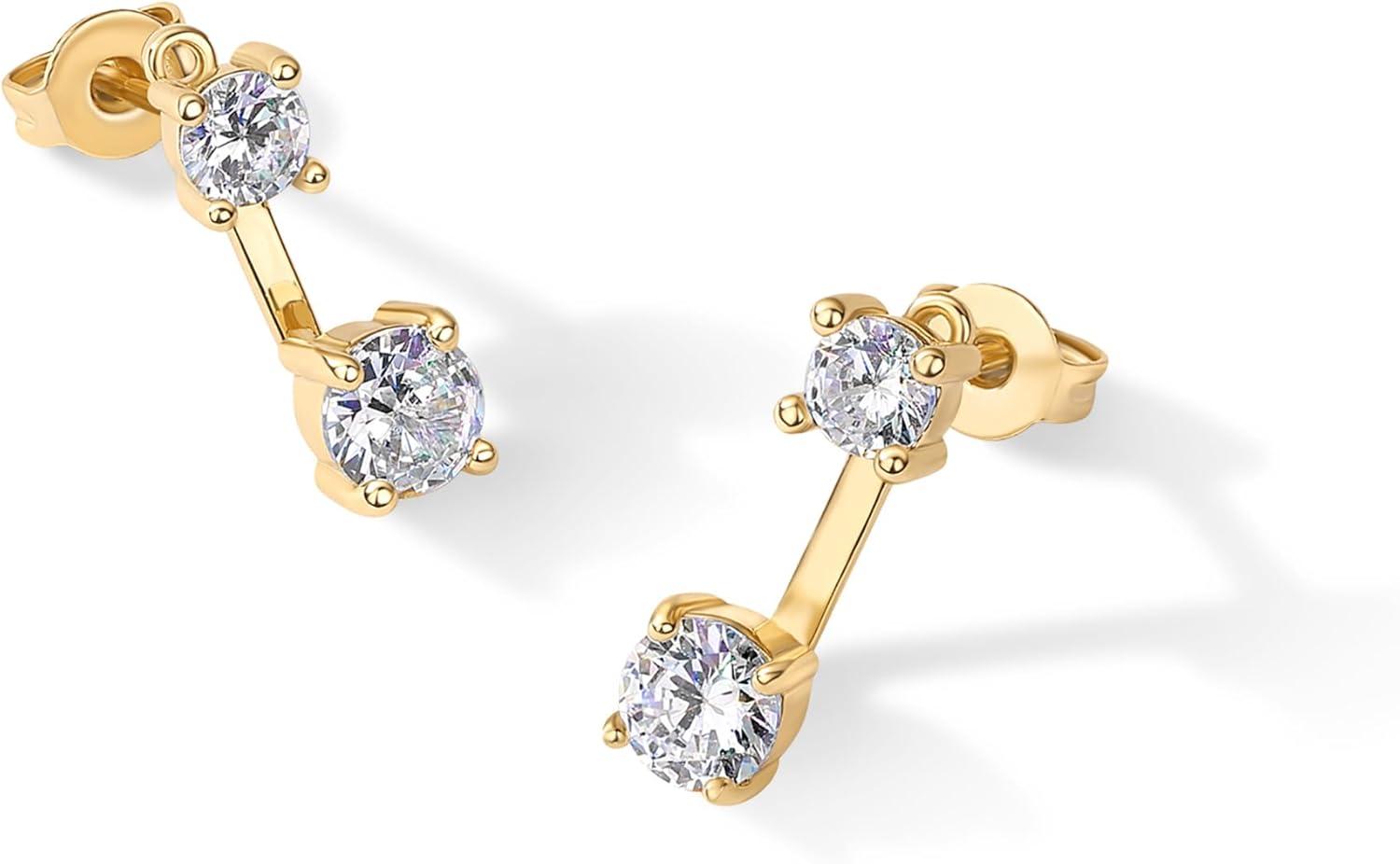 PAVOI 14K Gold Plated Cubic Zirconia Earrings Jacket for Women – 925 sterling silver Posts Dainty CZ Front and Back Double Studs – Statement Ear Jacket Earrings for Women