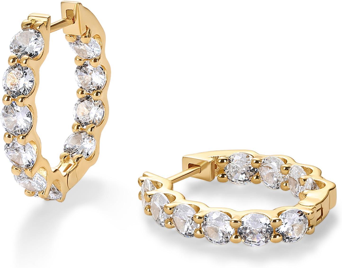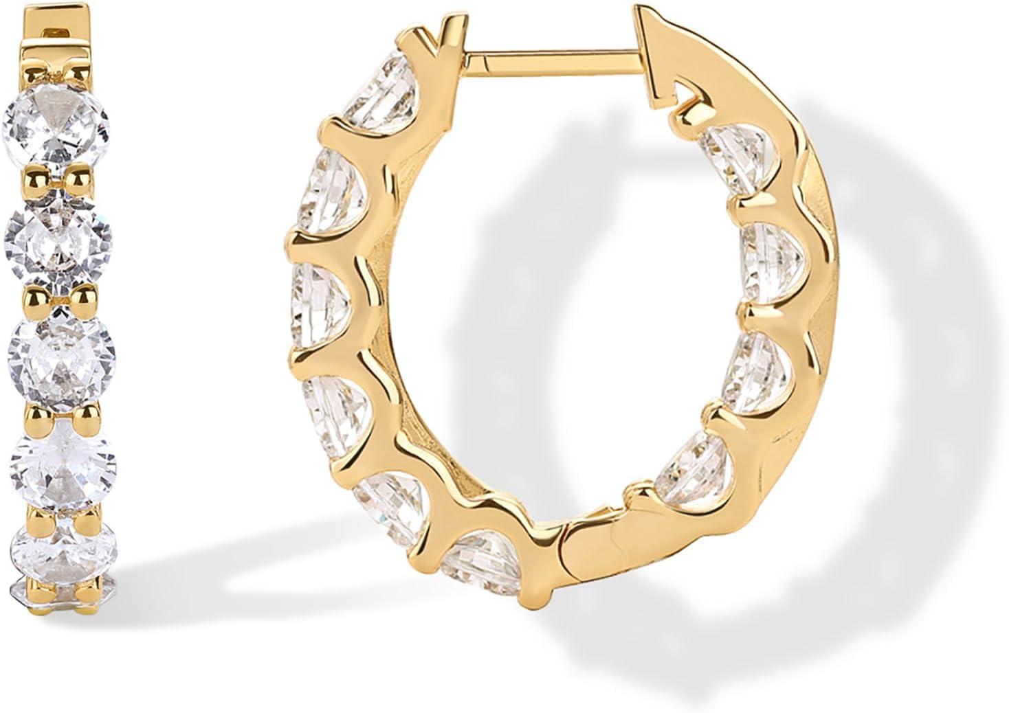 PAVOI 14K Gold Plated Cubic Zirconia Hoop Earrings for Women – Bridal CZ Hoop Earrings with Simulated Diamonds – Inside Out Cubic Zirconia Wedding Jewelry for Brides & Bridesmaids(Yellow Gold)