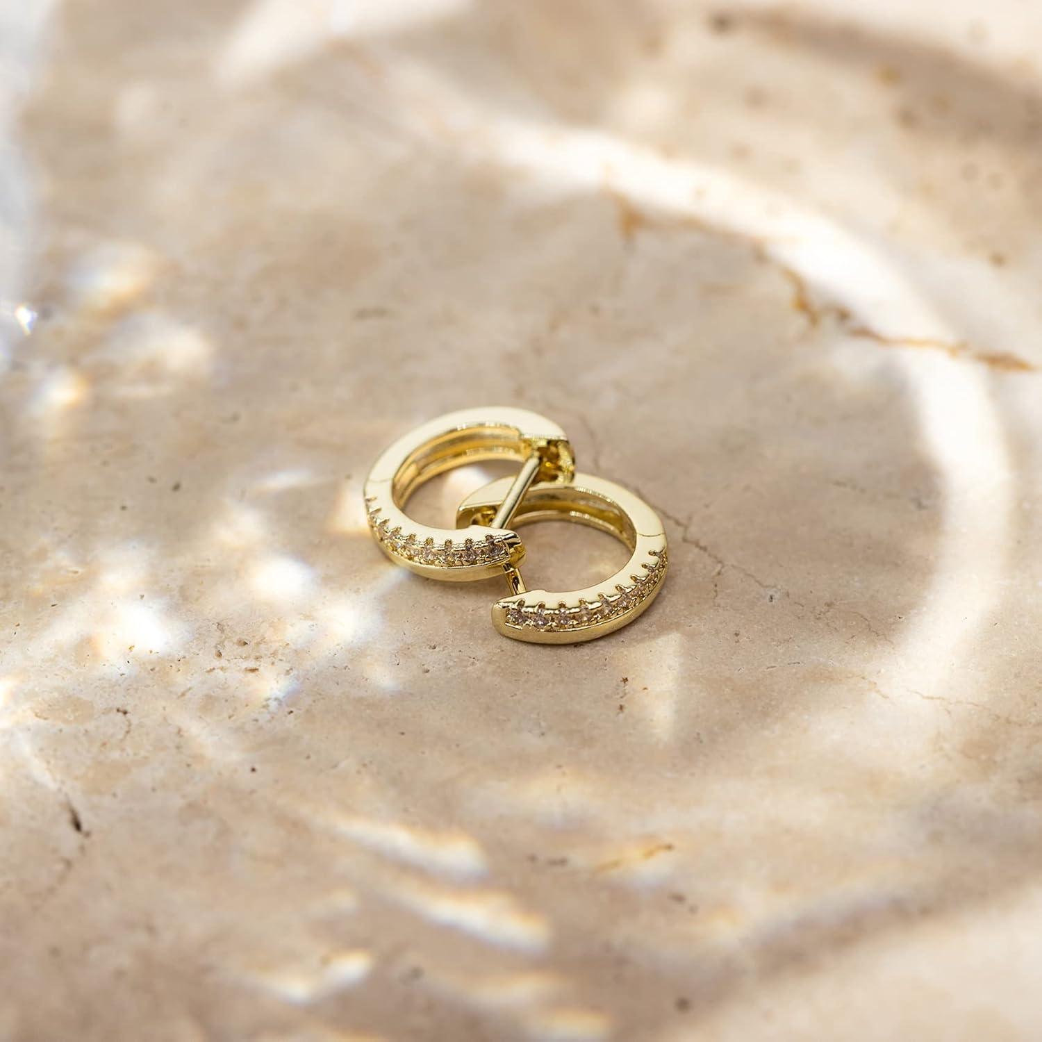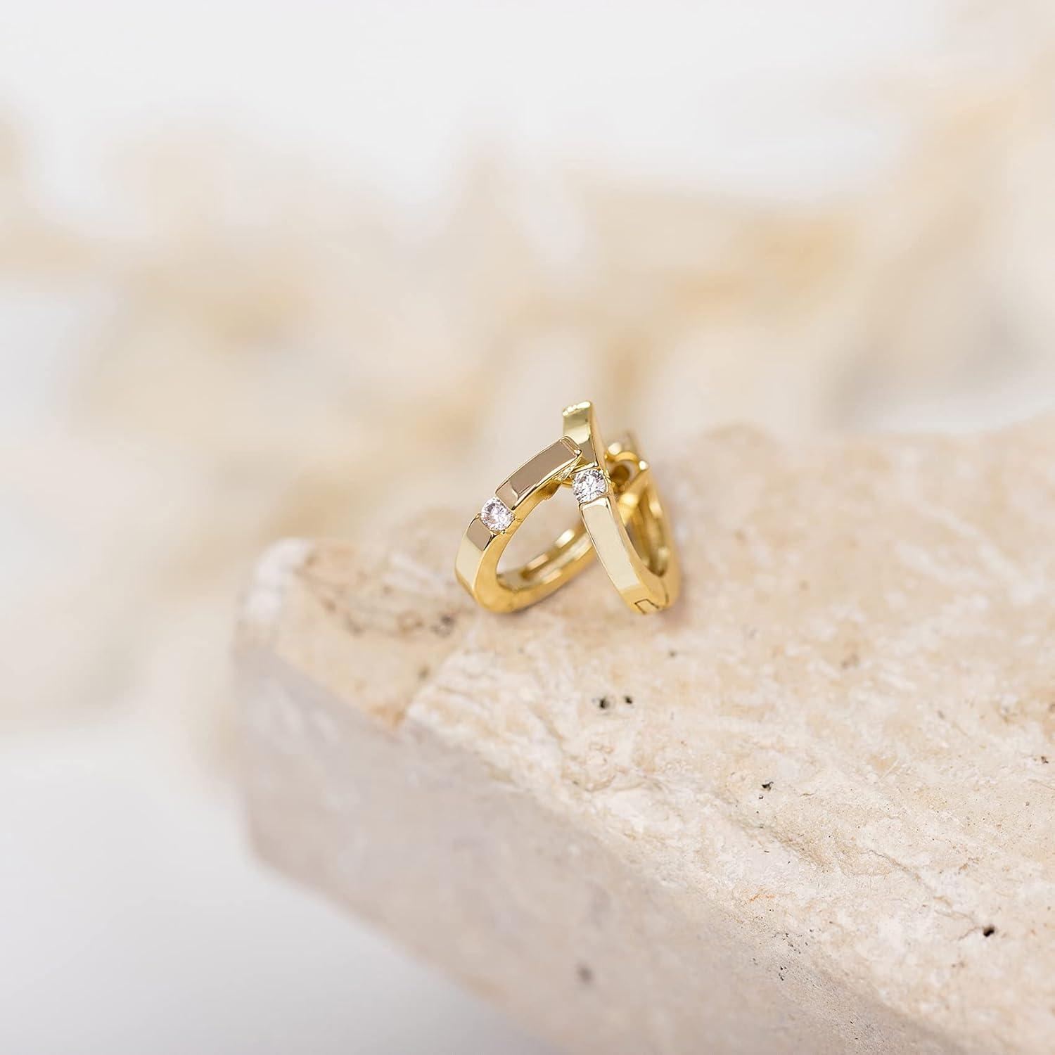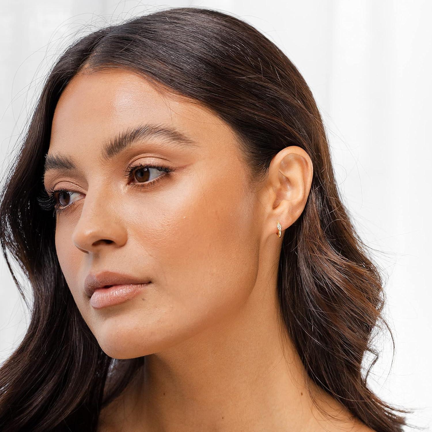 PAVOI 14K Gold Plated 925 sterling silver Post Cubic Zirconia Huggie Earrings | Small Round Huggie Stud Fashion Hoop Earrings for Women in Gold Plating
