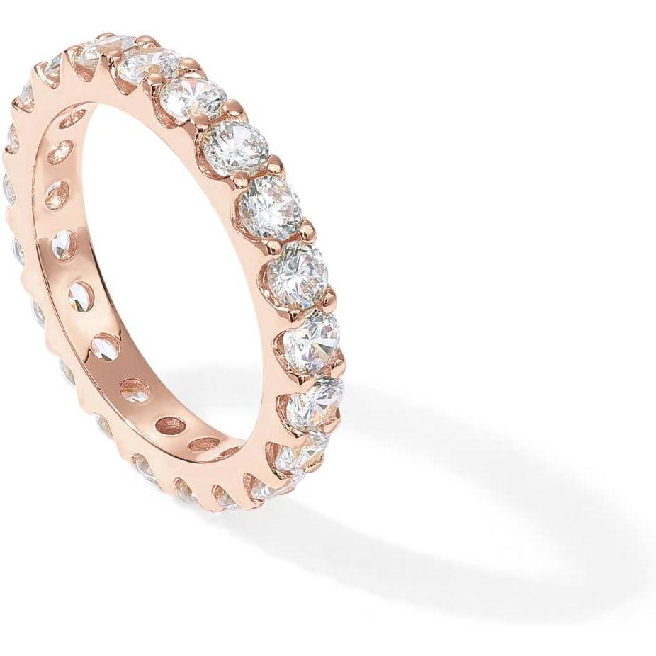 PAVOI 14K Gold Plated Cubic Zirconia Stackable Eternity Ring – 3.0mm Gold Wedding Ring for Women – Fake Promise Band Stacking Jewelry(Rose Gold)