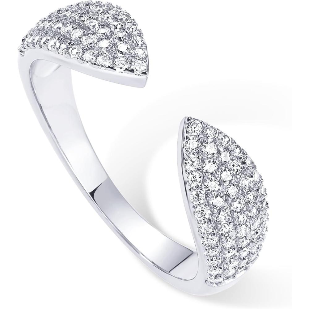 PAVOI 14K Gold Plated Cuff Statement Ring for Women | Cubic Zirconia Eternity Bands | Open Stackable Rings for Women(White Gold)