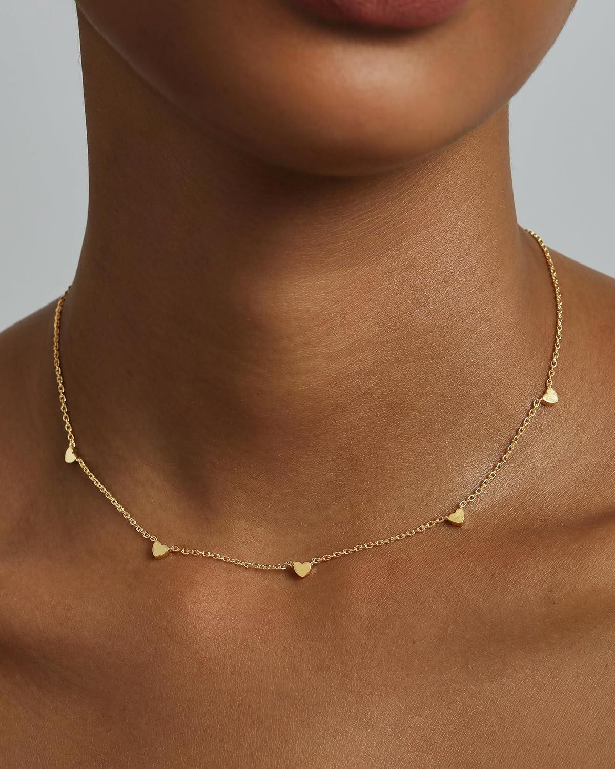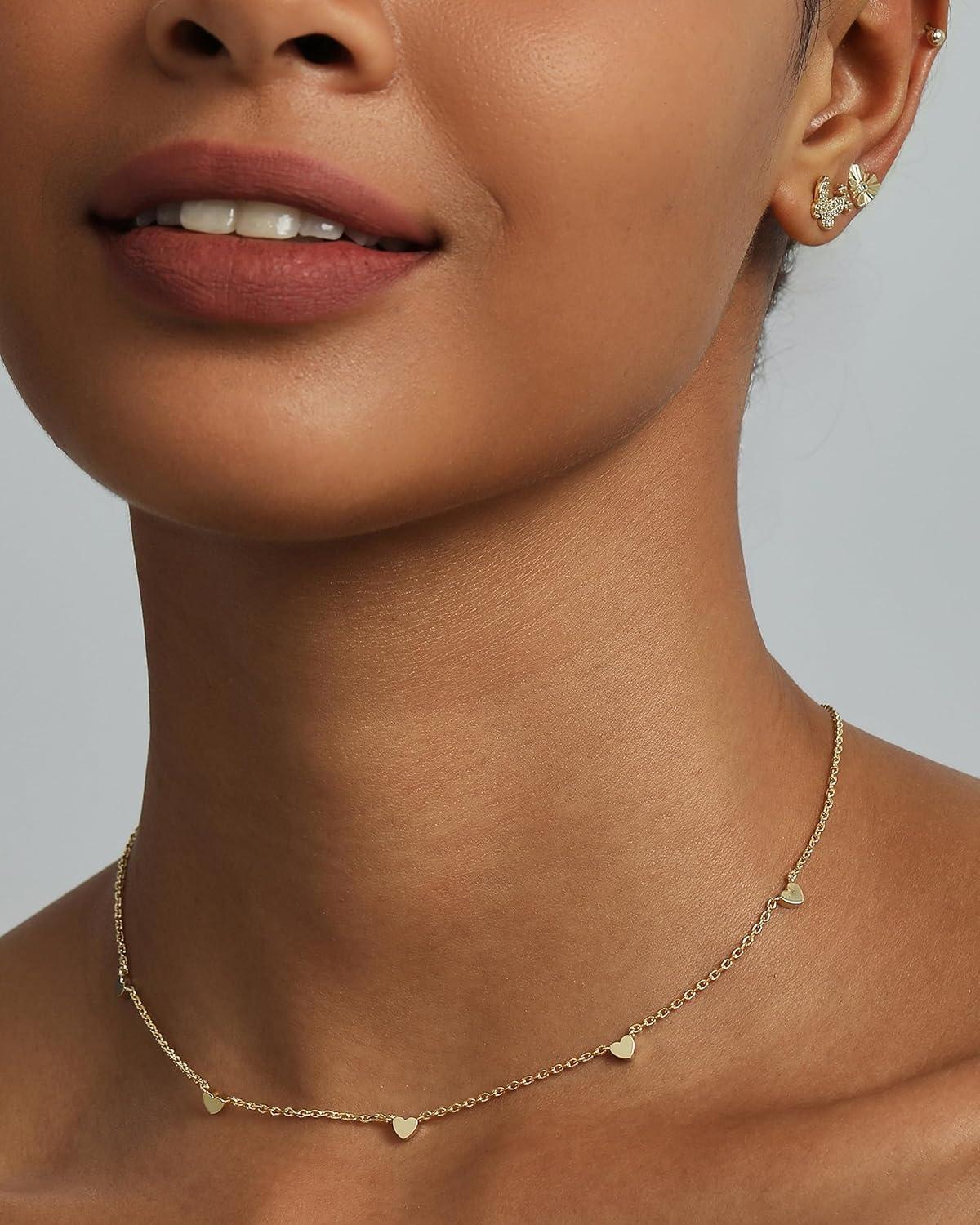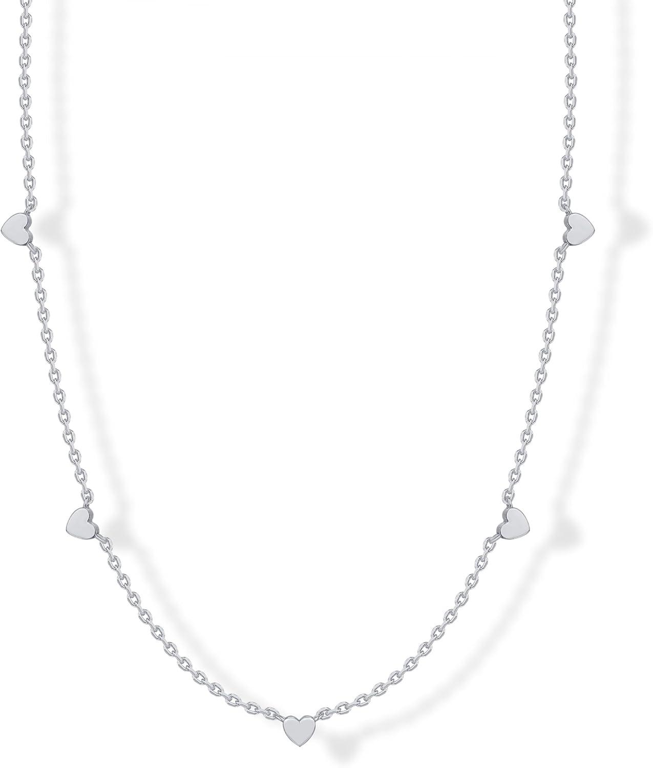 PAVOI 14K Gold Plated Dainty Chain Necklaces for Women – Station Small Motif Pendant Gold Jewelry Gifts – Trendy Heart, Bow, Cross Necklace for Women(White Gold)