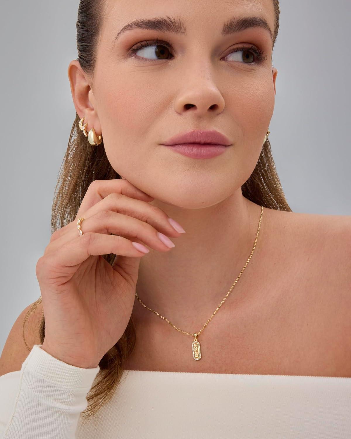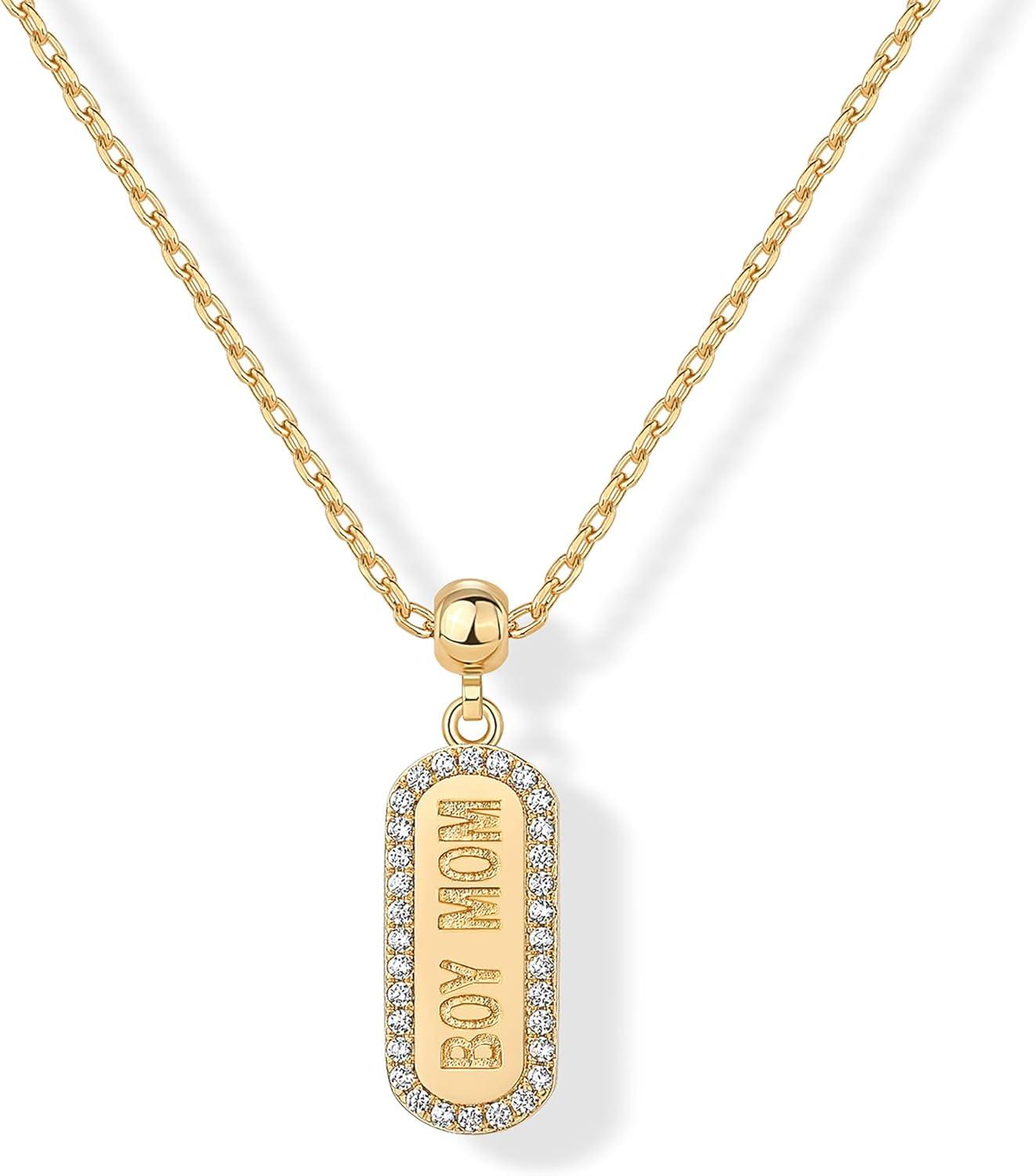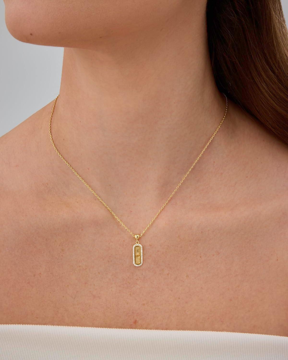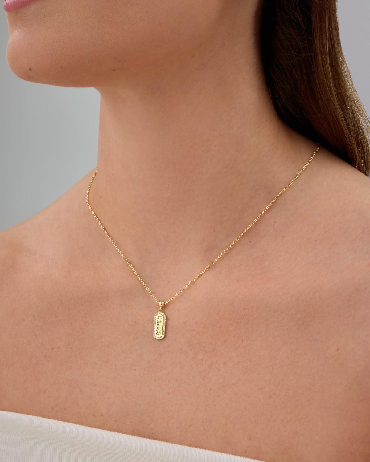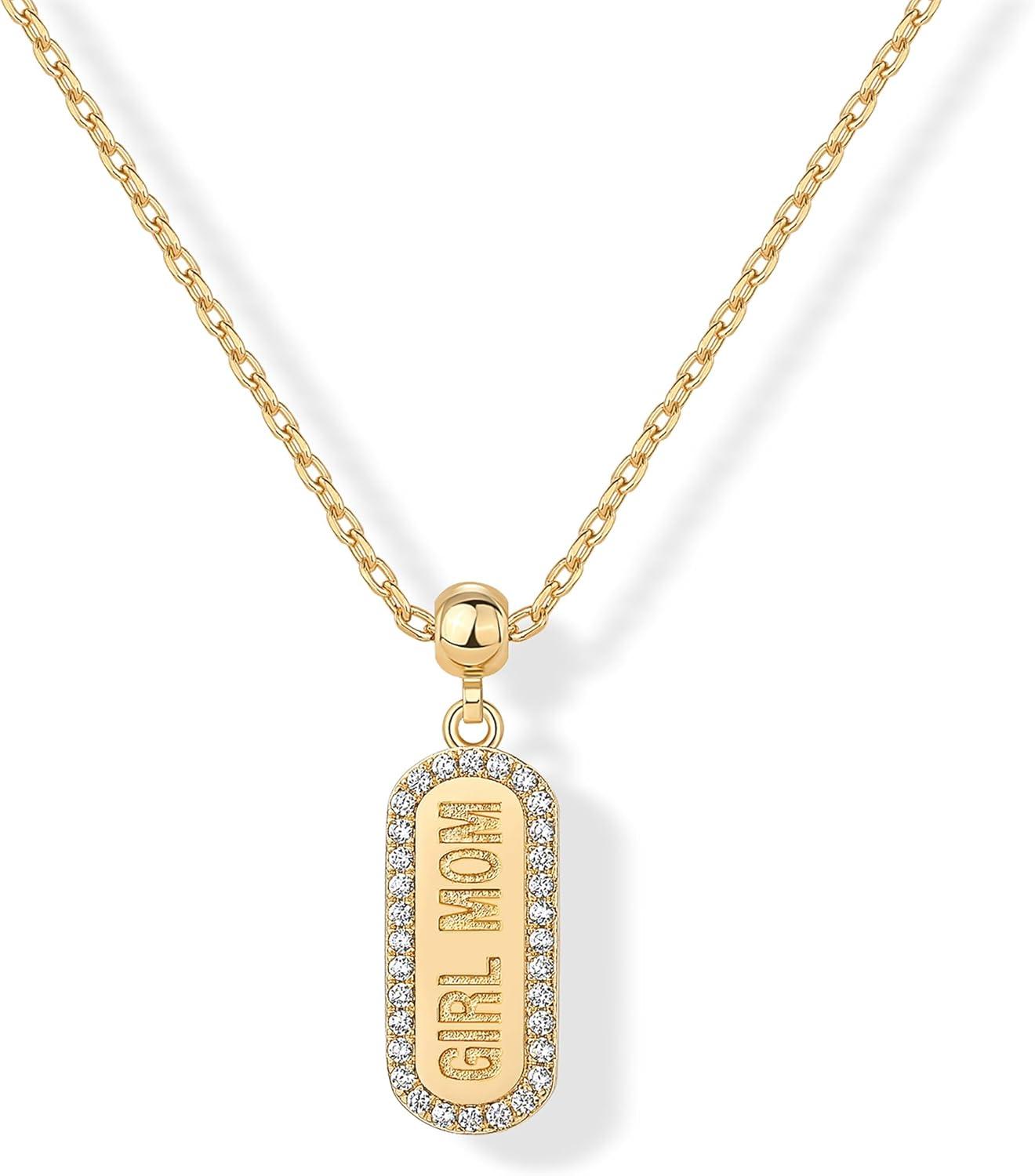 PAVOI 14K Gold Plated Dainty Dog Tag Charm Pendant Mom Necklace for Women – Gold Adjustable Sliding Chain Mama Necklace Jewelry for Mothers Day – Mommy to Be Gift Customizable Removable Charm Pendant(Yellow Gold)