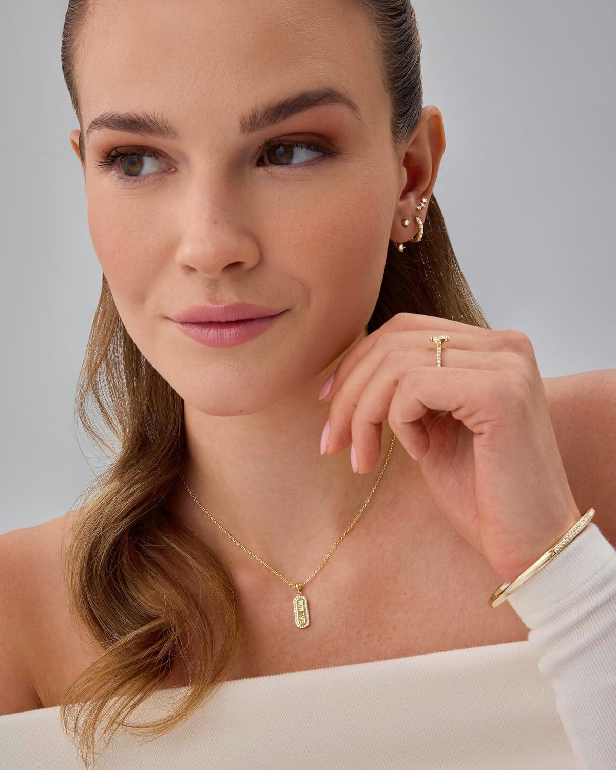 Capture your love for your son in this necklace mom designed to be worn close to the heart. This mama necklace for women features a 14K yellow gold-plated dog tag pendant with premium cubic zirconia accents, adding a touch of elegance to everyday wear. A beautiful reminder of love and connection, it’s one of the best gifts for moms that she’ll treasure forever. Adjustable sliding chain length: 18″ Mom charm: 16mm x 7mm Stone size: 1mm