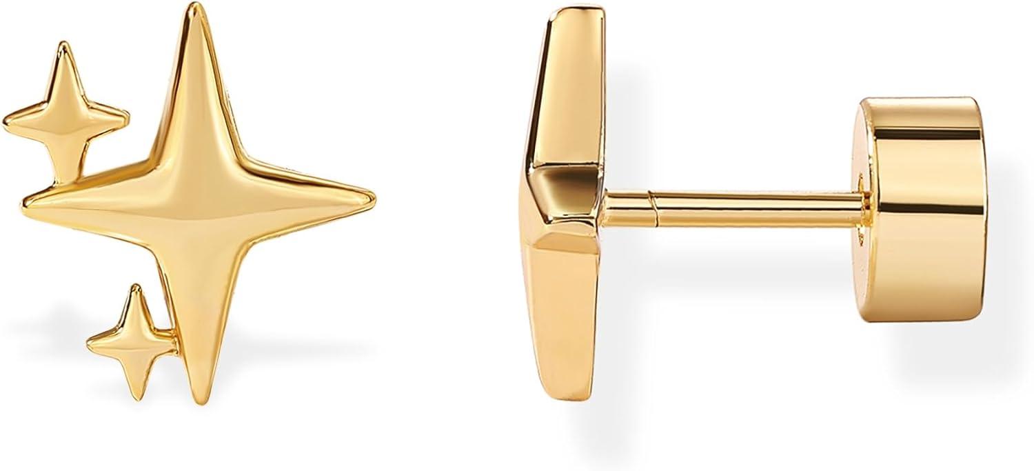 PAVOI 14K Gold Plated Dainty Flat Back Earrings for Women – Hypoallergenic 925 Sterling Silver Posts Helix Cartilage Piercing Jewelry – Emoji Motif Bow Celestial Flatback Gold Stud Earrings Screw Back(Sparkle)