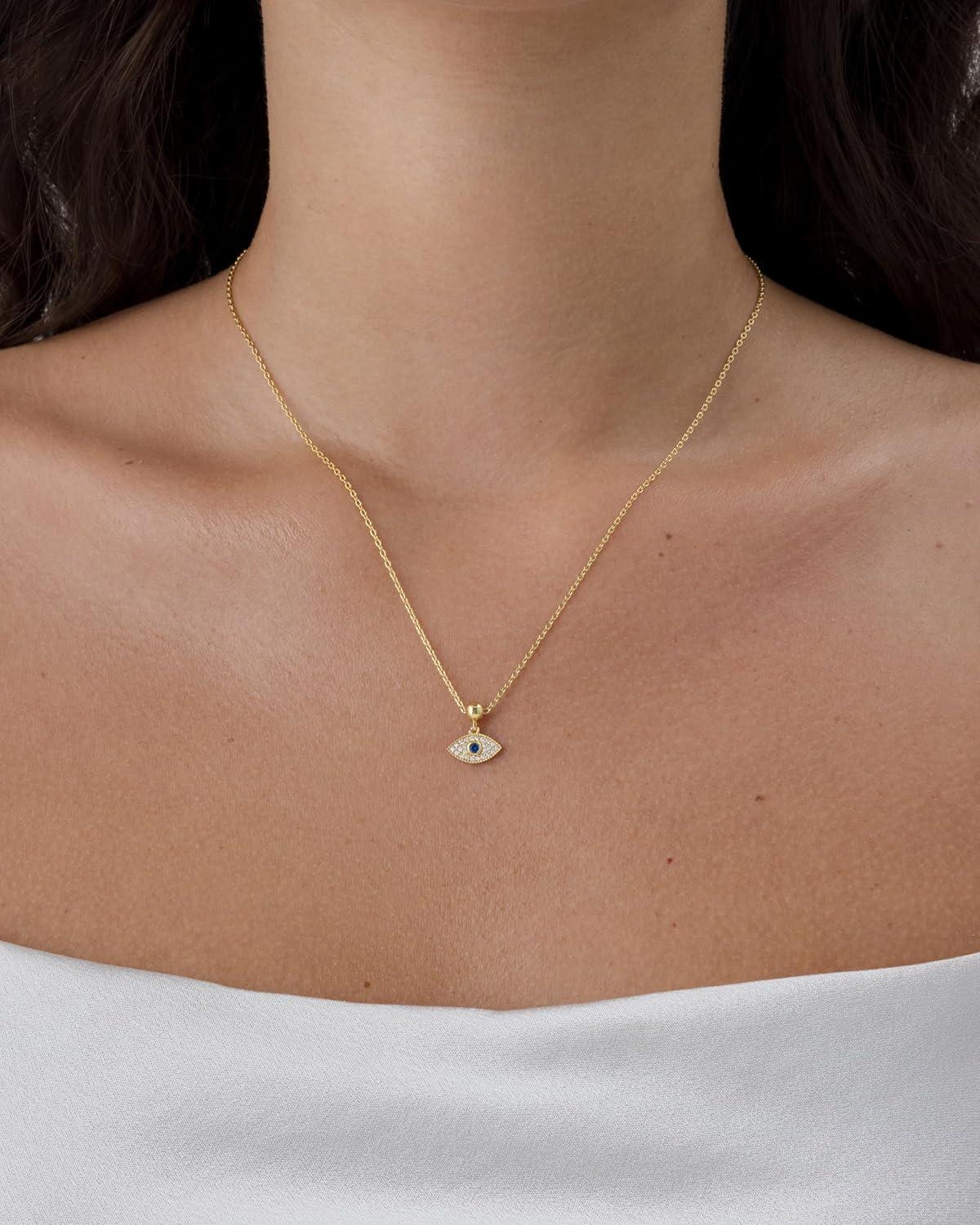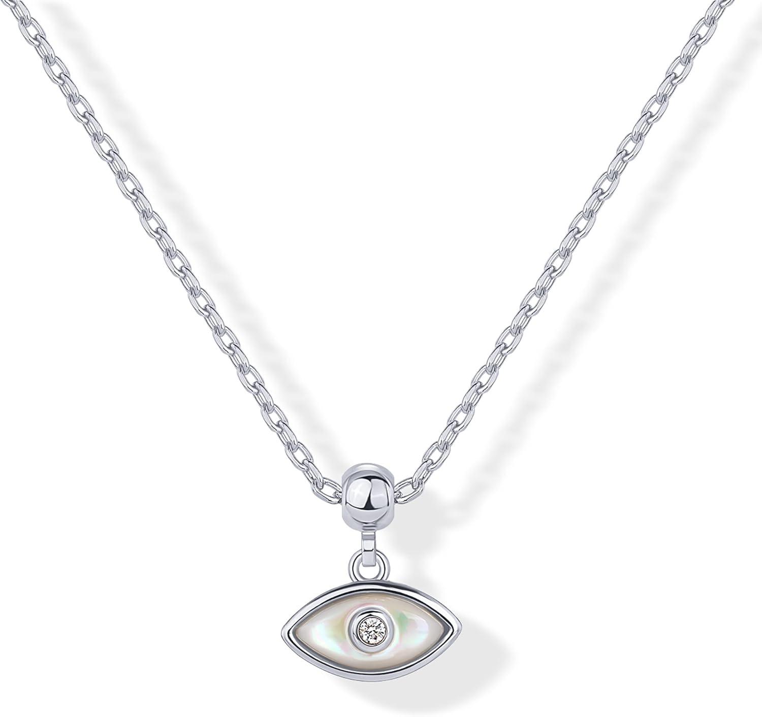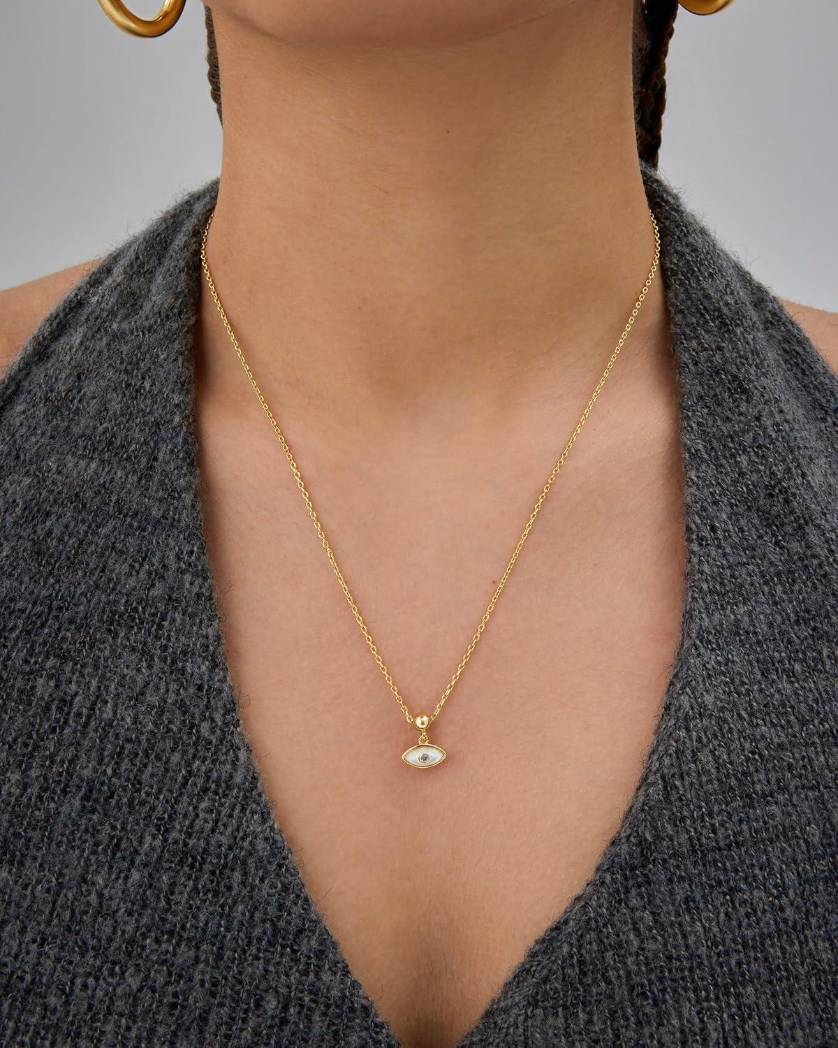 PAVOI 14K Gold Plated Dainty Necklace with Charms – Adjustable Chain Gold Charm Necklace for Women – Small Motif Removable Pendants – Cute Evil Eye, Flower, Cornicello, Sports, Religious Jewelry Gifts(White Gold)