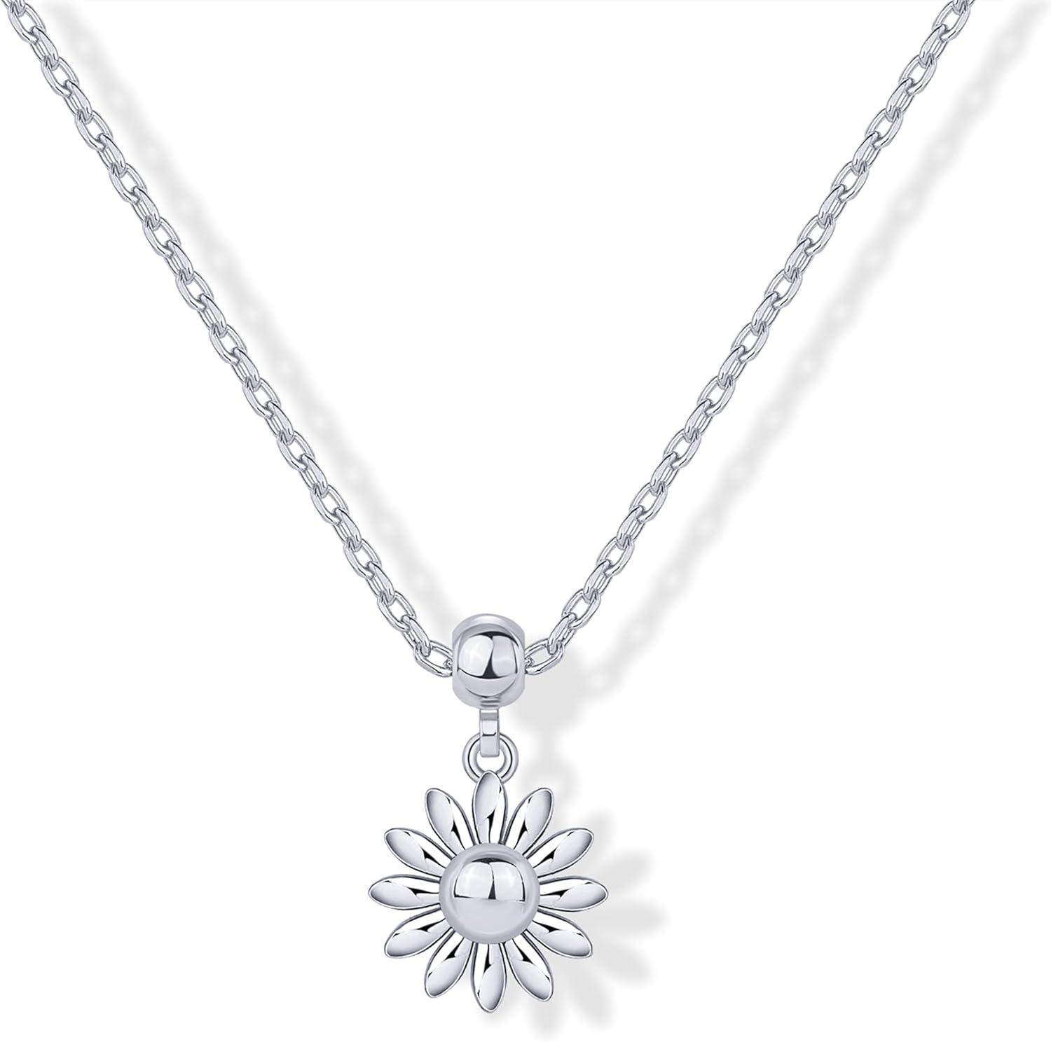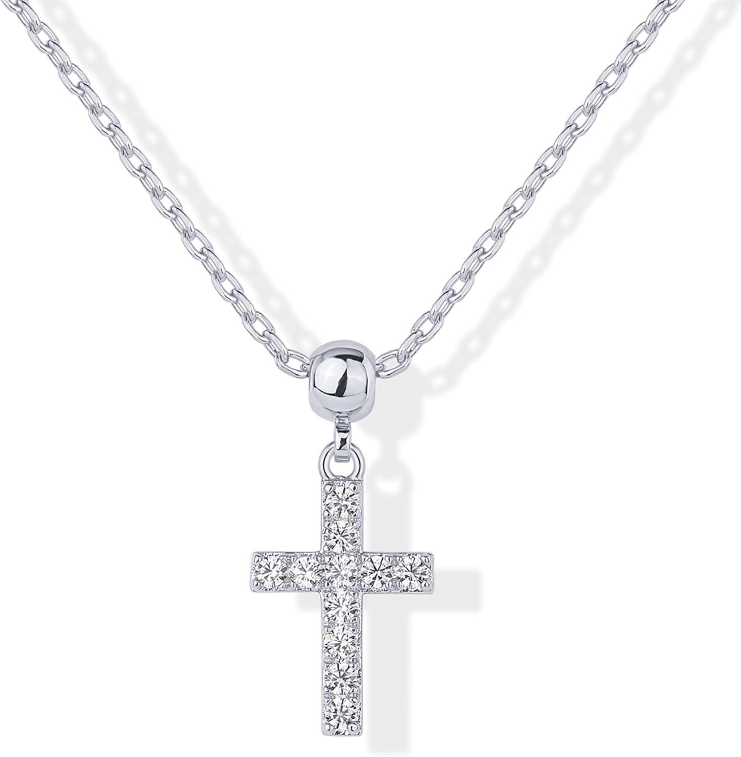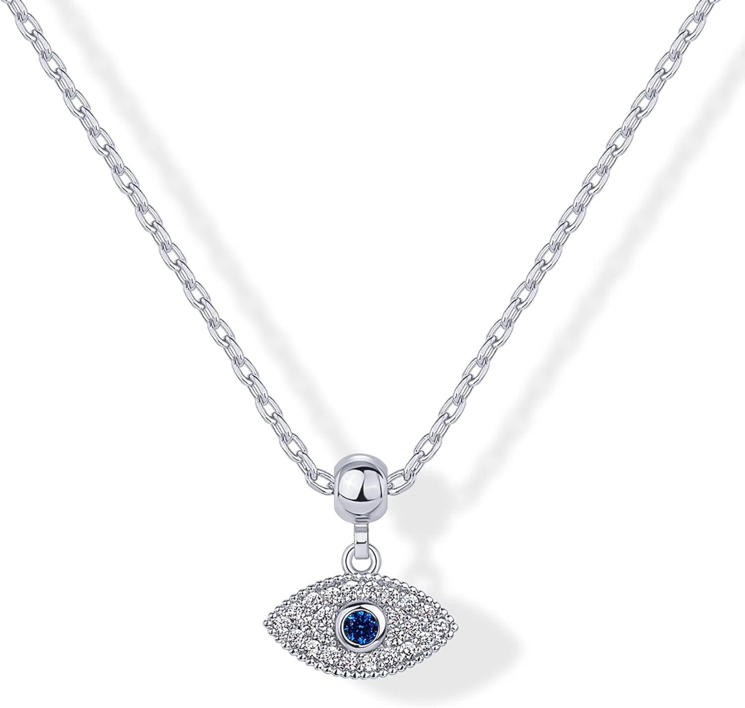 PAVOI 14K Gold Plated Dainty Necklace with Charms – Adjustable Chain Gold Charm Necklace for Women – Small Motif Removable Pendants – Cute Evil Eye, Flower, Cornicello, Sports, Religious Jewelry Gifts(White Gold)