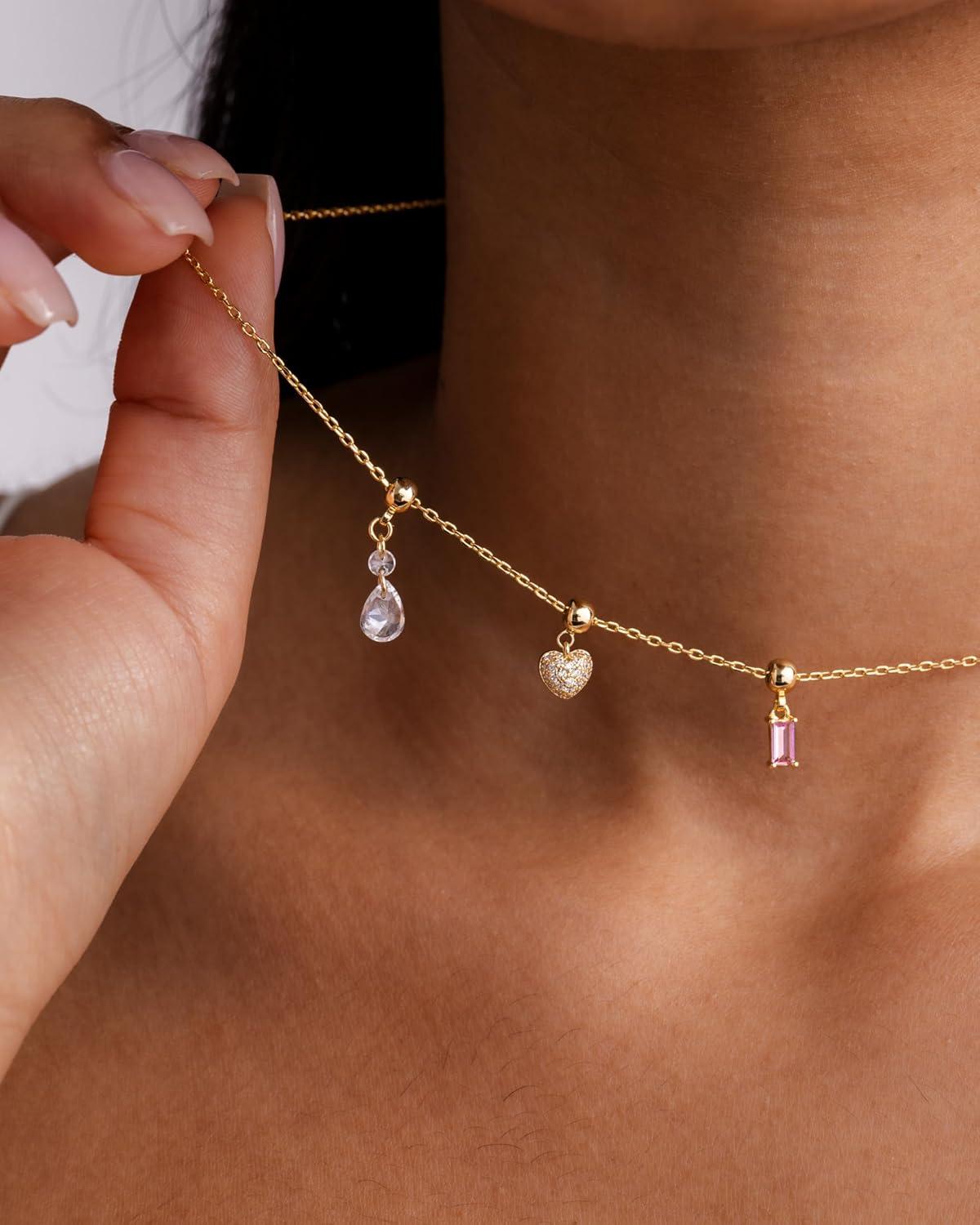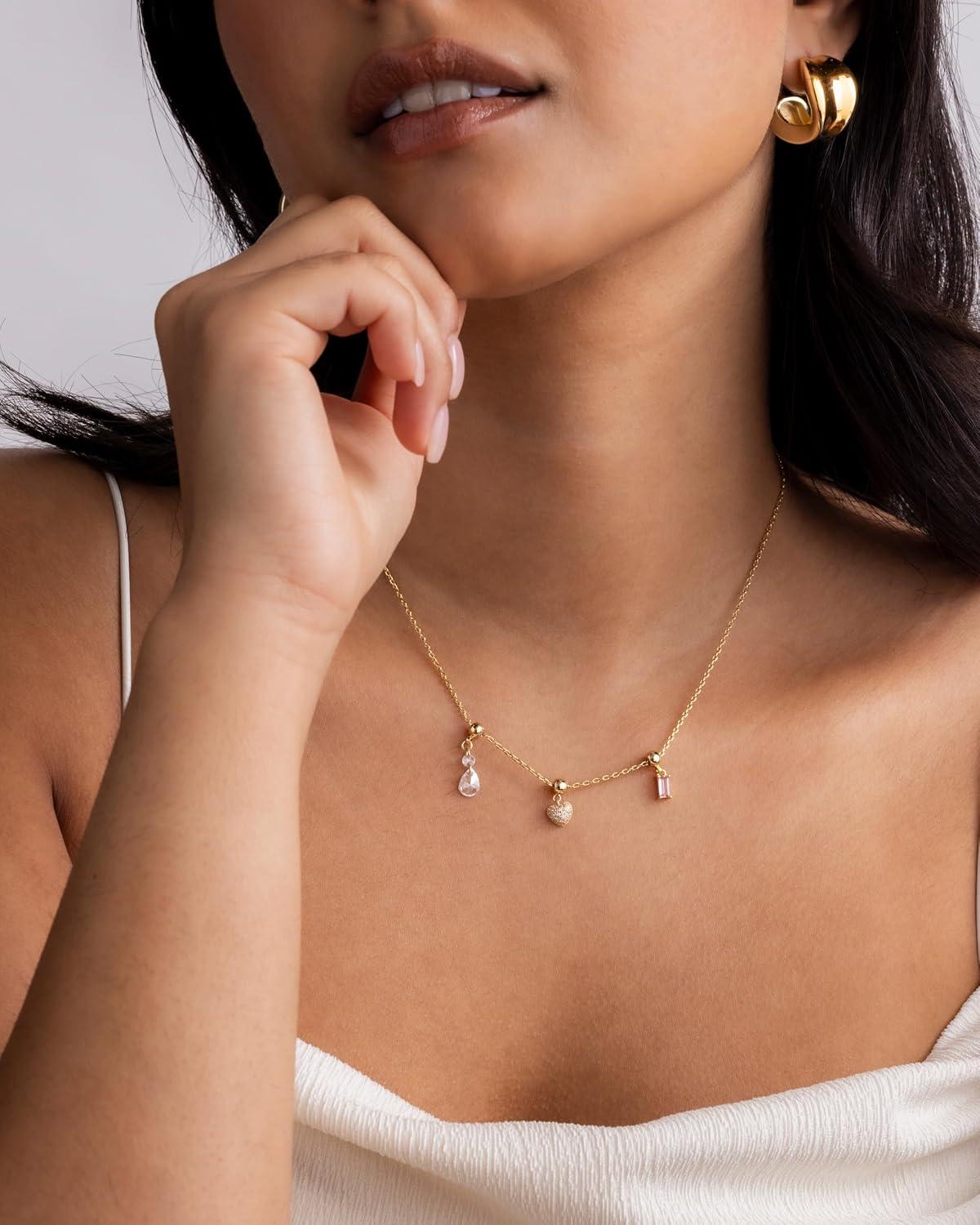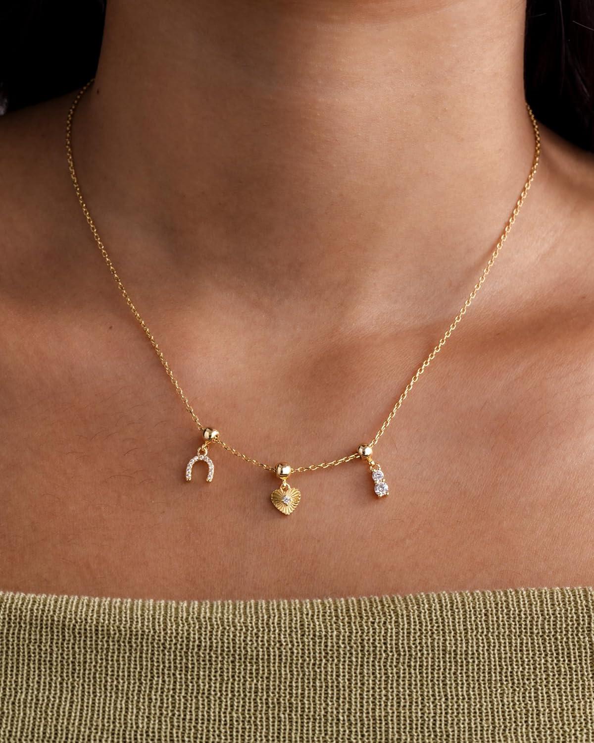 Elevate your everyday style with these irresistible gold necklace charms that are about to become your new accessory obsession! Our dainty and chunky charm necklaces for women blend trendy design with versatile wearability, perfect for beach days, summer adventures, or adding a touch of sparkle to your everyday look. Crafted with care, this dainty gold charm necklace features a hypoallergenic adjustable chain that ensures both comfort and style. The carefully curated cubic zirconia pendant brings a luxurious shine that catches the light and turns heads, making it the ultimate women's charm necklace gold enthusiasts will adore. Whether you're craving a coastal charm necklace vibe or looking for a charms necklace that speaks to your unique personality, this piece delivers. From shell charm necklace elements to heart and religious-inspired pendants, each charm tells a story. Mix and match these gold charms for necklaces to create a look that's entirely your own. Express yourself without saying a word with this beachy charm necklace that's equal parts dainty and cute. It's not just a necklace – it's a statement. Ideal for layering or wearing solo, this summer charm necklace will quickly become your go-to accessory for any occasion. Don't settle for ordinary. Embrace the extraordinary with a necklace charms gold collection that's as unique and dynamic as you are. Your perfect accessory adventure starts here!
