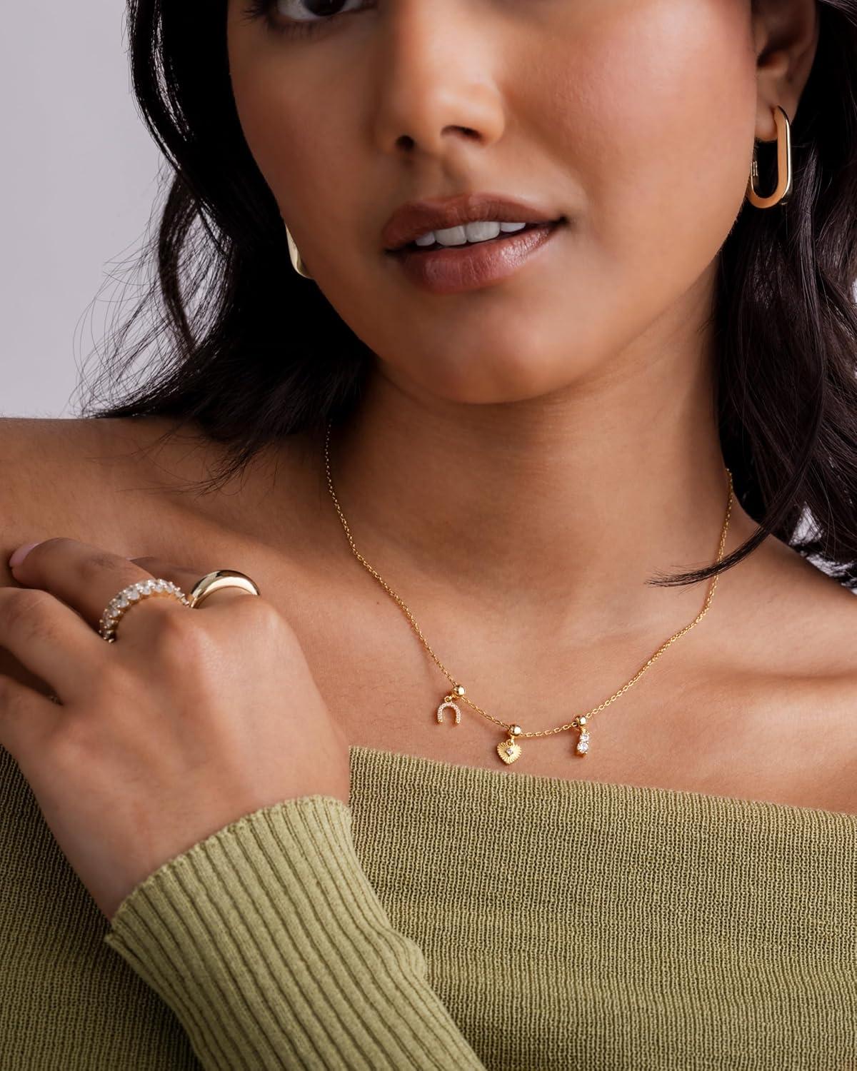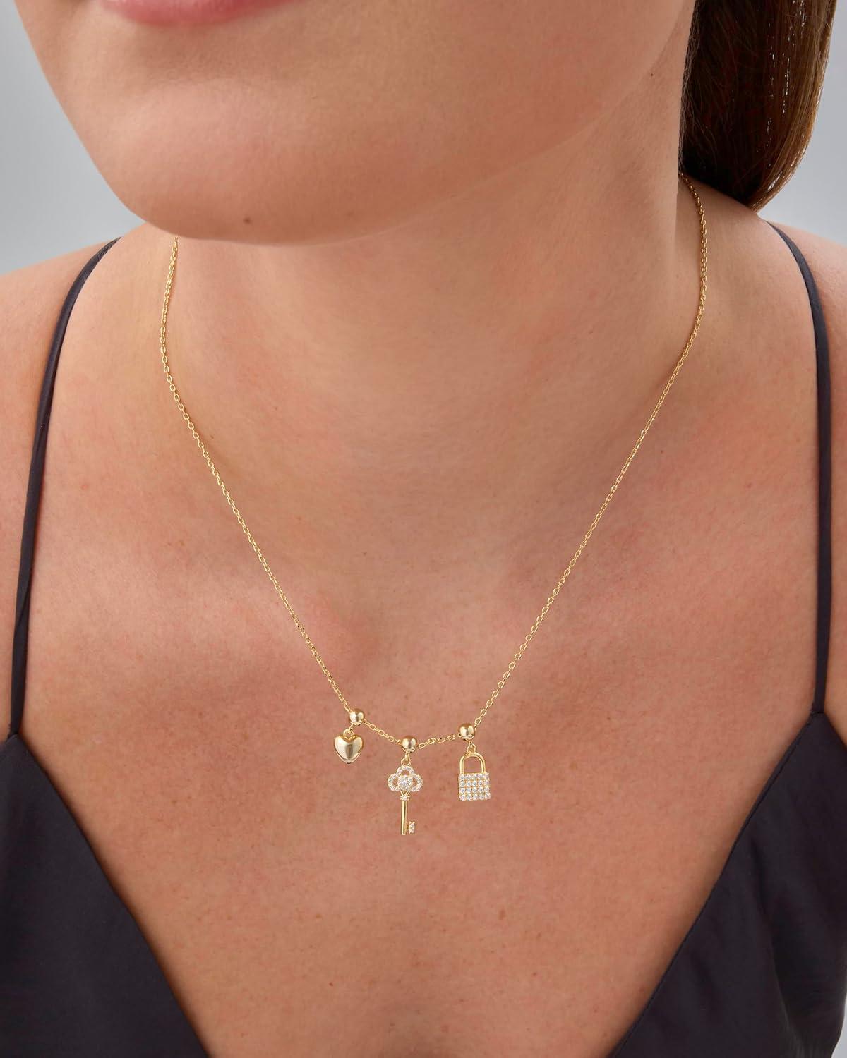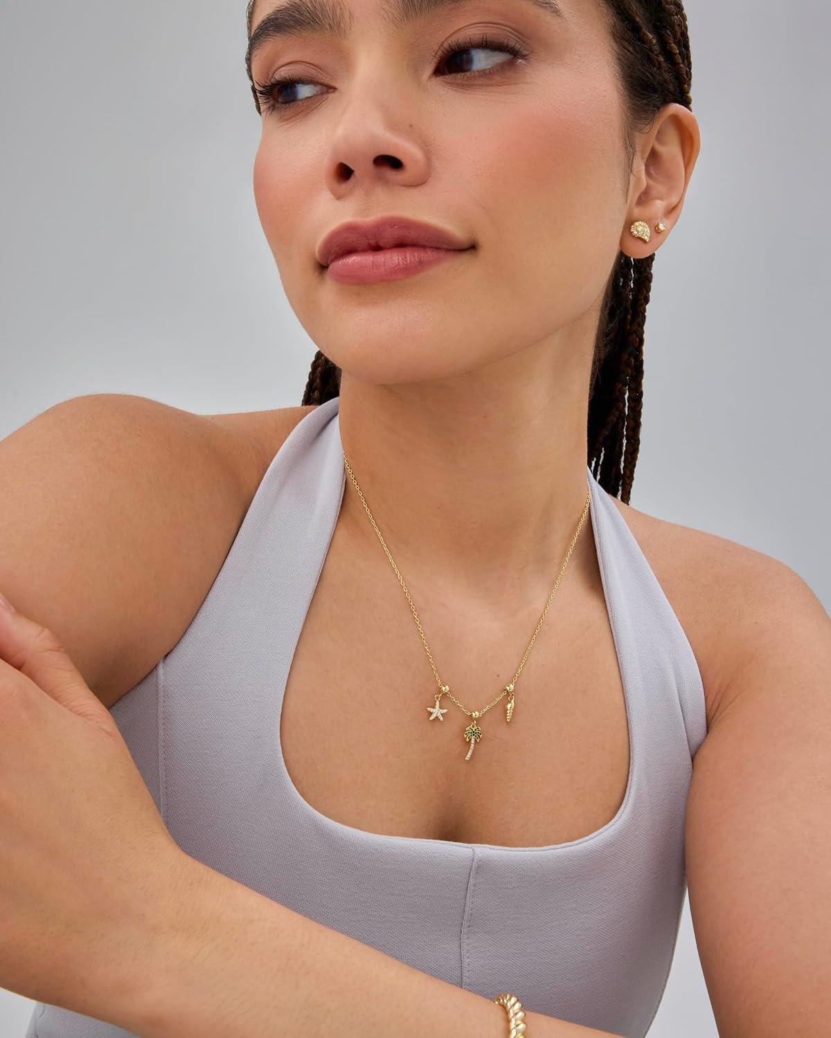 Elevate your everyday style with these irresistible gold necklace charms that are about to become your new accessory obsession! Our dainty and chunky charm necklaces for women blend trendy design with versatile wearability, perfect for beach days, summer adventures, or adding a touch of sparkle to your everyday look. Crafted with care, this dainty gold charm necklace features a hypoallergenic adjustable chain that ensures both comfort and style. The carefully curated cubic zirconia pendant brings a luxurious shine that catches the light and turns heads, making it the ultimate women's charm necklace gold enthusiasts will adore. Whether you're craving a coastal charm necklace vibe or looking for a charms necklace that speaks to your unique personality, this piece delivers. From shell charm necklace elements to heart and religious-inspired pendants, each charm tells a story. Mix and match these gold charms for necklaces to create a look that's entirely your own. Express yourself without saying a word with this beachy charm necklace that's equal parts dainty and cute. It's not just a necklace – it's a statement. Ideal for layering or wearing solo, this summer charm necklace will quickly become your go-to accessory for any occasion. Don't settle for ordinary. Embrace the extraordinary with a necklace charms gold collection that's as unique and dynamic as you are. Your perfect accessory adventure starts here!