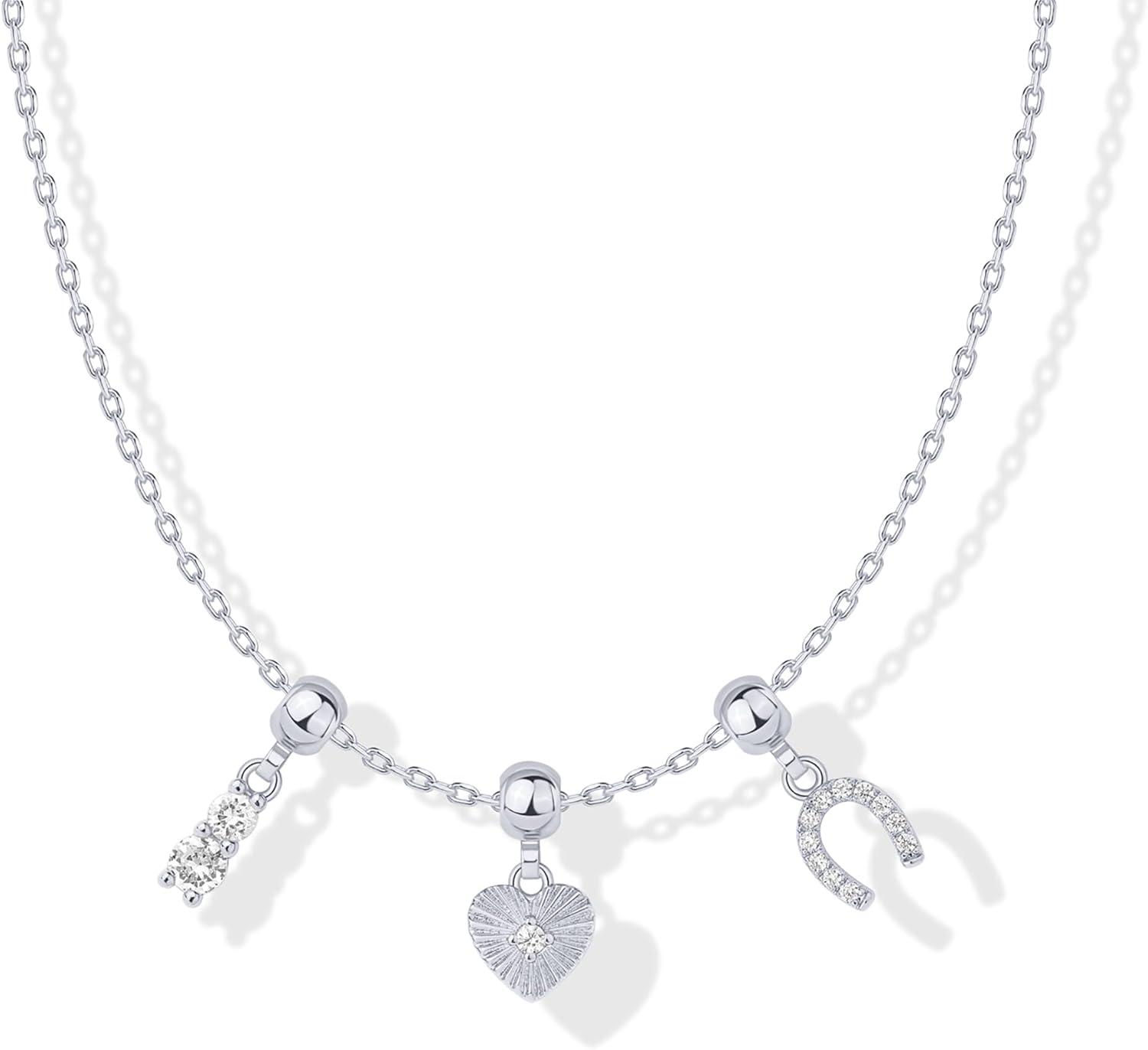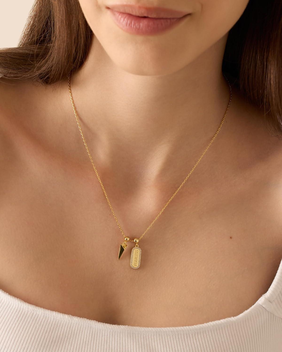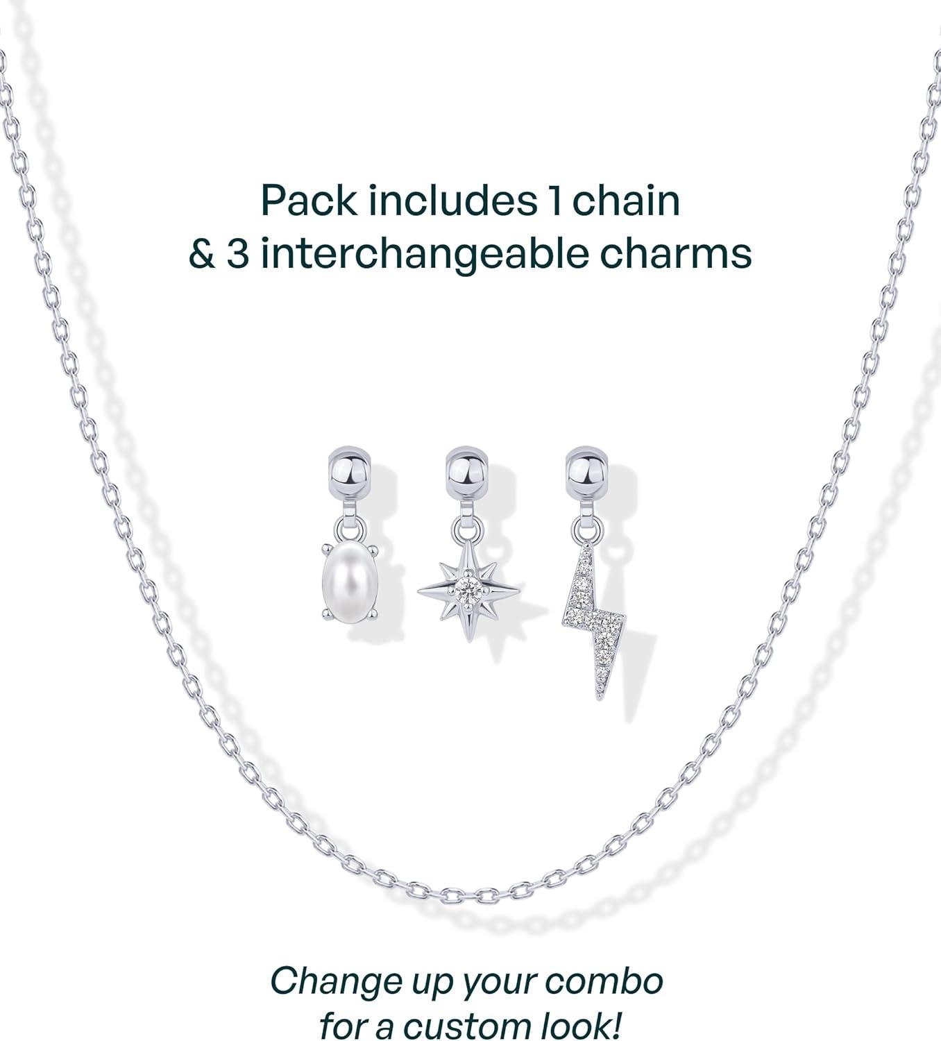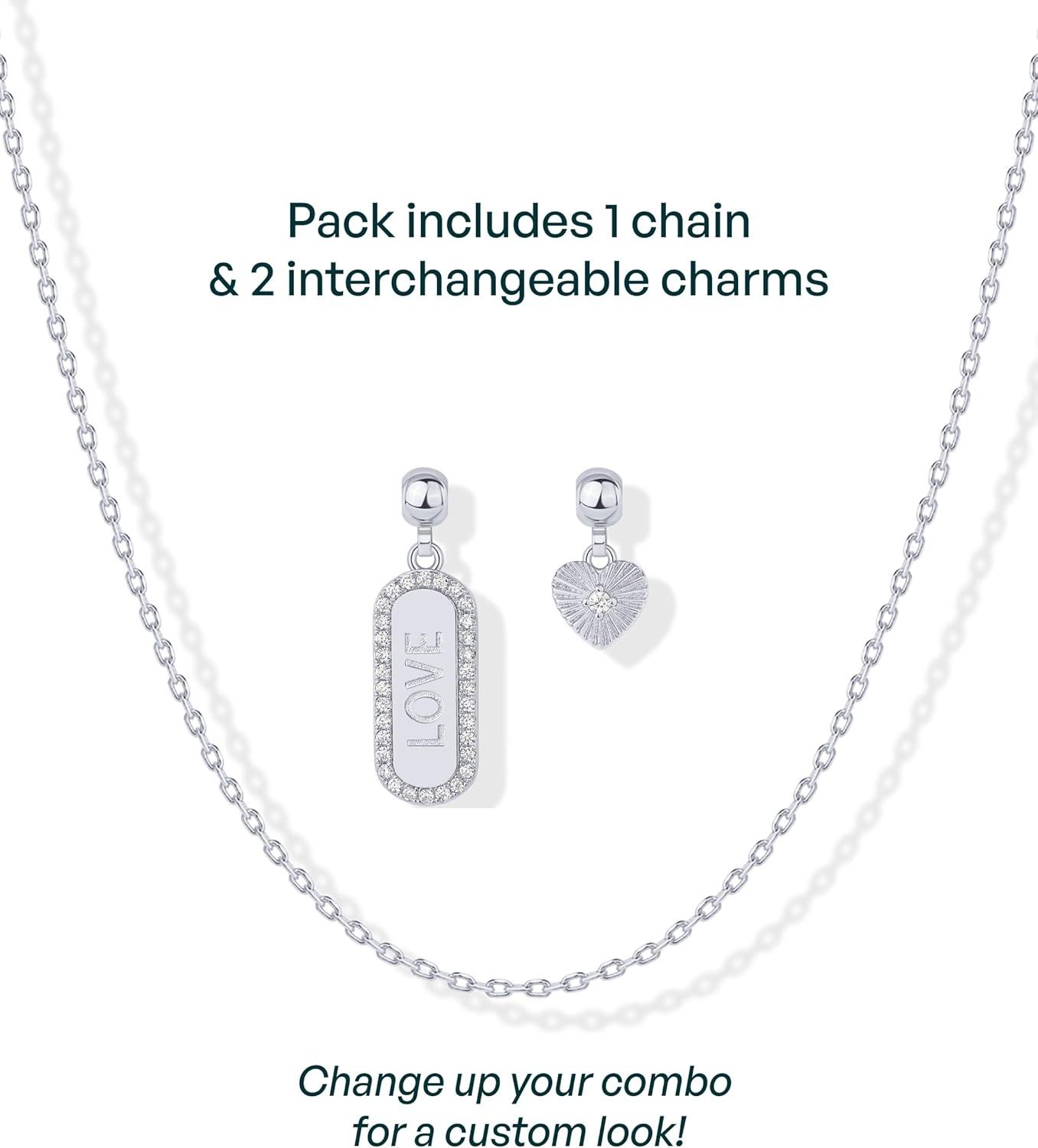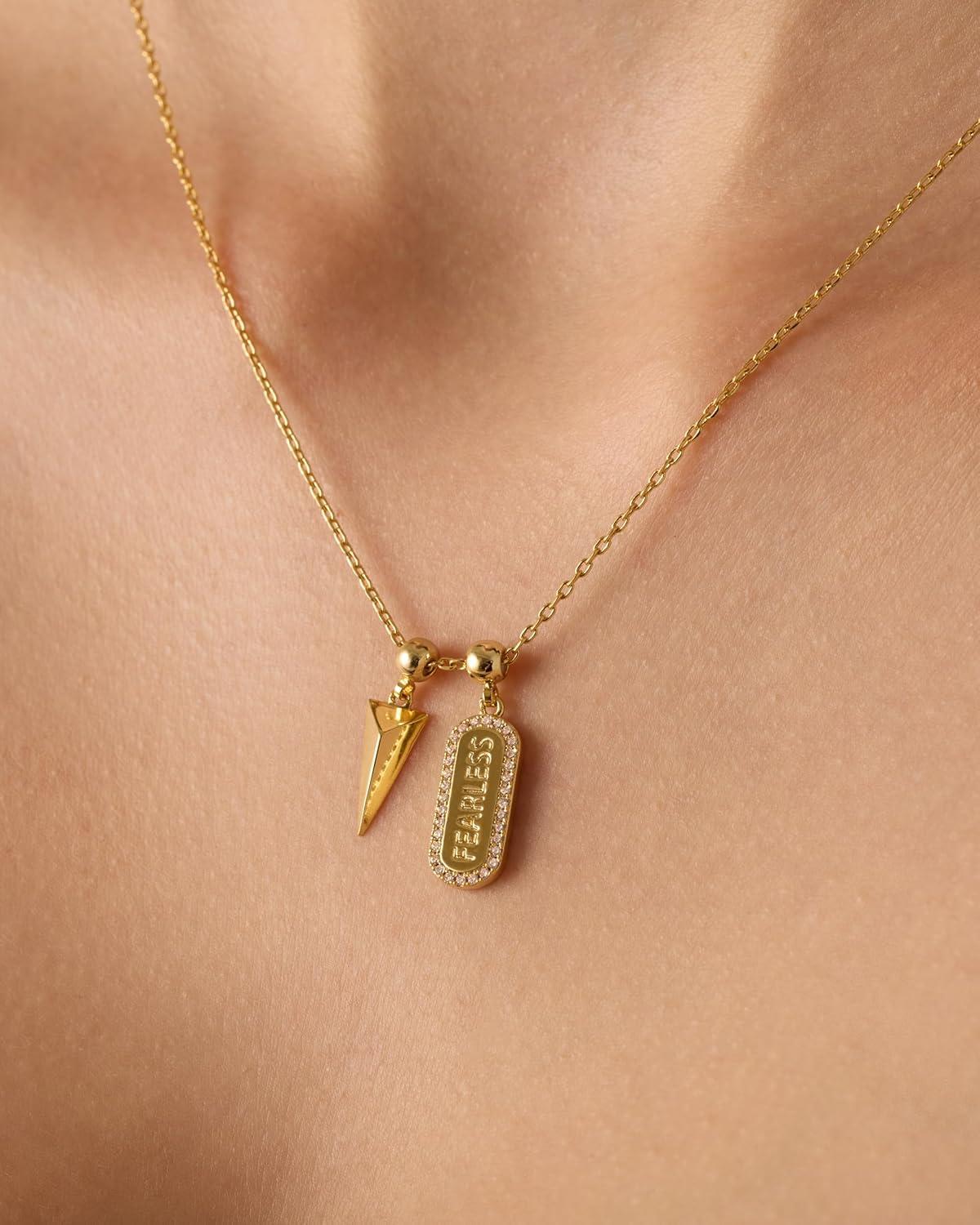 PAVOI 14K Gold Plated Dainty Necklace with Charms Set – Hypoallergenic Adjustable Chain Gold Charm Necklace for Women – Small Motif & Mantra 2 and 3-Pack Removable Pendants – Cute Jewelry Gifts(White Gold)