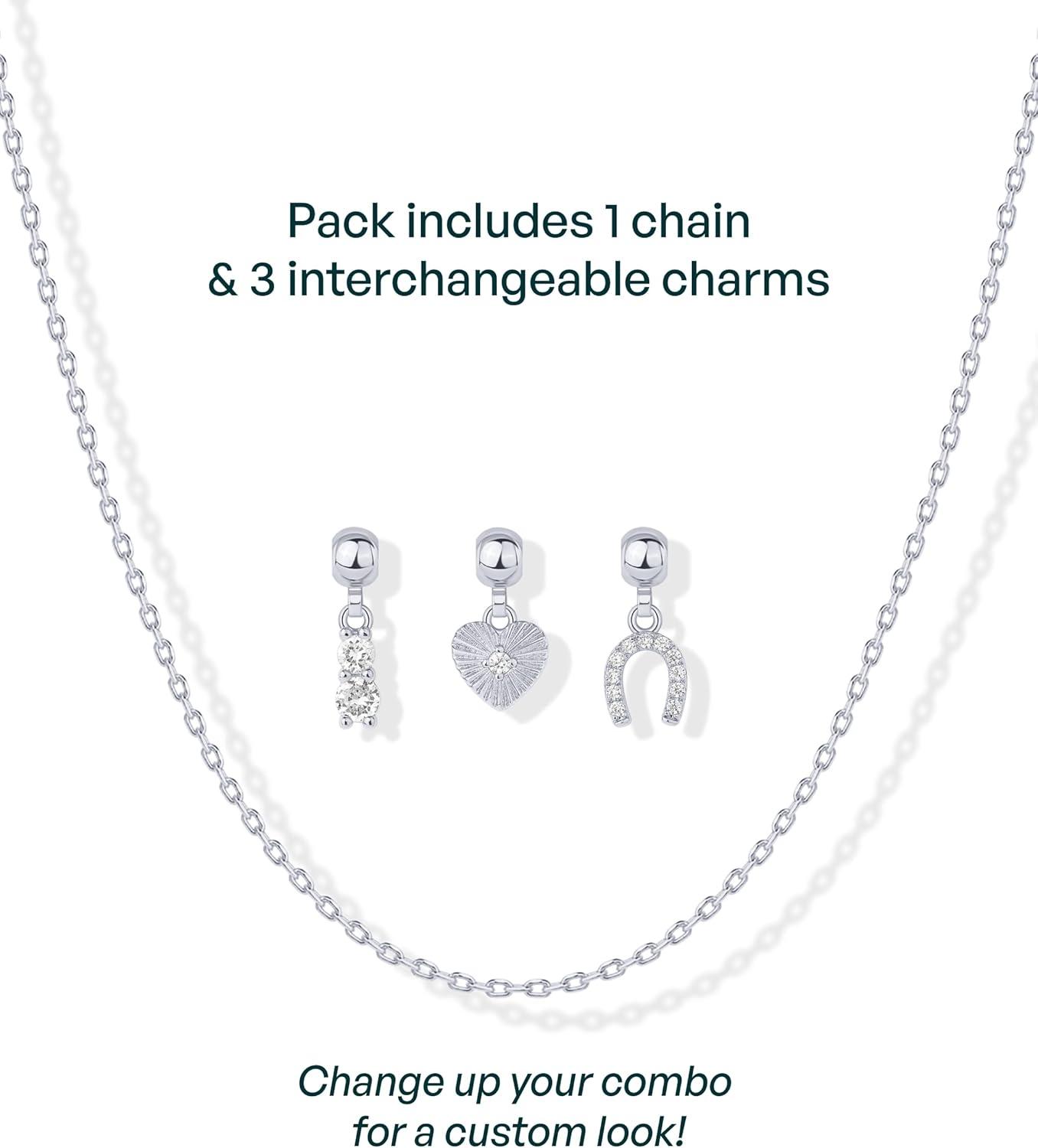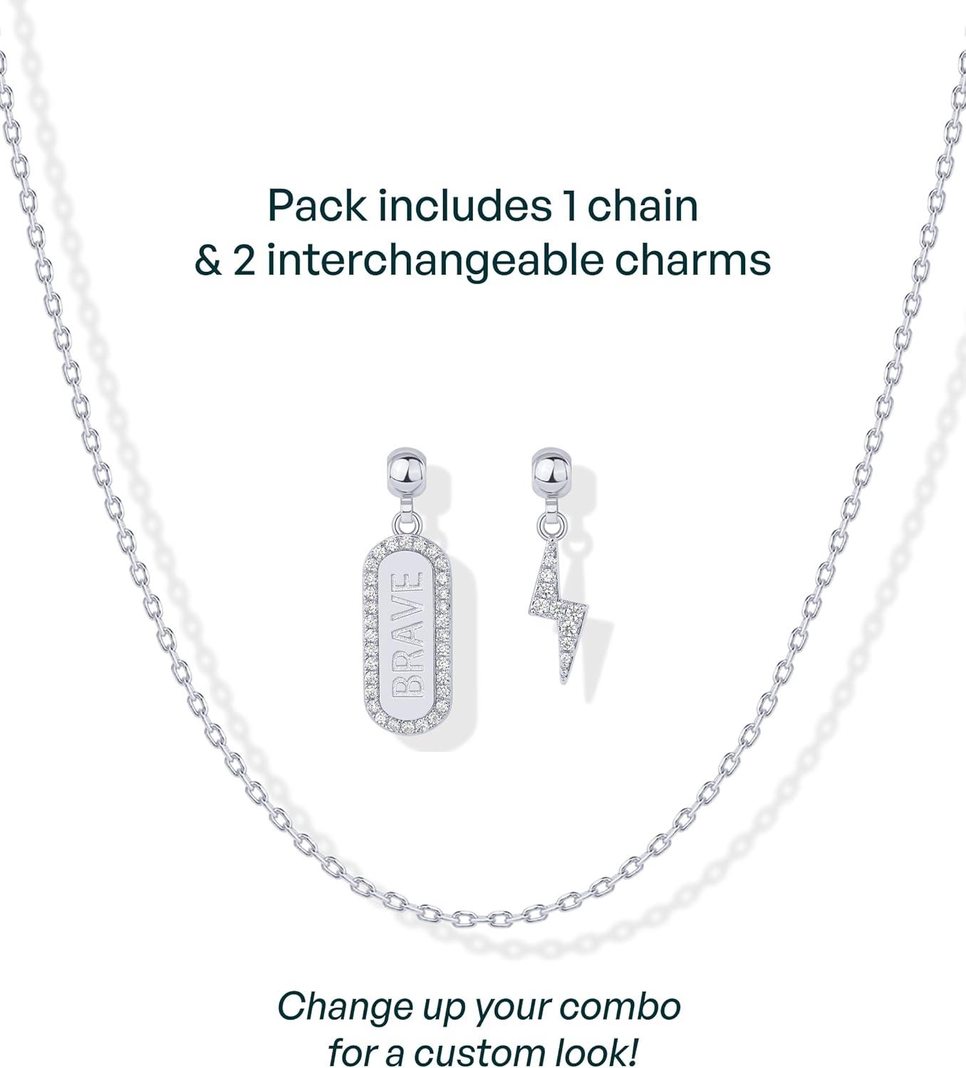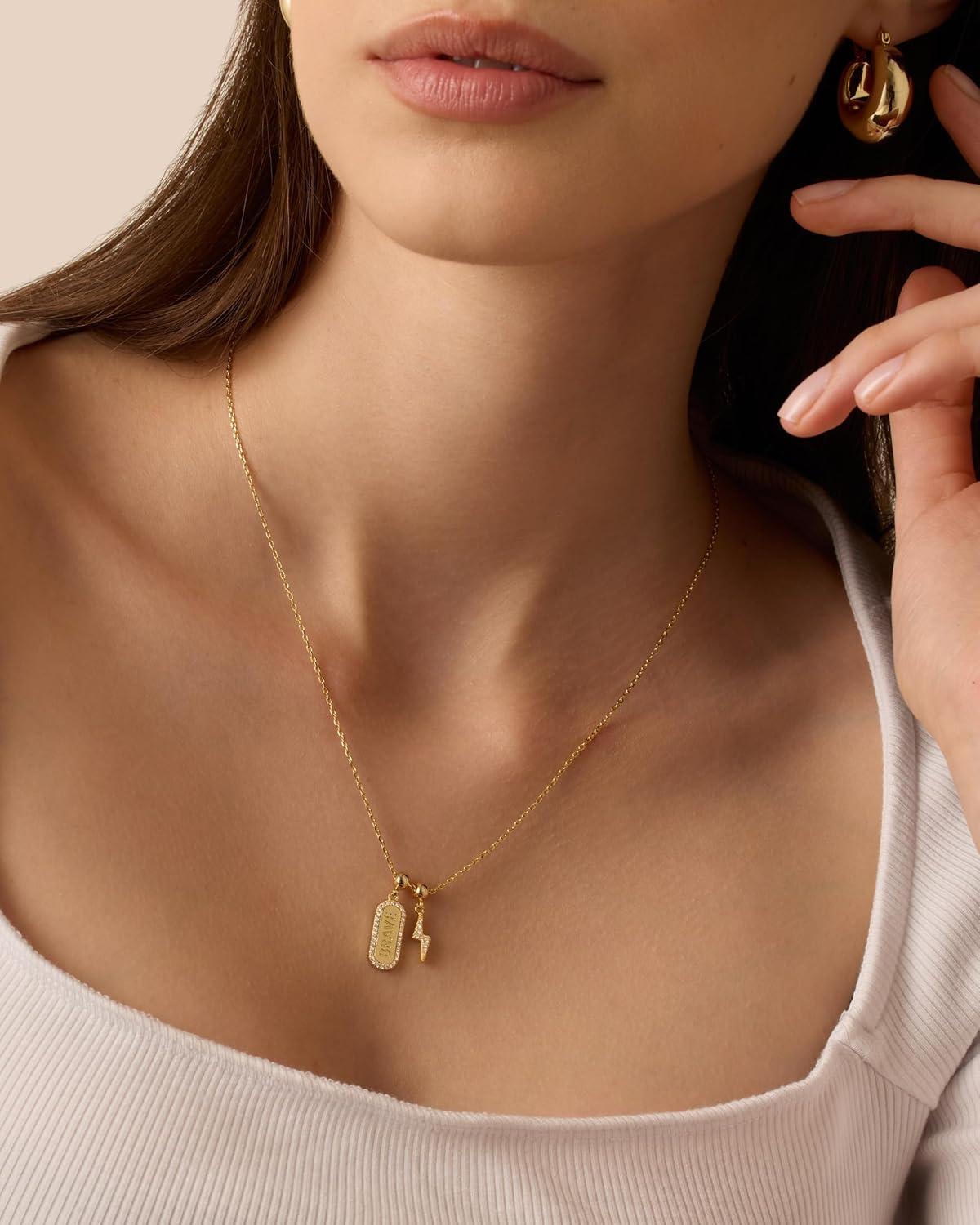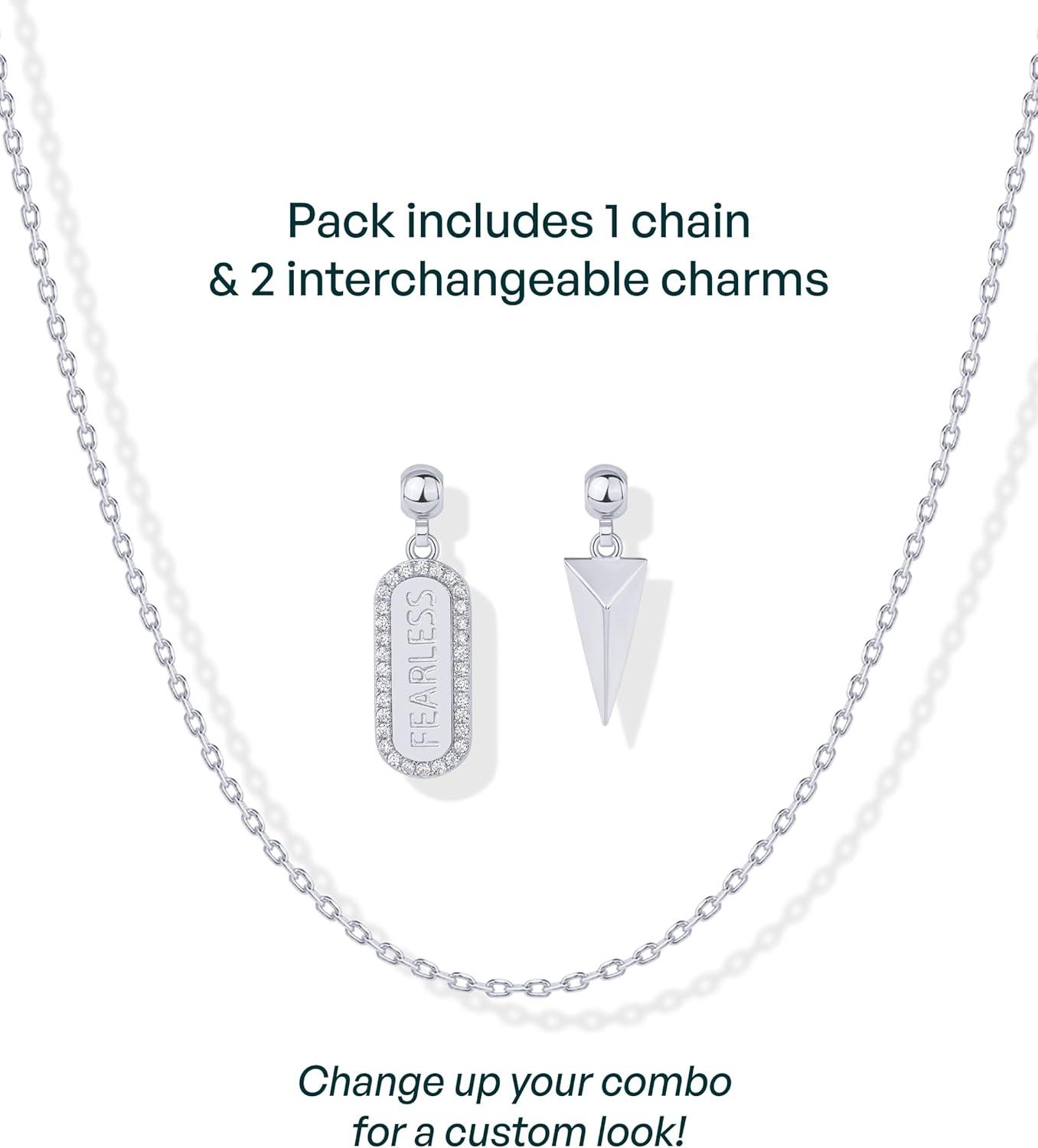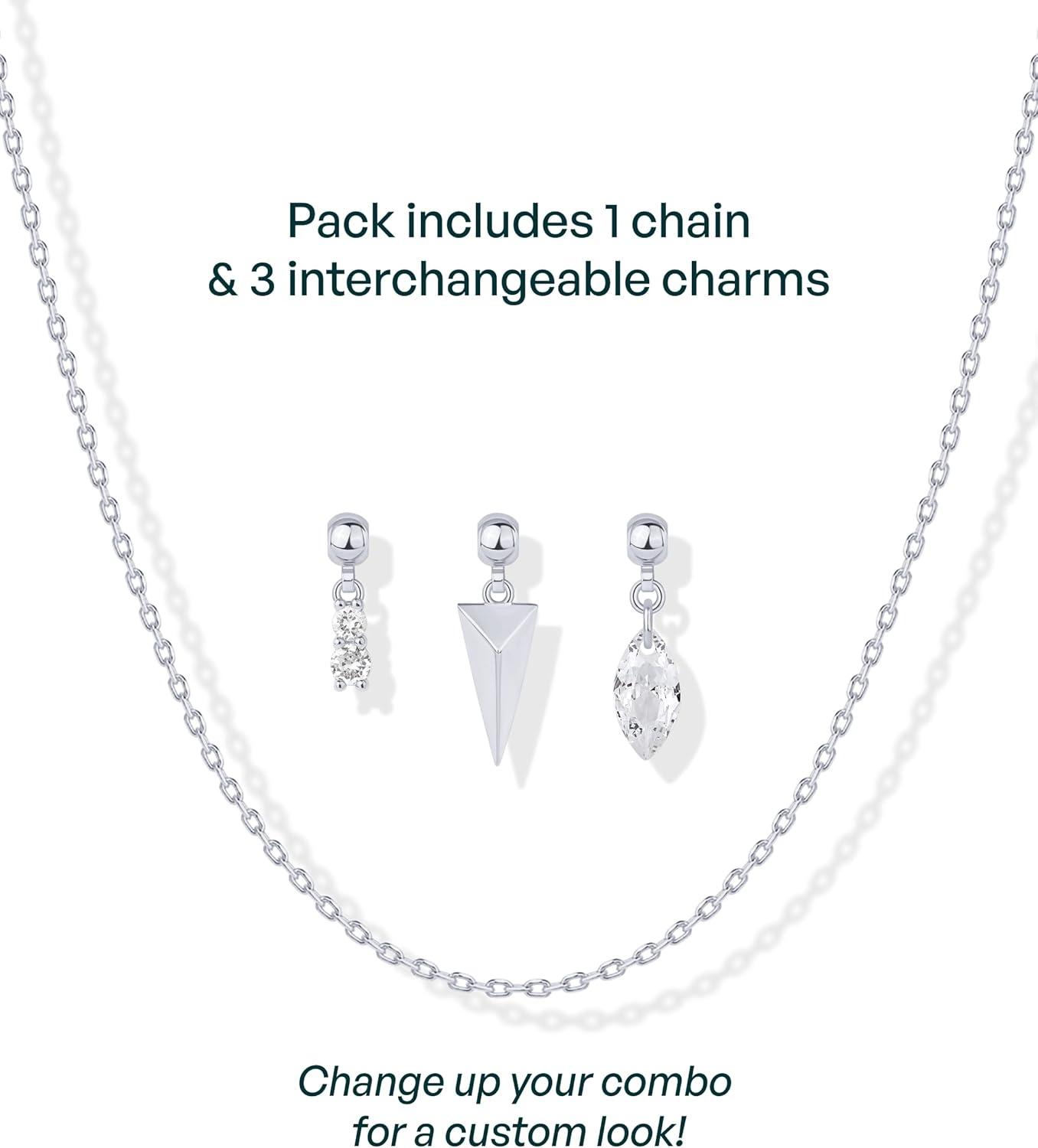 PAVOI 14K Gold Plated Dainty Necklace with Charms Set – Hypoallergenic Adjustable Chain Gold Charm Necklace for Women – Small Motif & Mantra 2 and 3-Pack Removable Pendants – Cute Jewelry Gifts(White Gold)