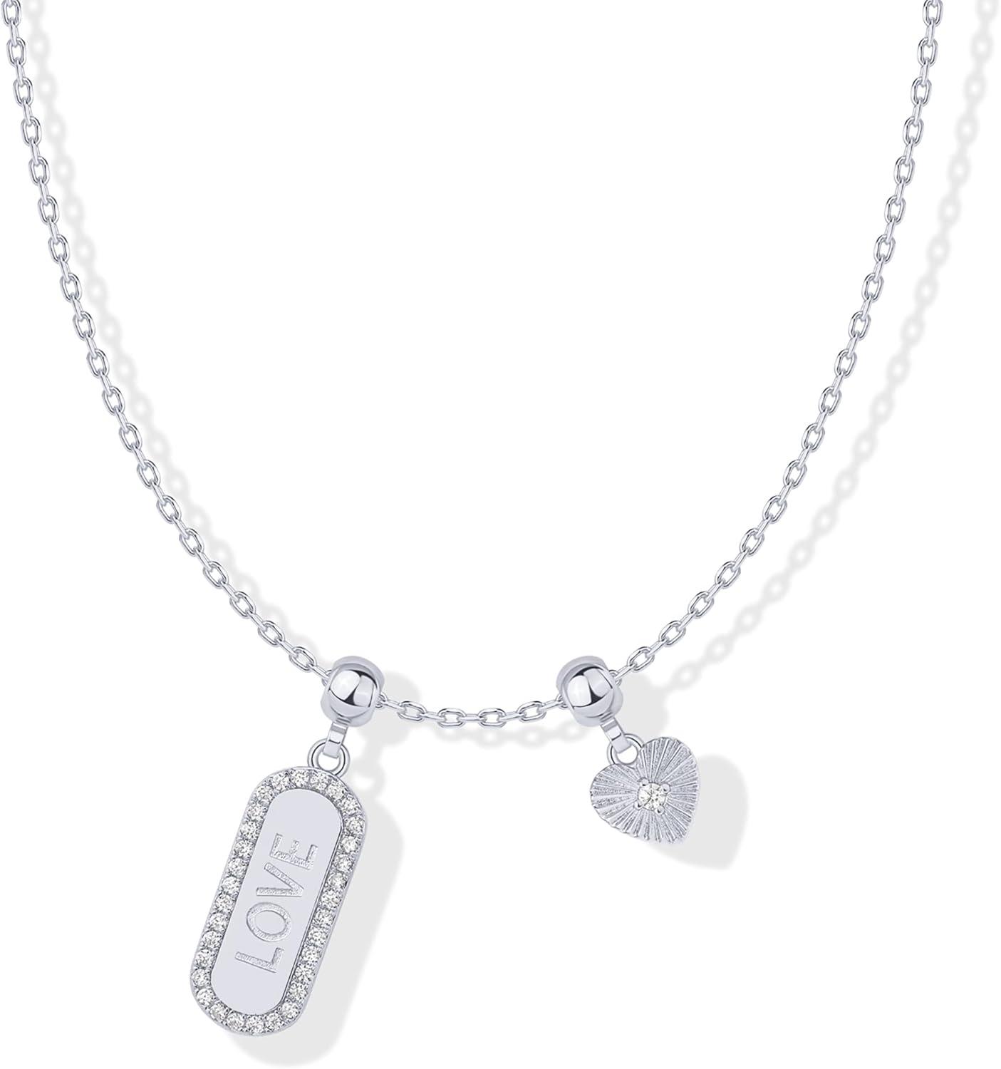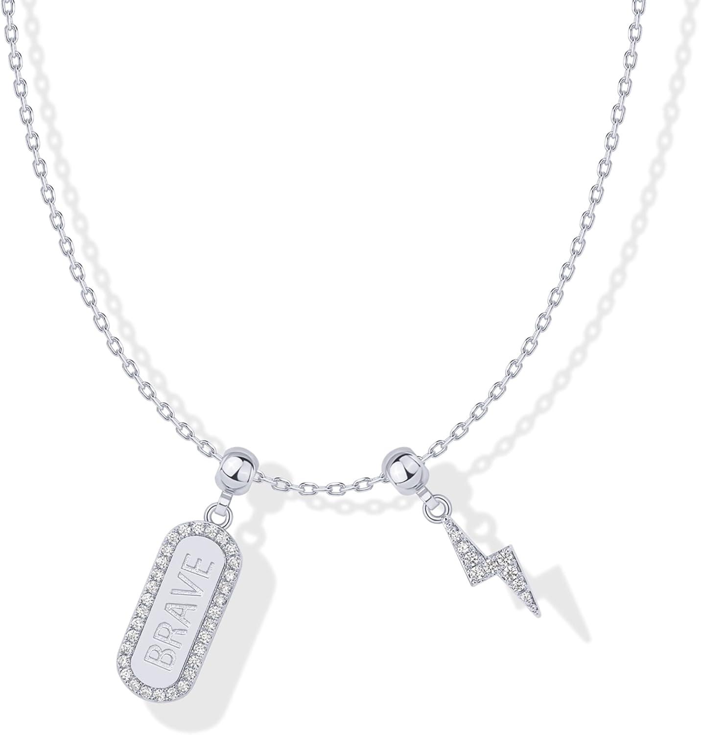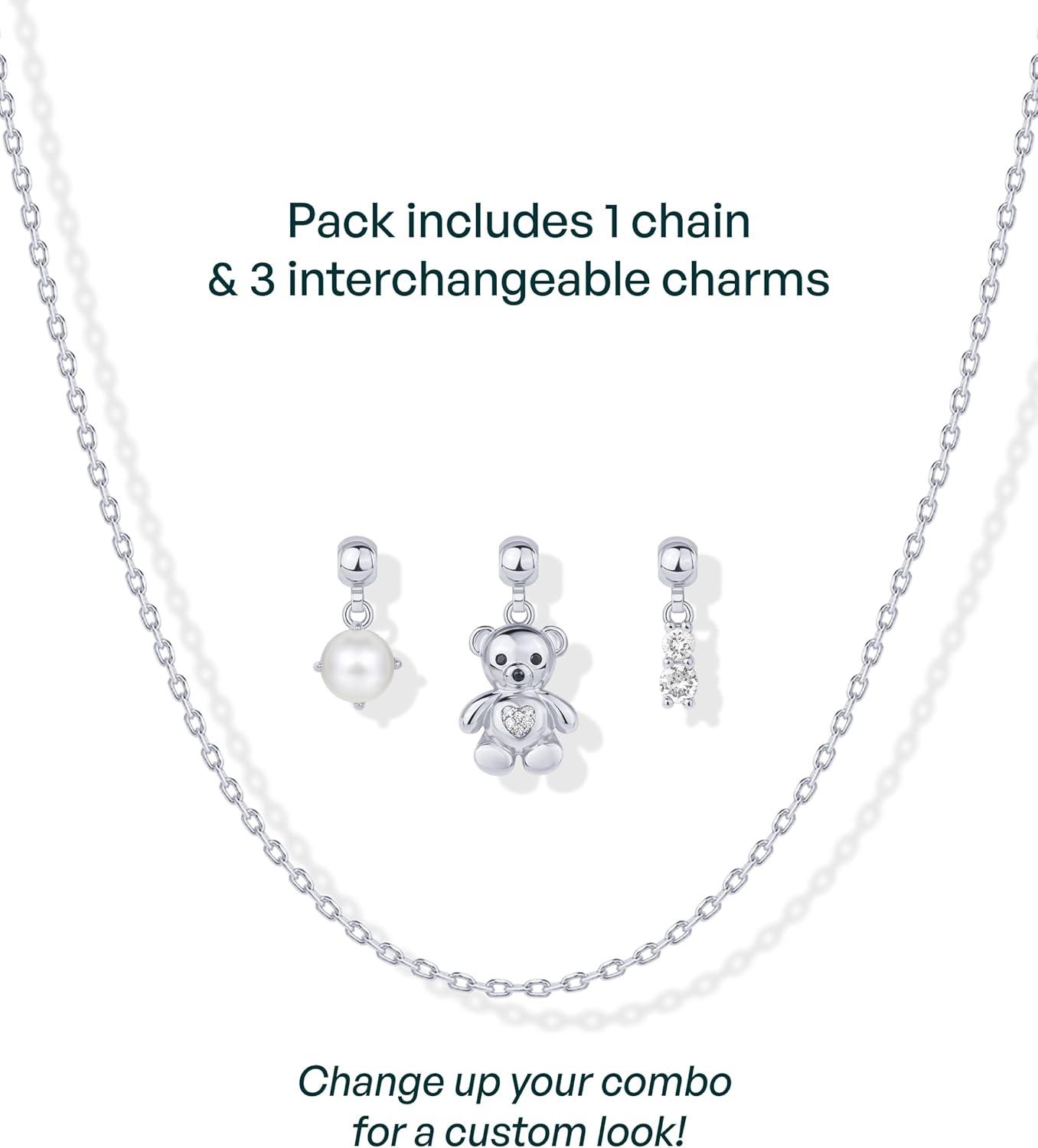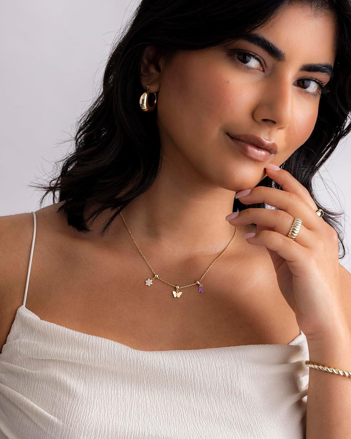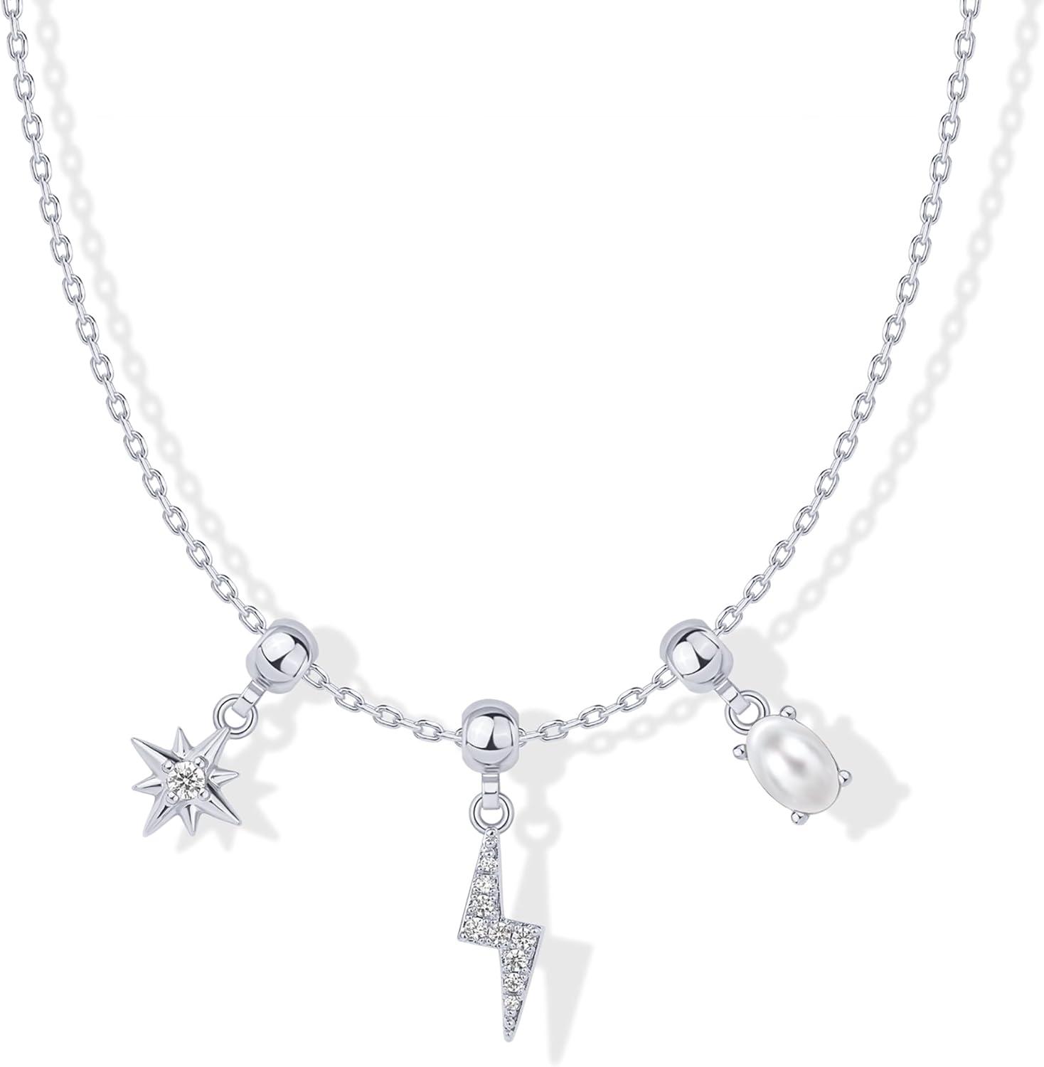 PAVOI 14K Gold Plated Dainty Necklace with Charms Set – Hypoallergenic Adjustable Chain Gold Charm Necklace for Women – Small Motif & Mantra 2 and 3-Pack Removable Pendants – Cute Jewelry Gifts(White Gold)