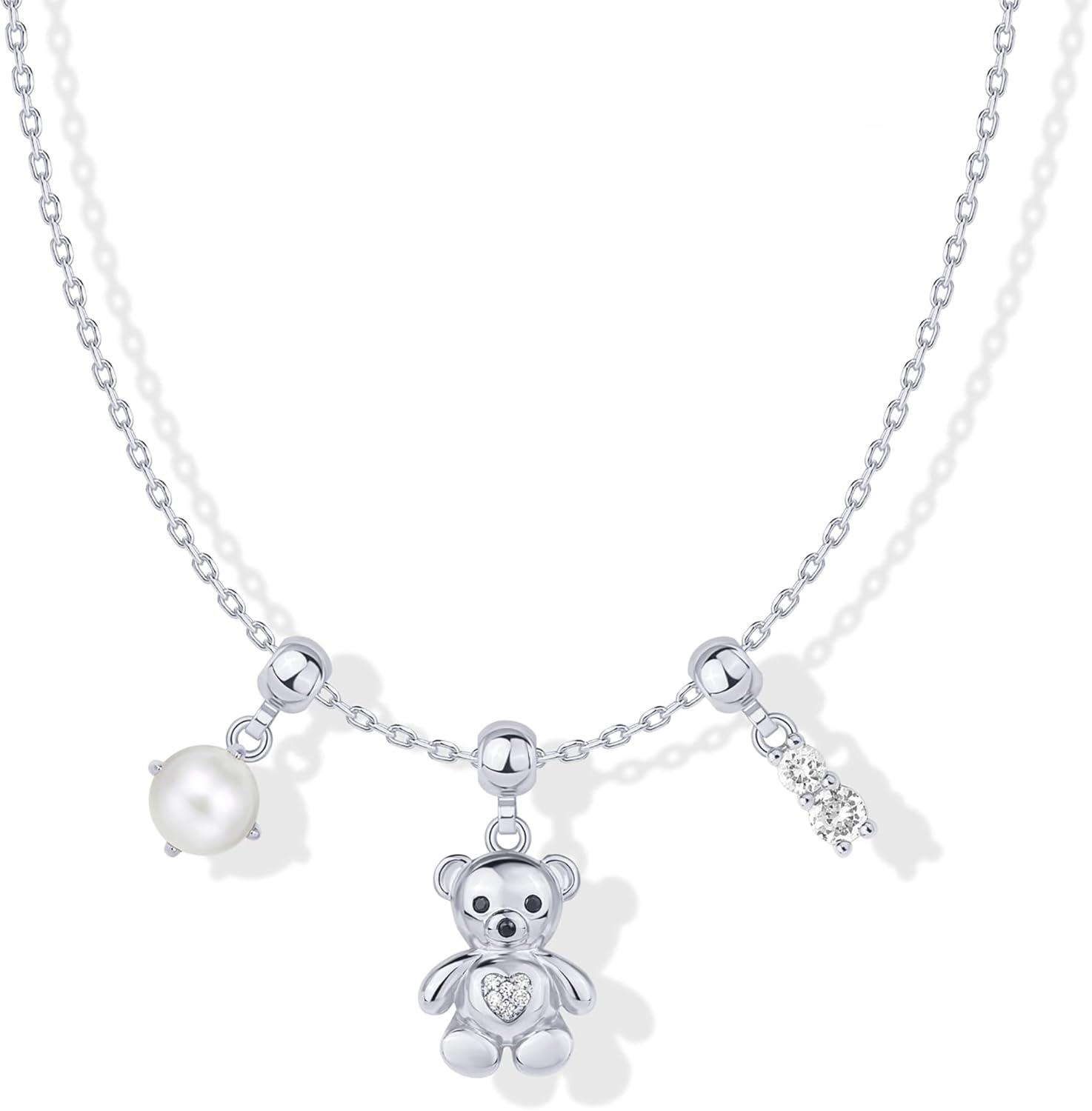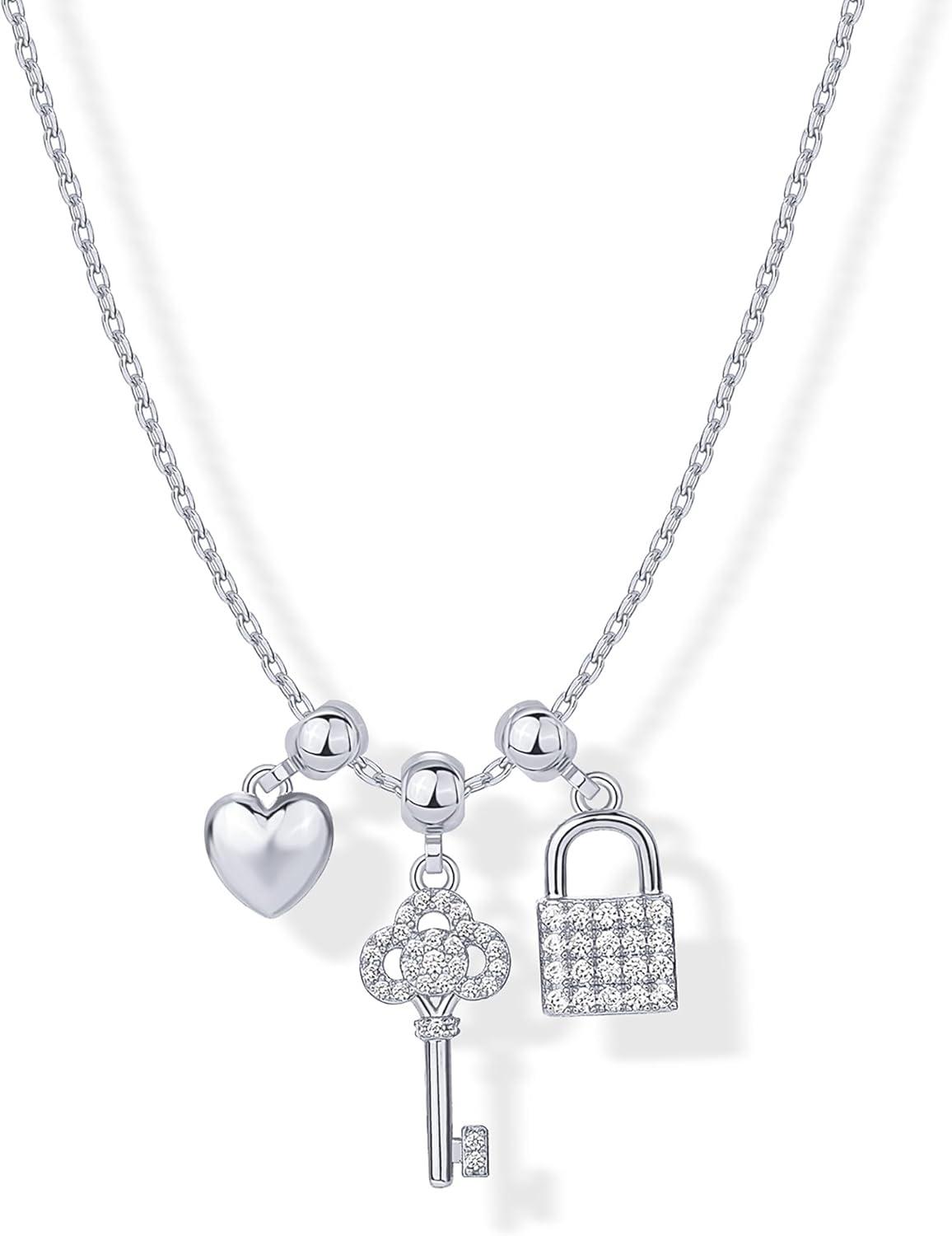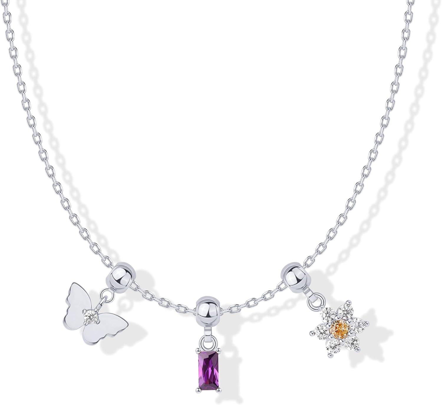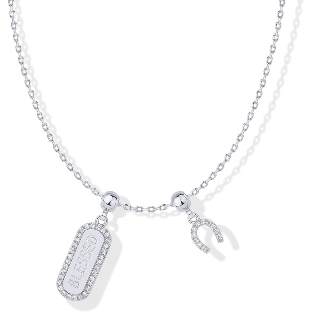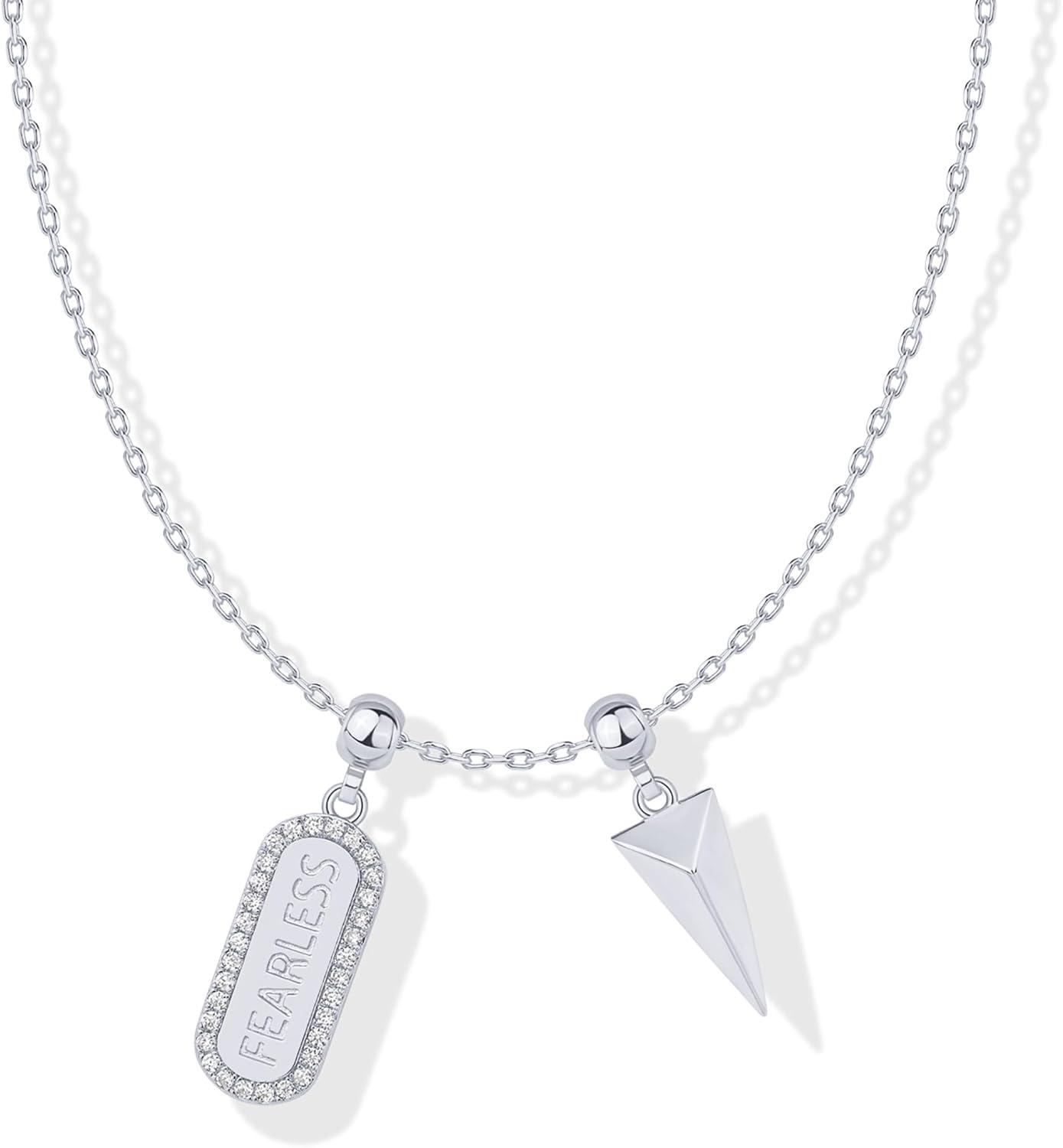 PAVOI 14K Gold Plated Dainty Necklace with Charms Set – Hypoallergenic Adjustable Chain Gold Charm Necklace for Women – Small Motif & Mantra 2 and 3-Pack Removable Pendants – Cute Jewelry Gifts(White Gold)