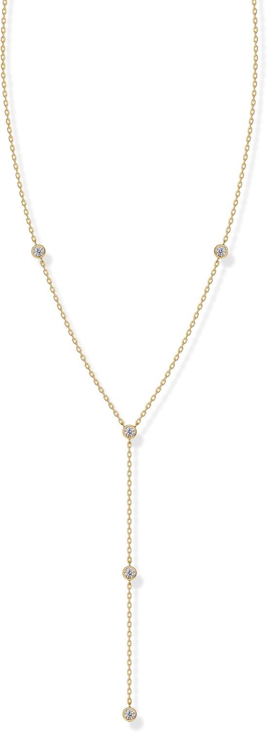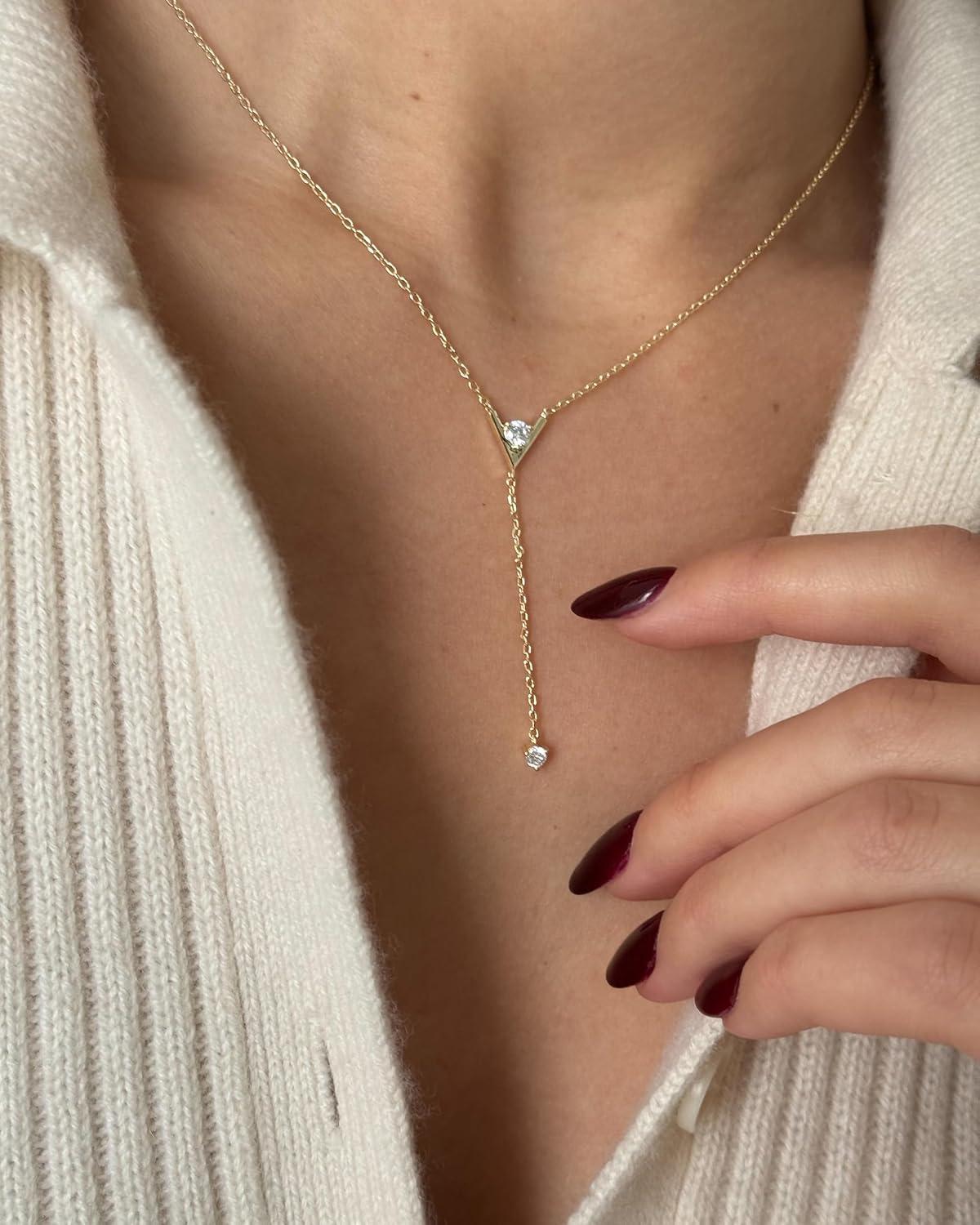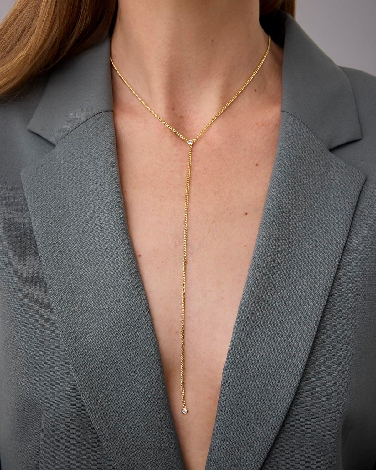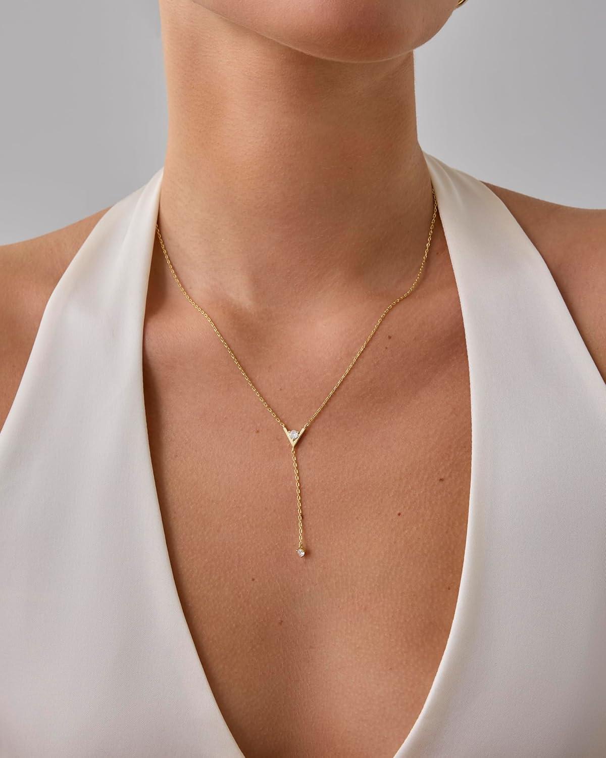 PAVOI 14K Gold Plated Drop Lariat Chain for Women – Gold Cubic Zirconia Long Necklace – Station Star Layered Beaded Y Necklace(Yellow Gold)