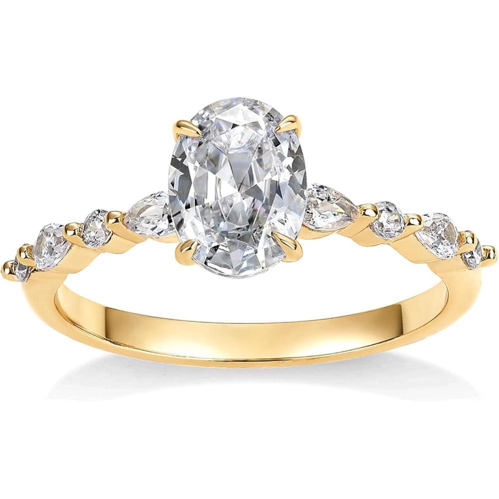 PAVOI 14K Gold Plated Engagement Ring for Women – Cubic Zirconia Wedding Band for Women – Oval Women’s Fake Engagement Ring(Yellow Gold)