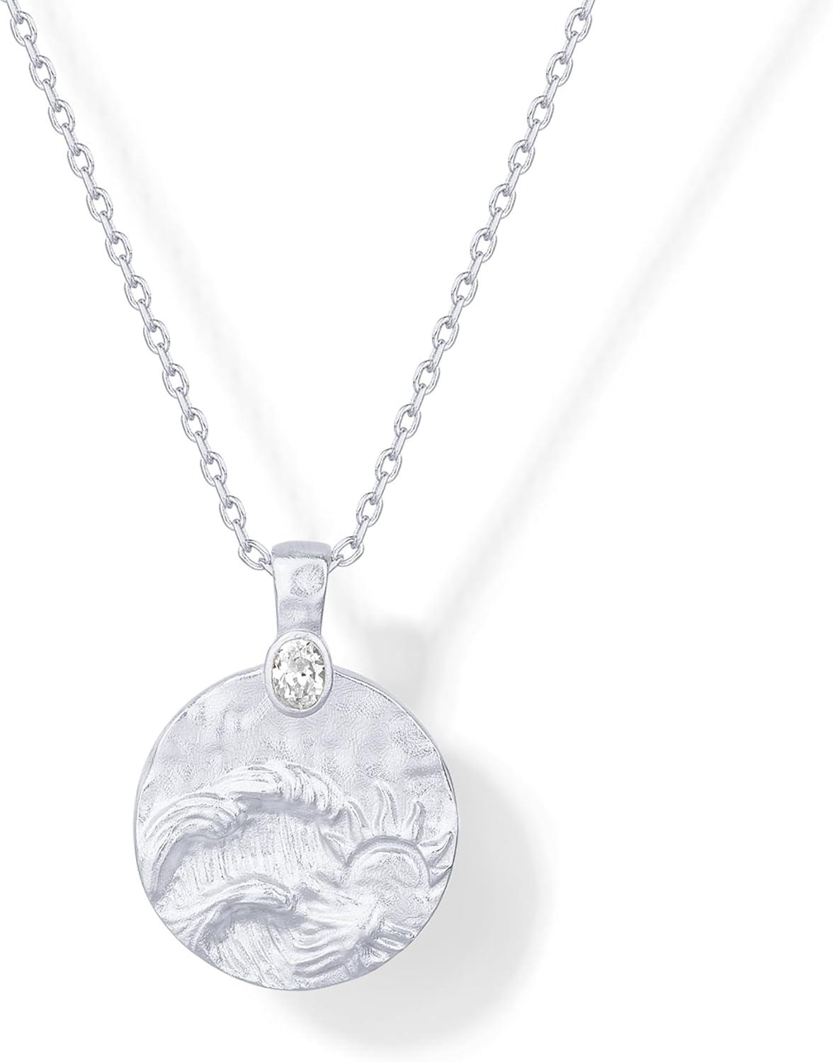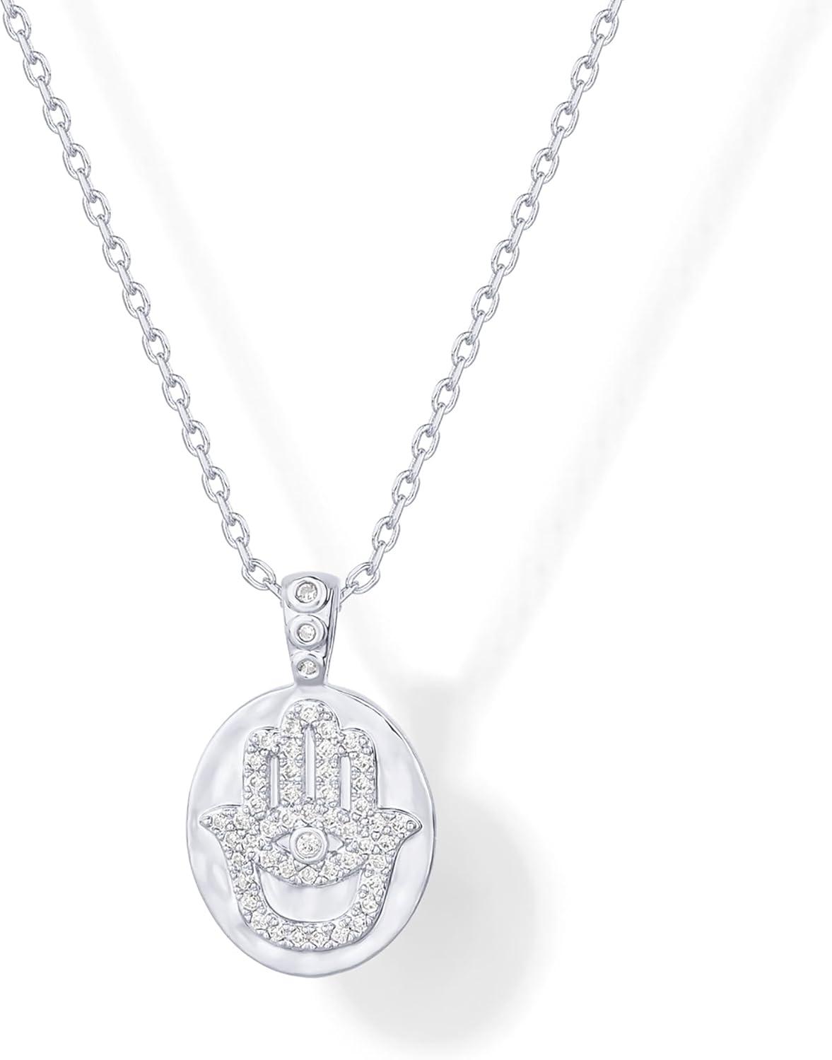 PAVOI 14K Gold Plated Engraved Hammered Oval Coin Pendant Necklace for Women | Hamsa Stars Bohemian Pendant Adjustable Chain Necklaces | Calm Inspirational Secret Phrases(White Gold)